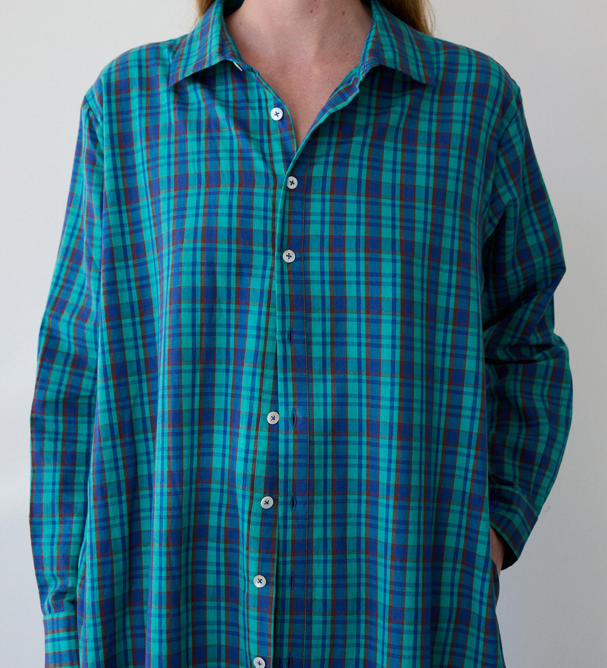NILA TUNIC, BLUE // GREEN CHECK COTTON