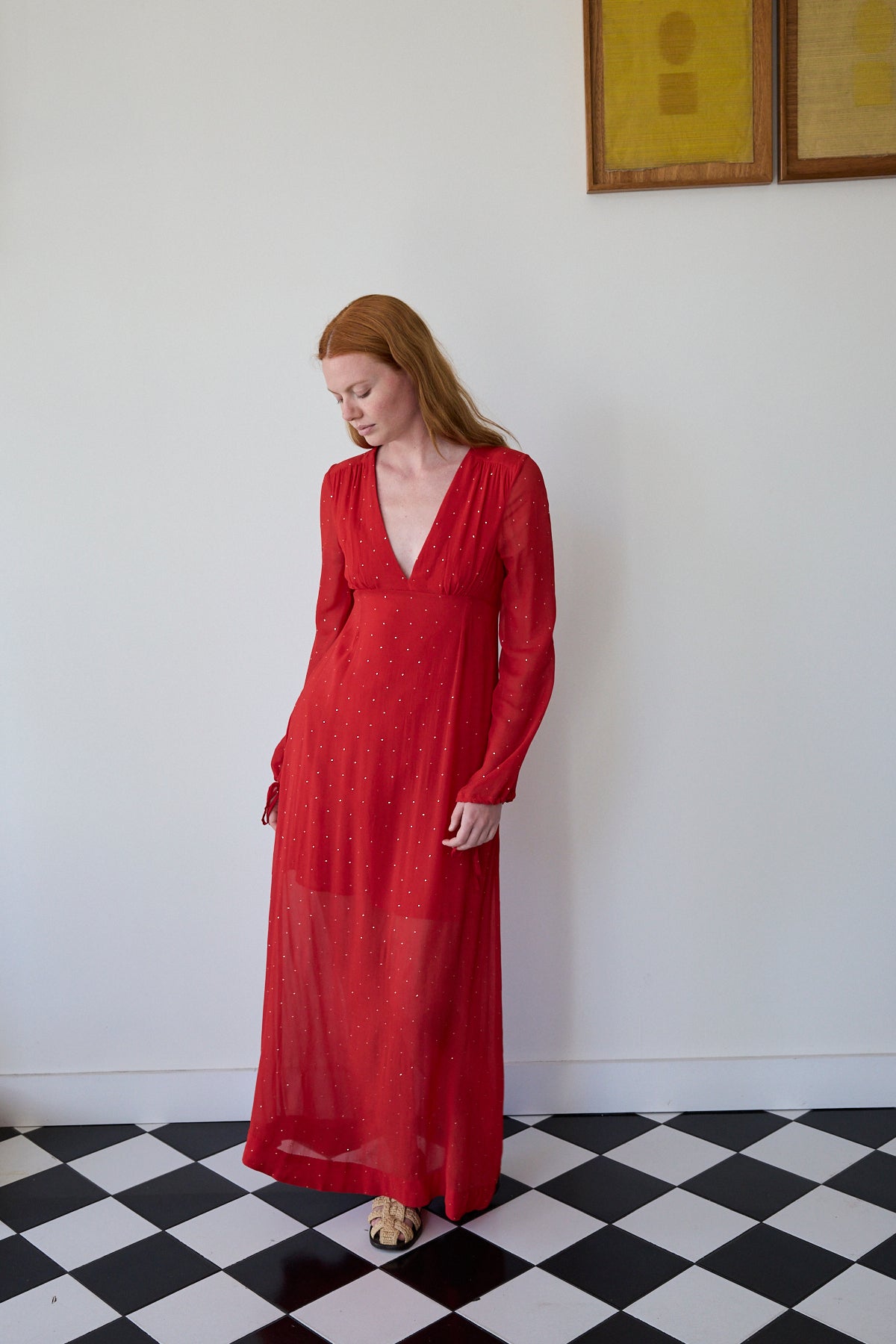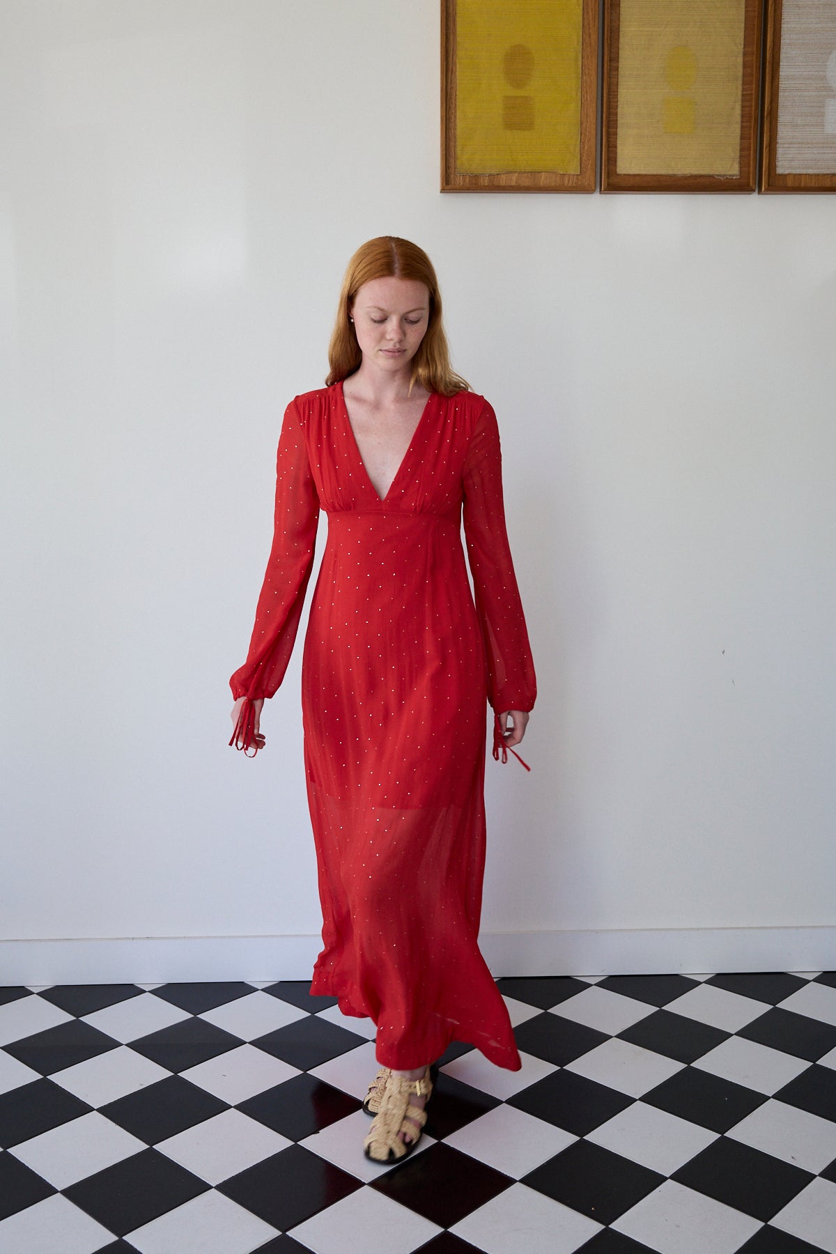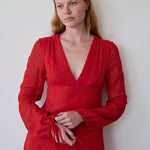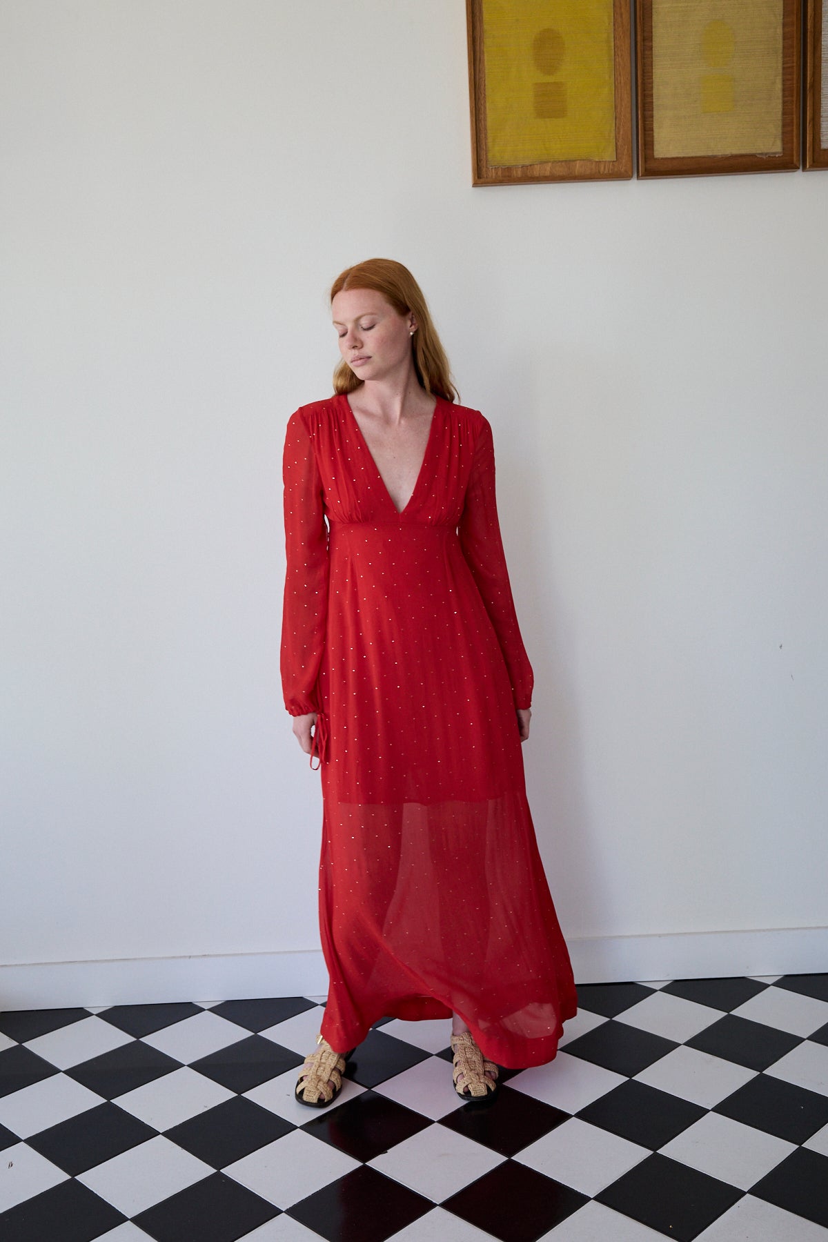TEMPEL DRESS, RED MUKEISH EMBROIDERY