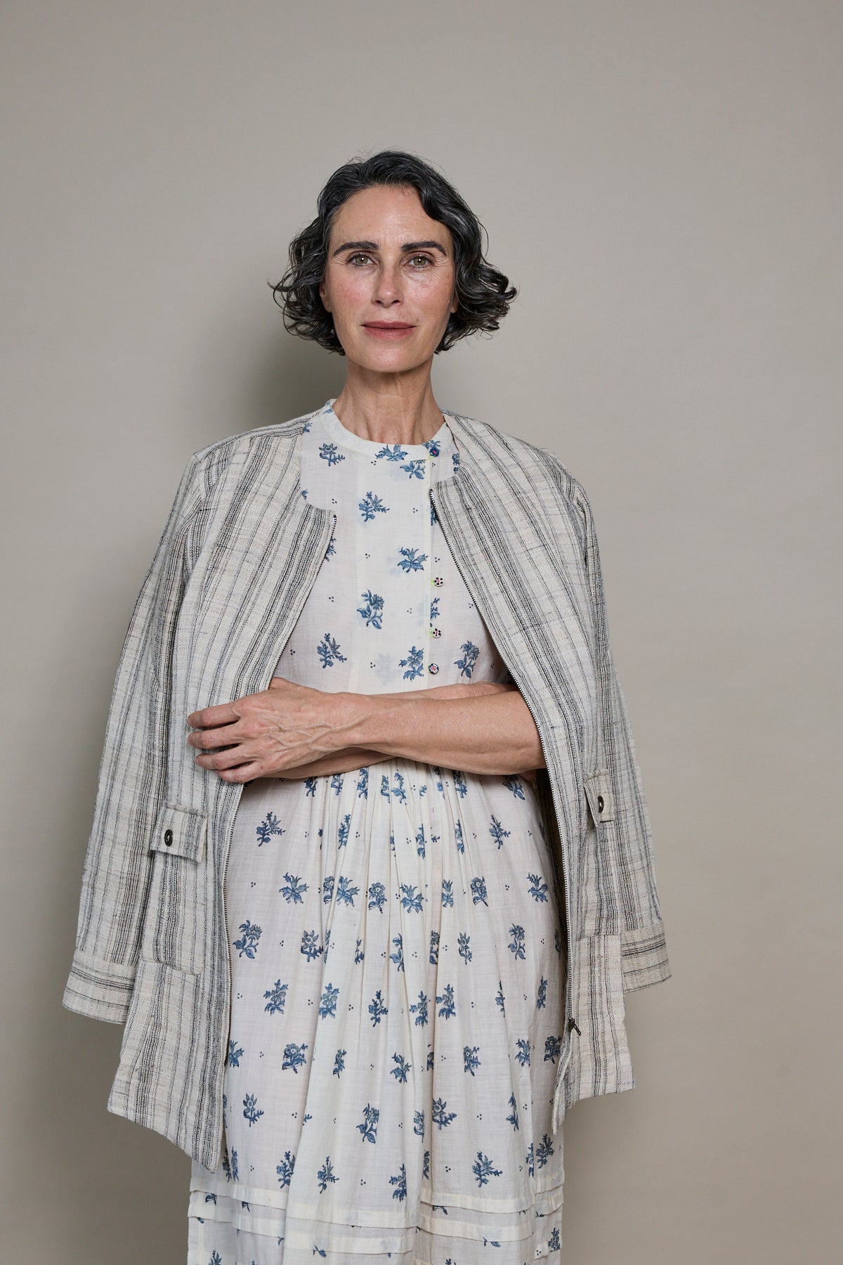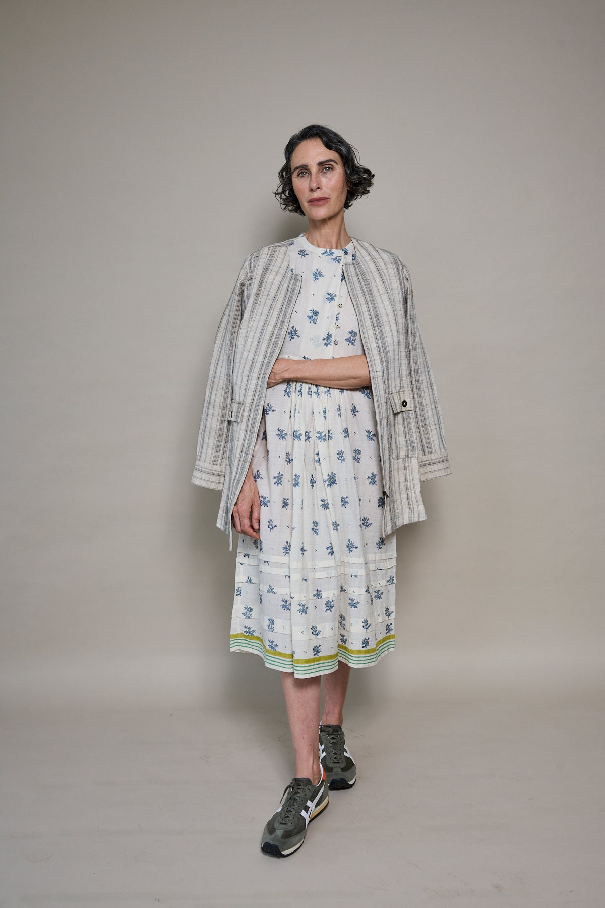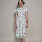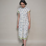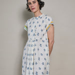 AMBER MIDI DRESS, IVORY FLORAL BLOCKPRINT COTTON