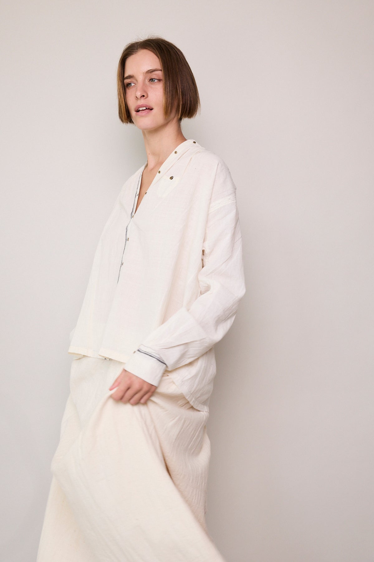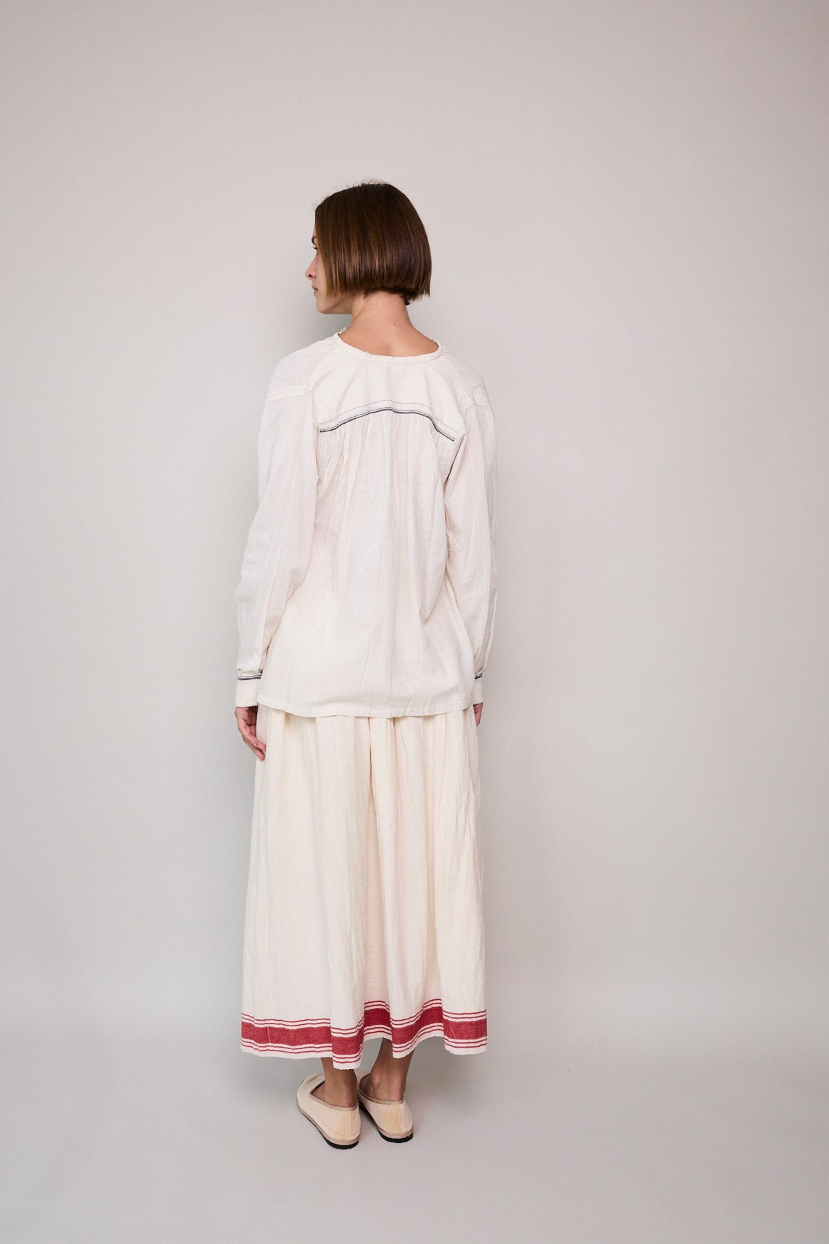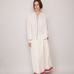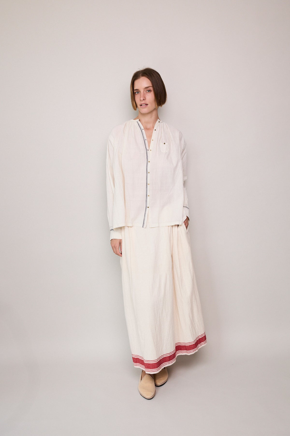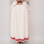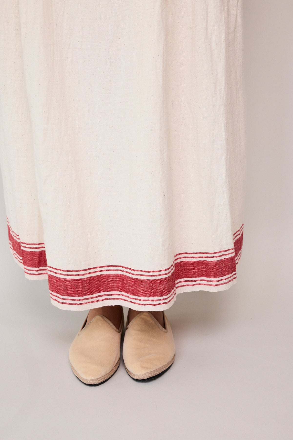 A full pleated skirt  in 100% handwoven heavy kadhi cotton. Front band and back elastic. Front box pleat detail. Side pockets. Fully lined in light cotton. Maxi length.