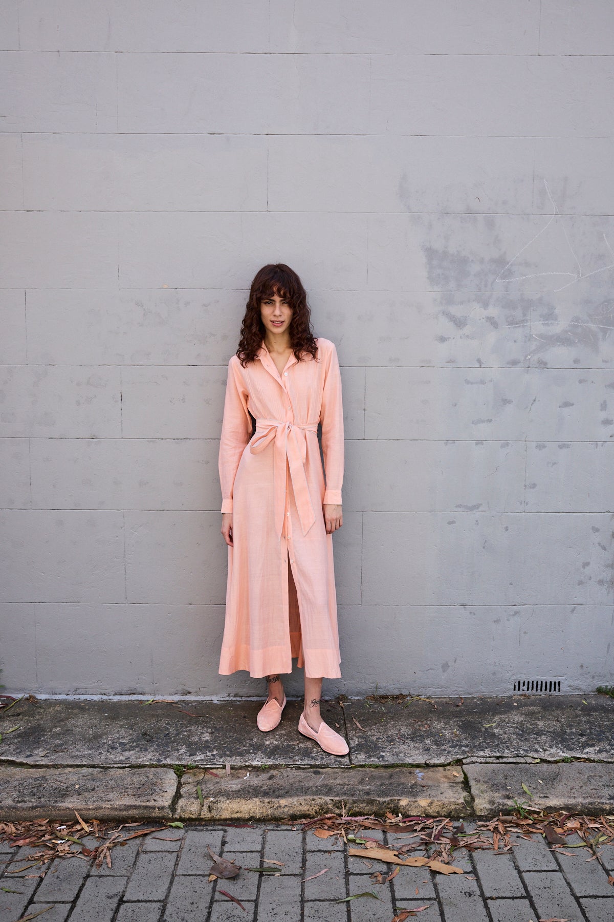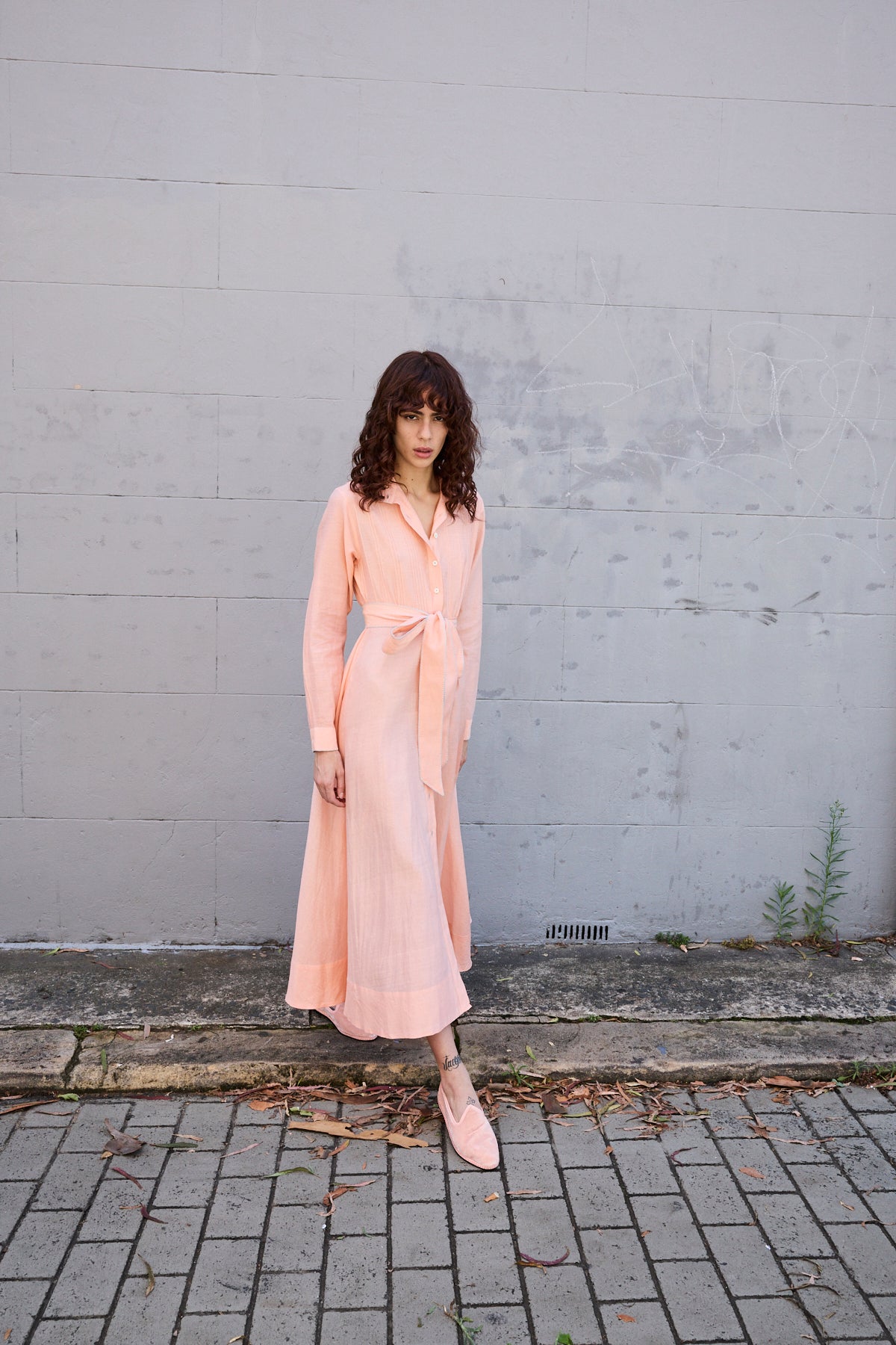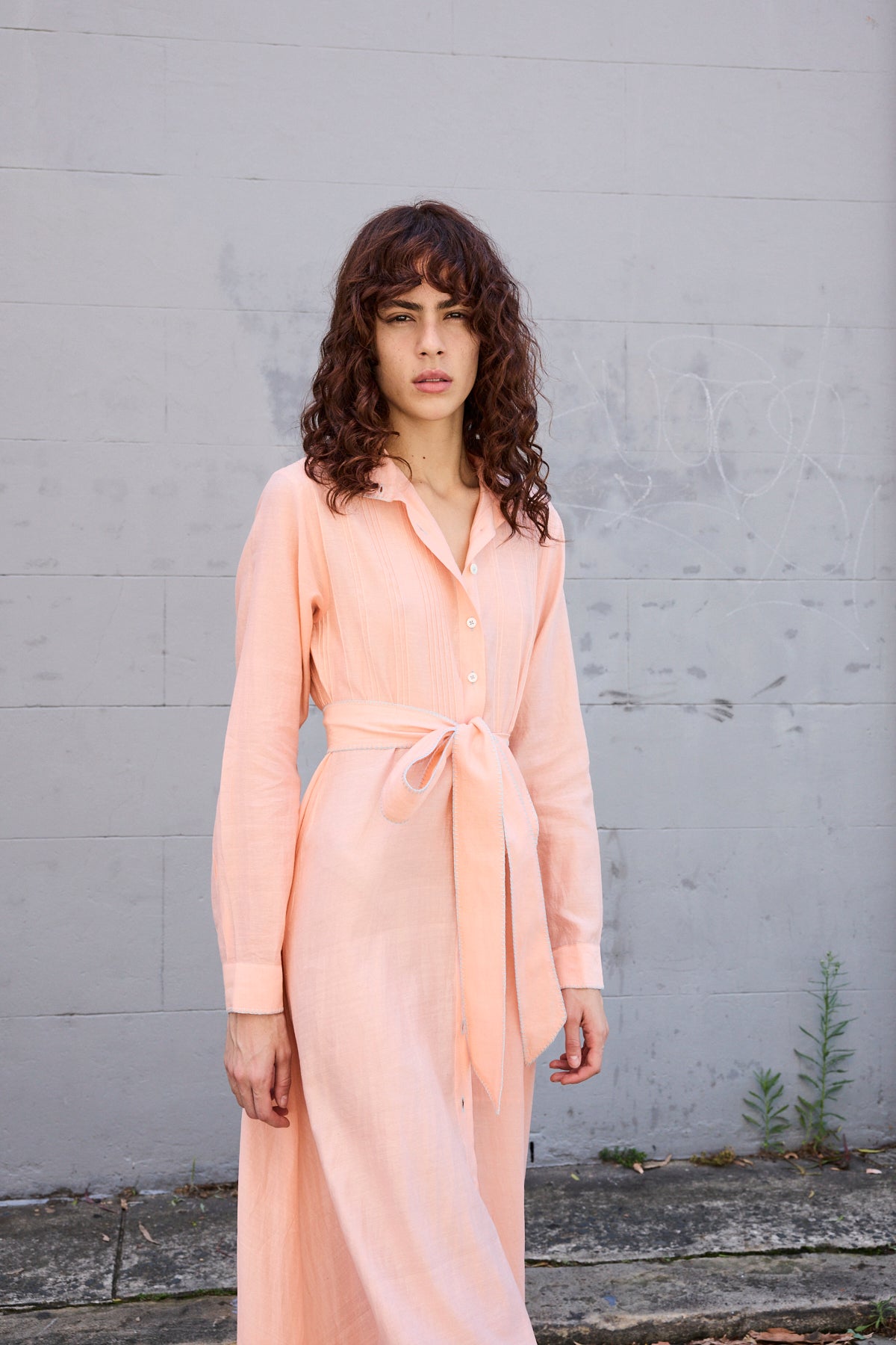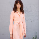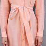 BLOSSOM DRESS, HANDWOVEN COTTON SILK PEACH/WHITE