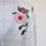Pure silk lining featuring botanic plant block print throughout. Reversible design.