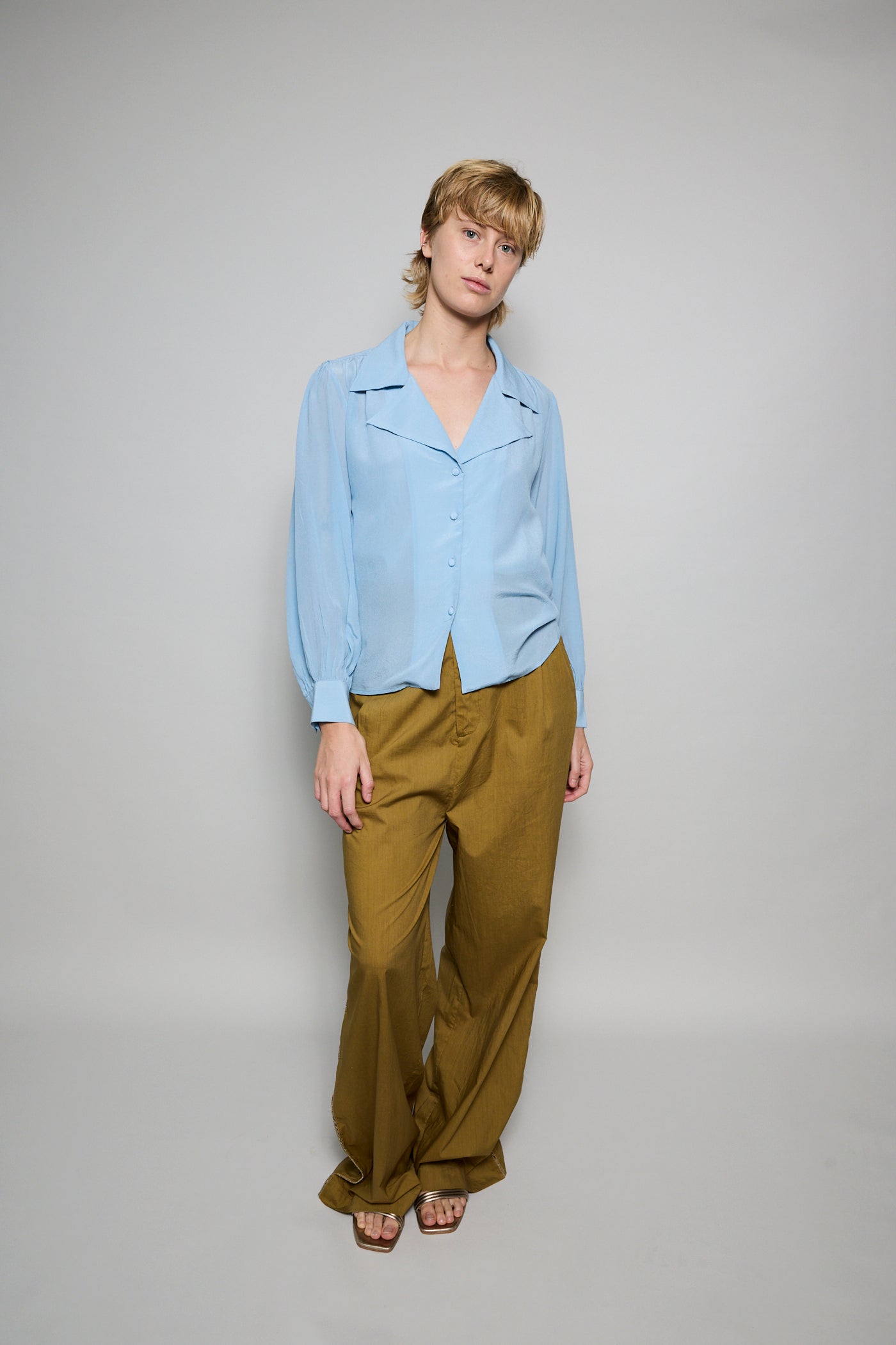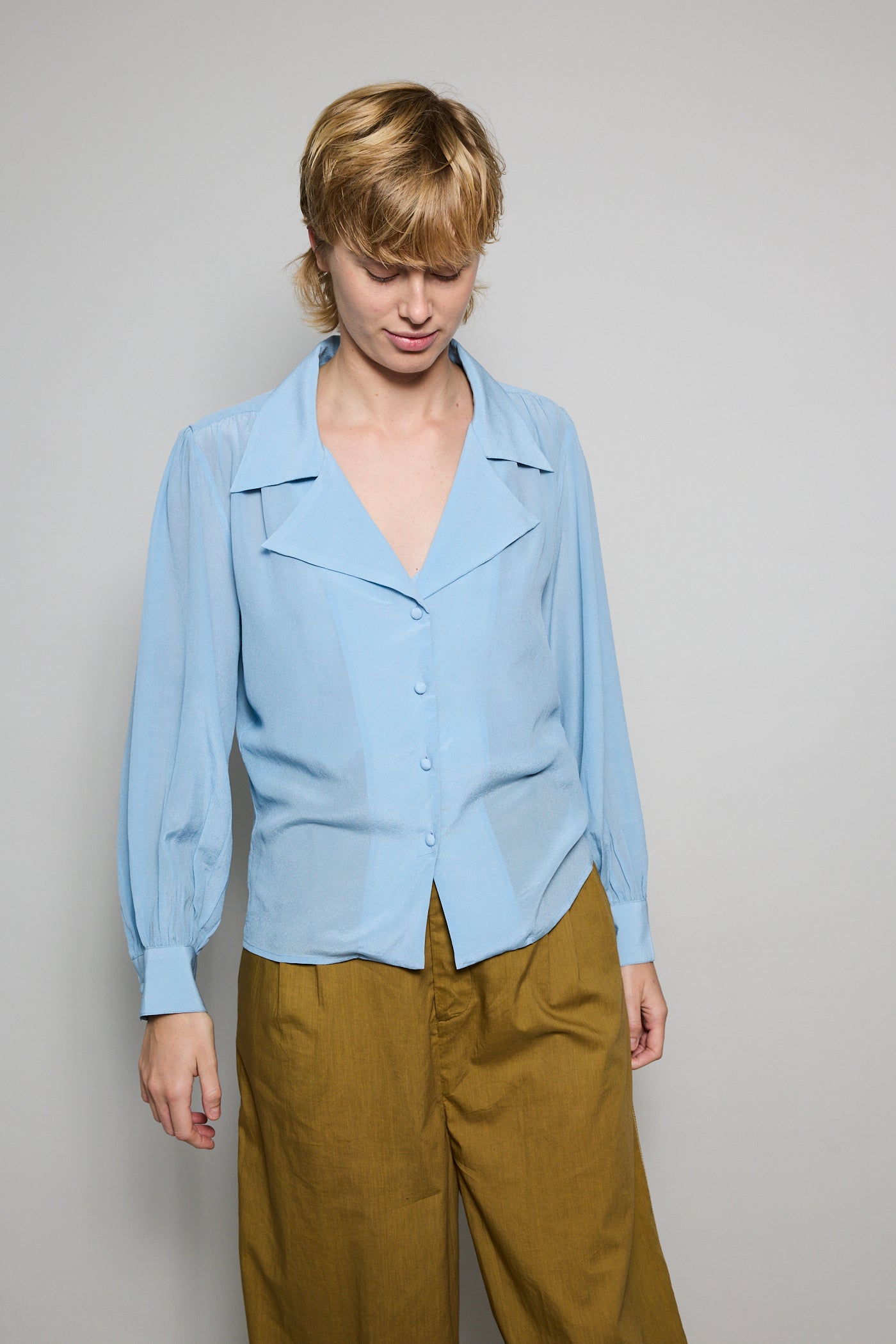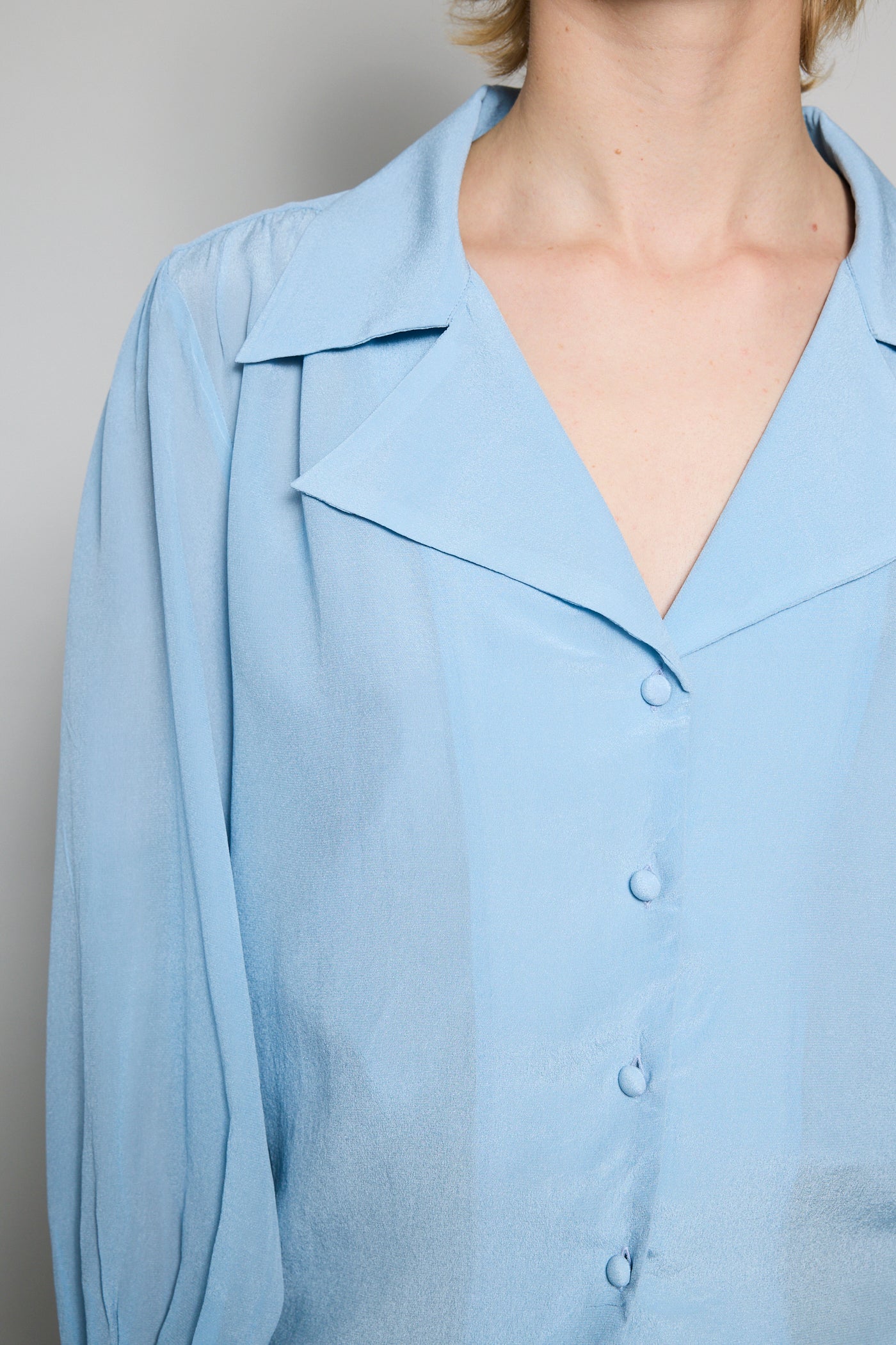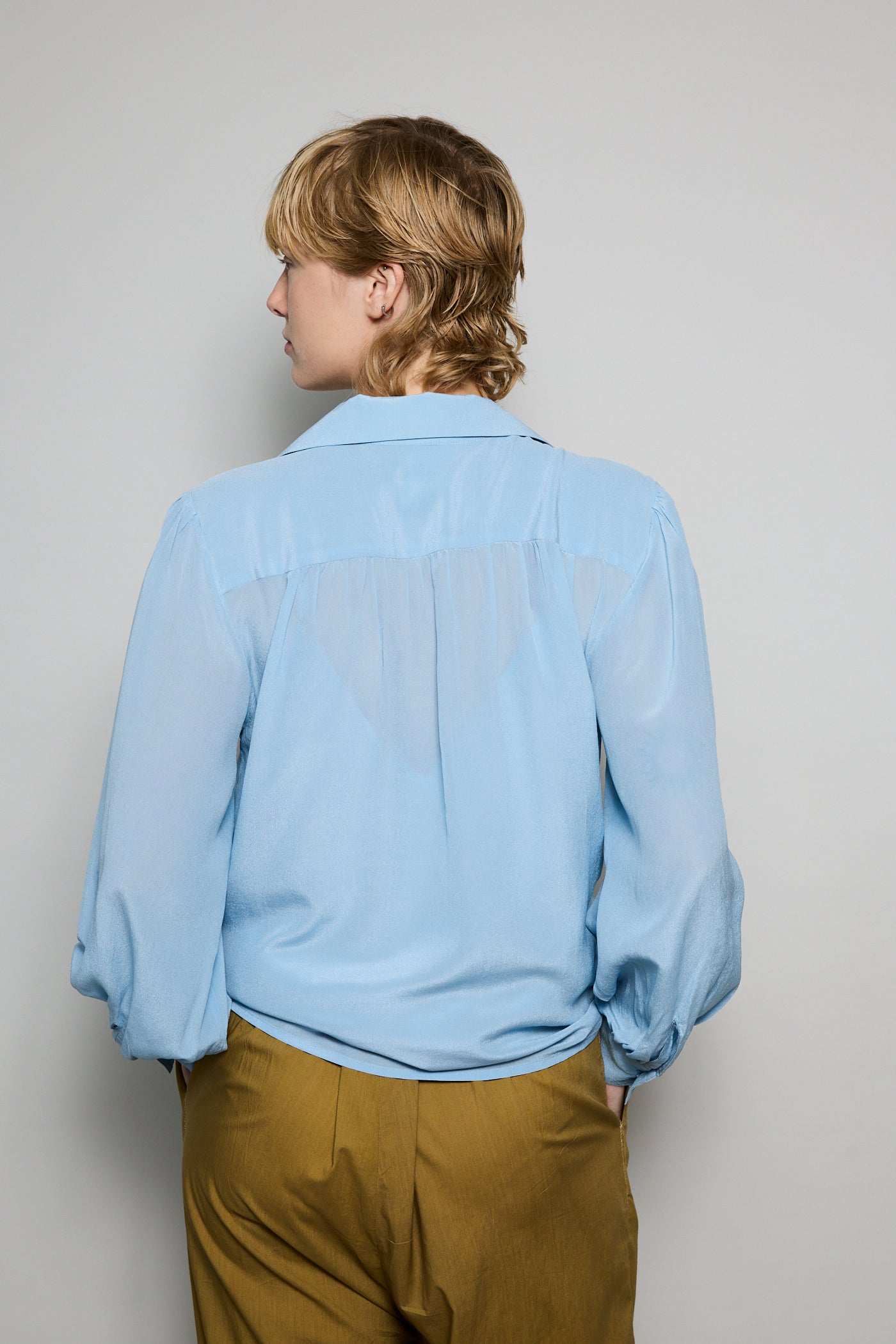CAMELIA SHIRT, BLUE CREPE DE CHINE SILK