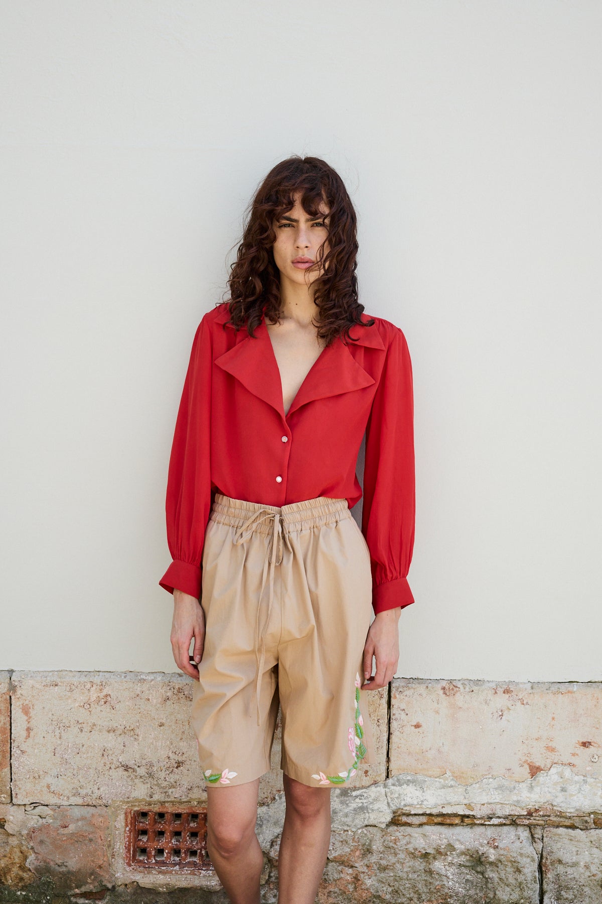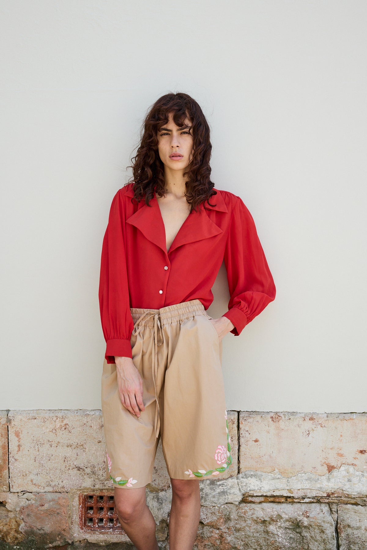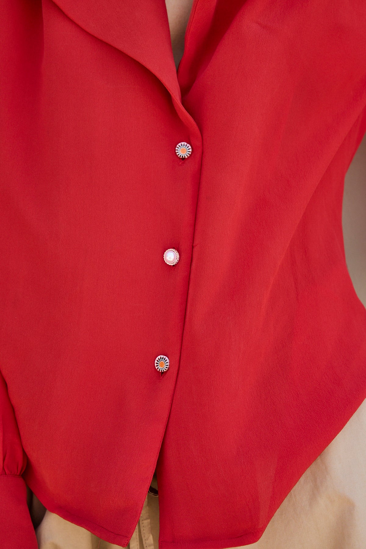 CAMELIA SHIRT, RED CREPE DE CHINE SILK