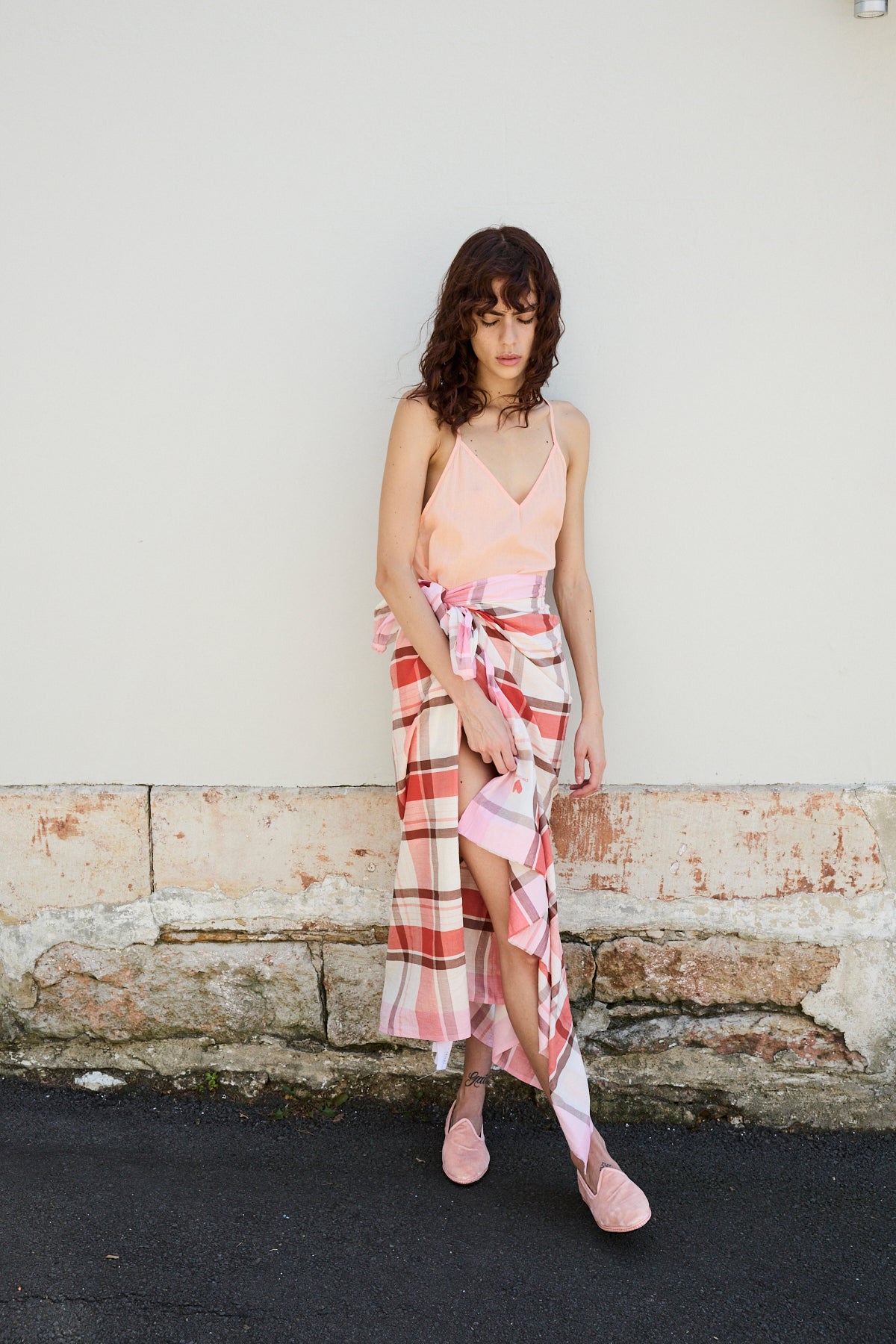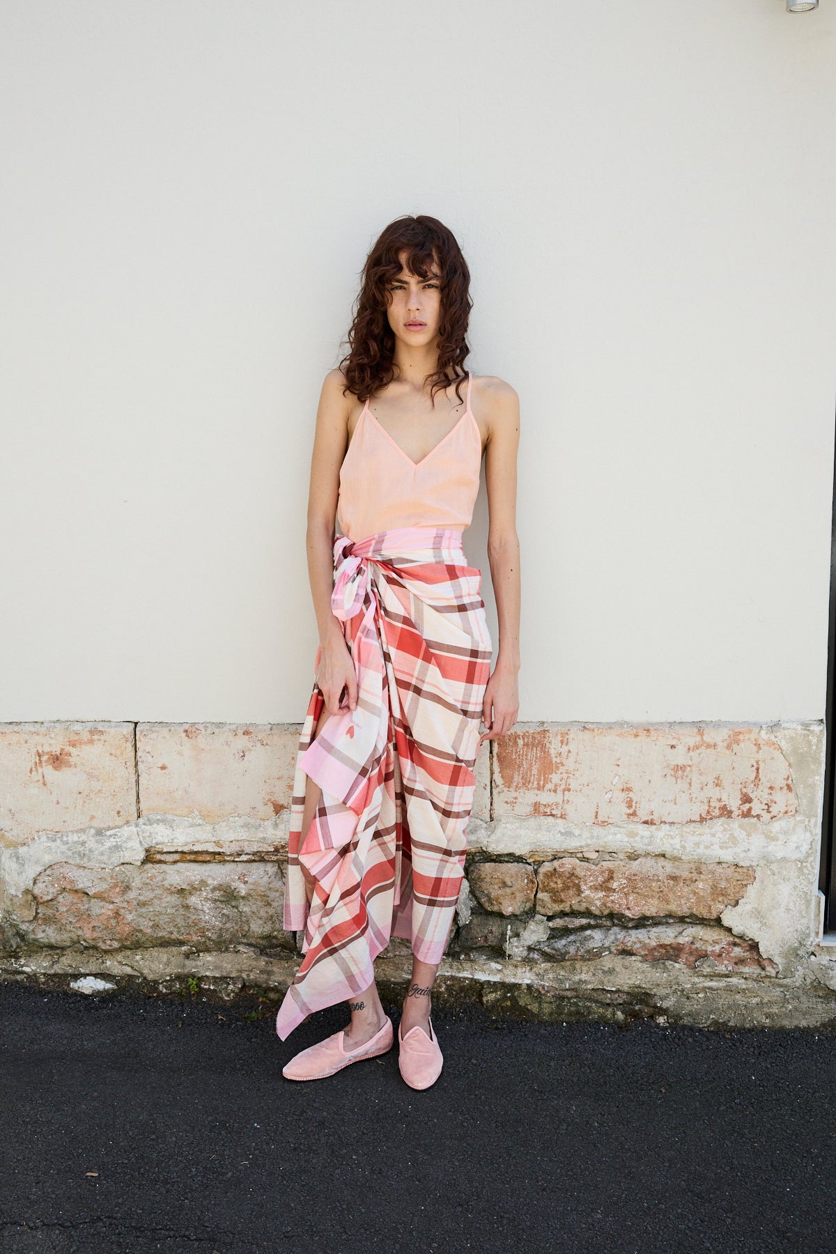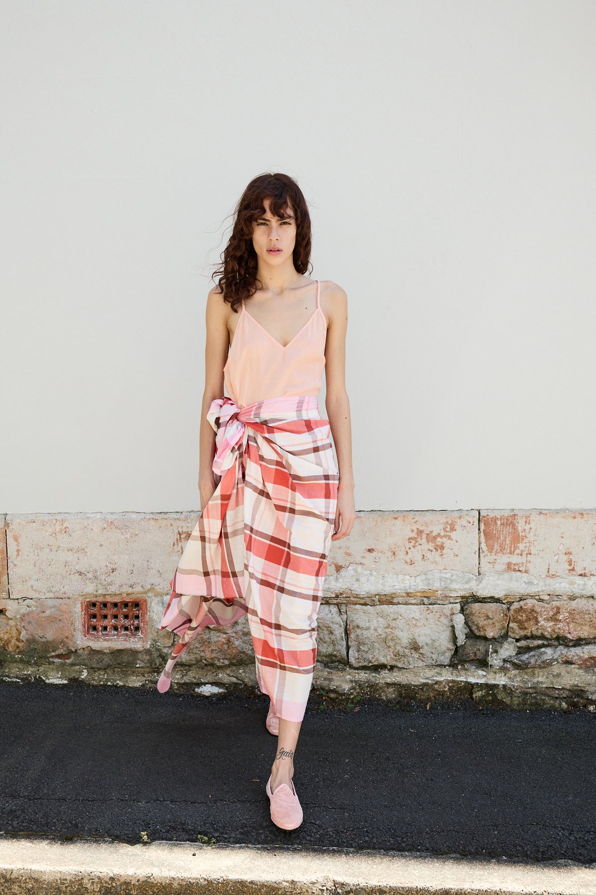 CANNA MADRAS CHECK SARONG, PINK COTTON