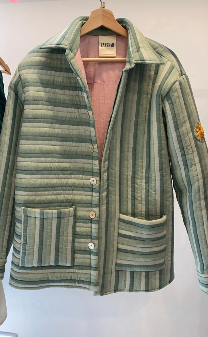 A handloom cotton quilted blazer. Long sleeved  and oversized to fit.