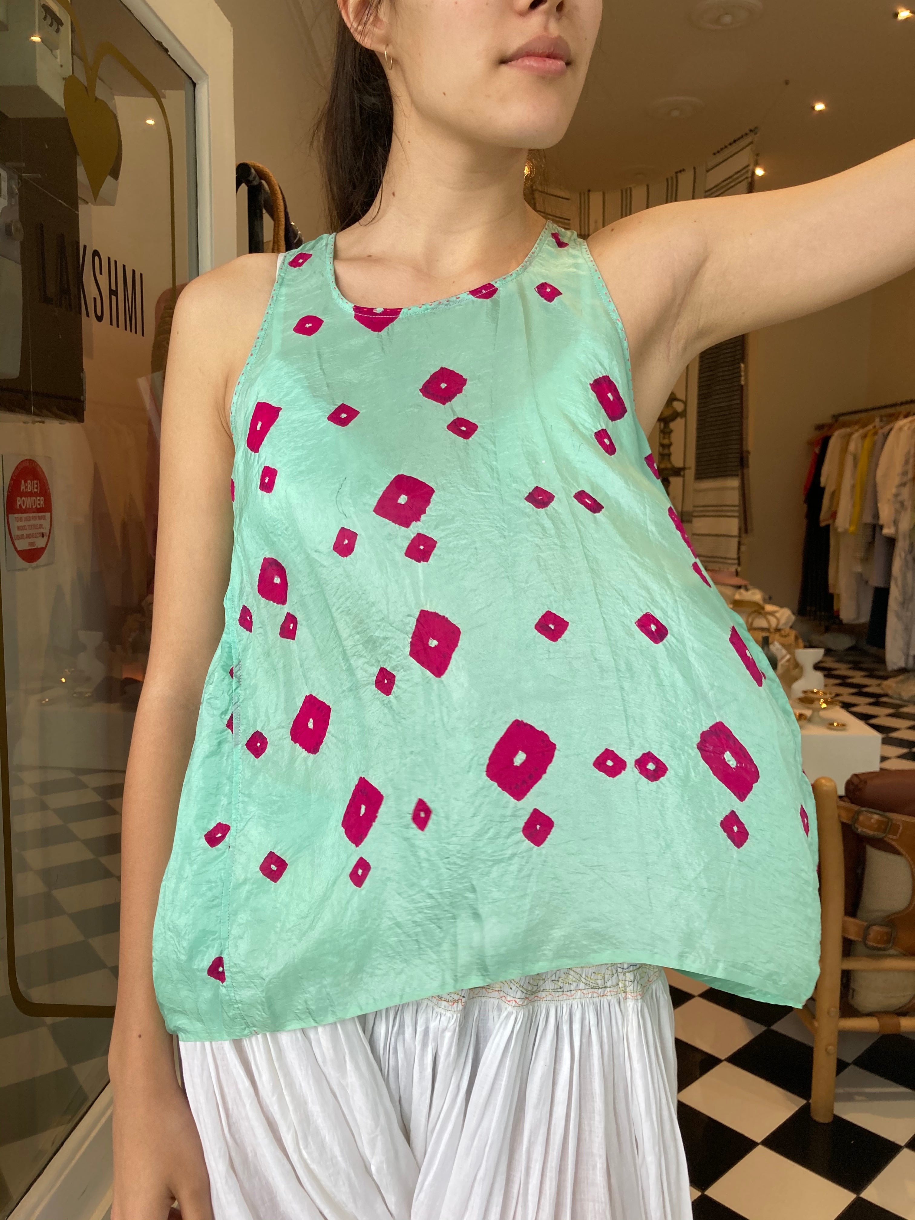 BHANDINI TANK TOP, BLUE / PINK SILK