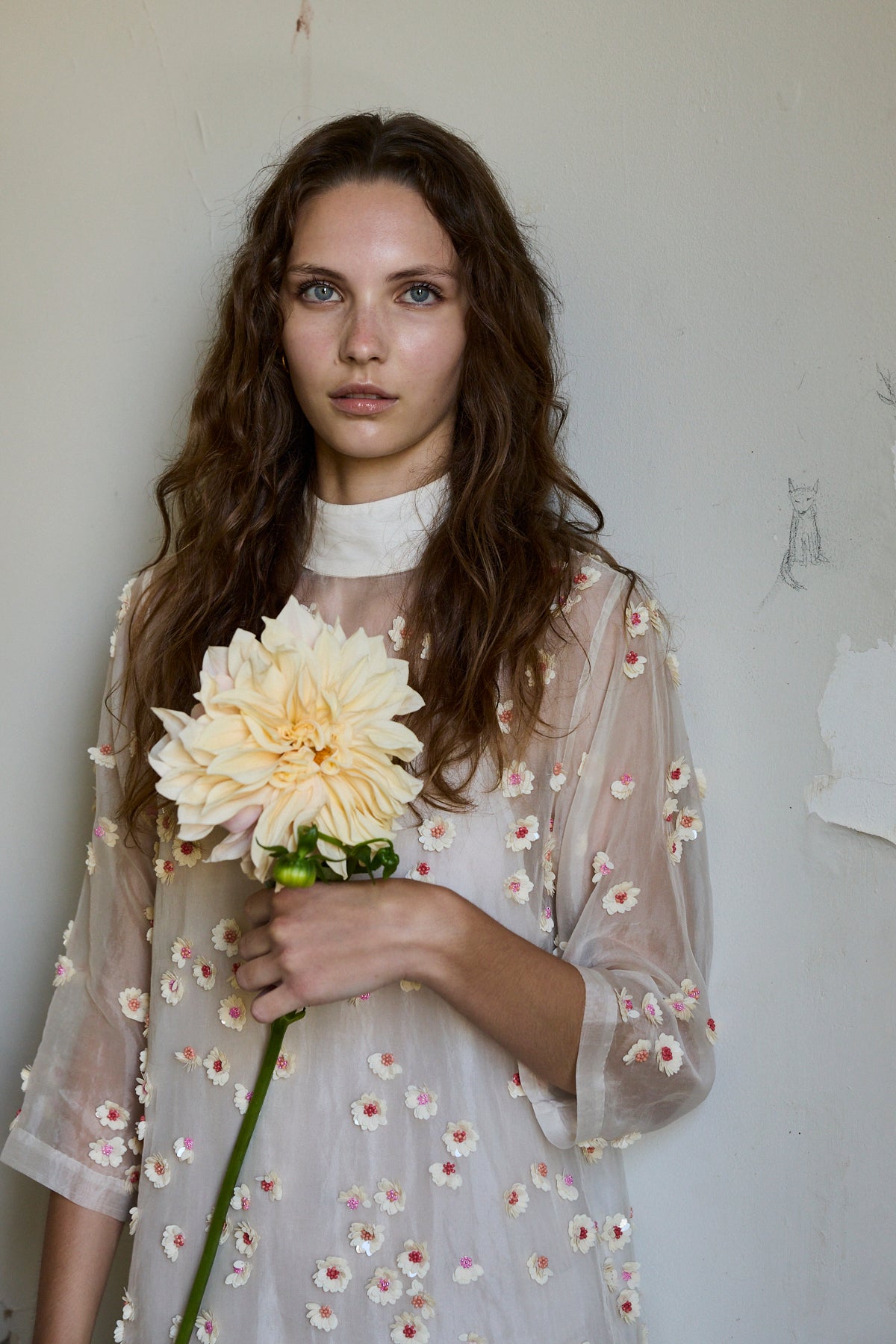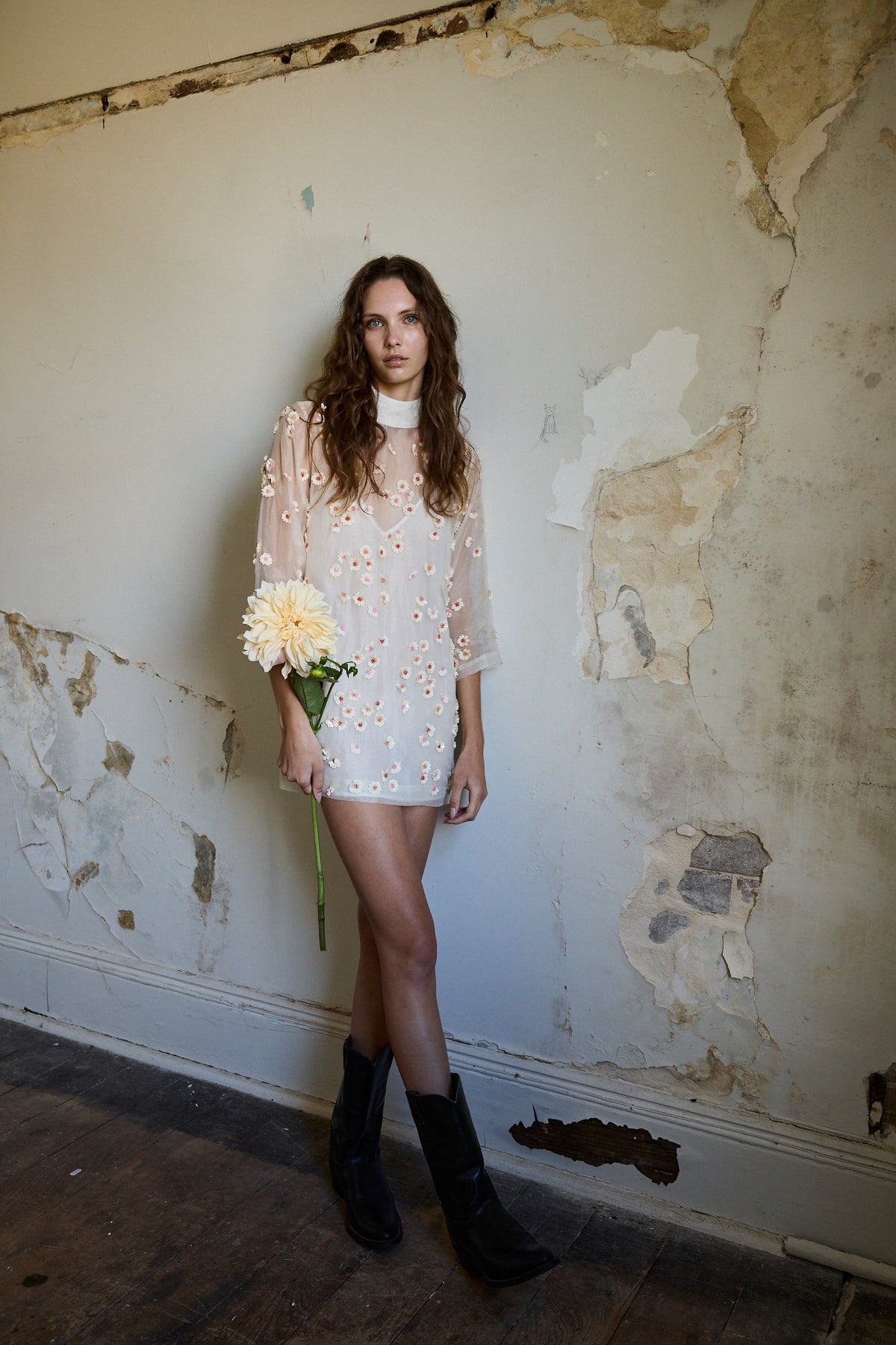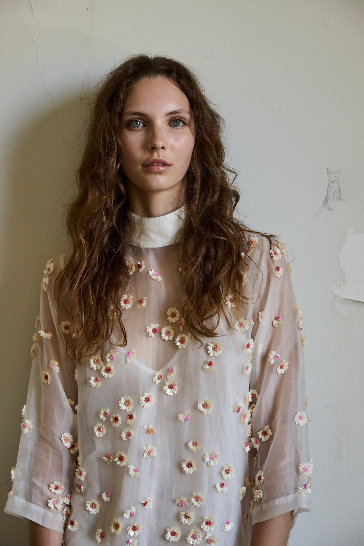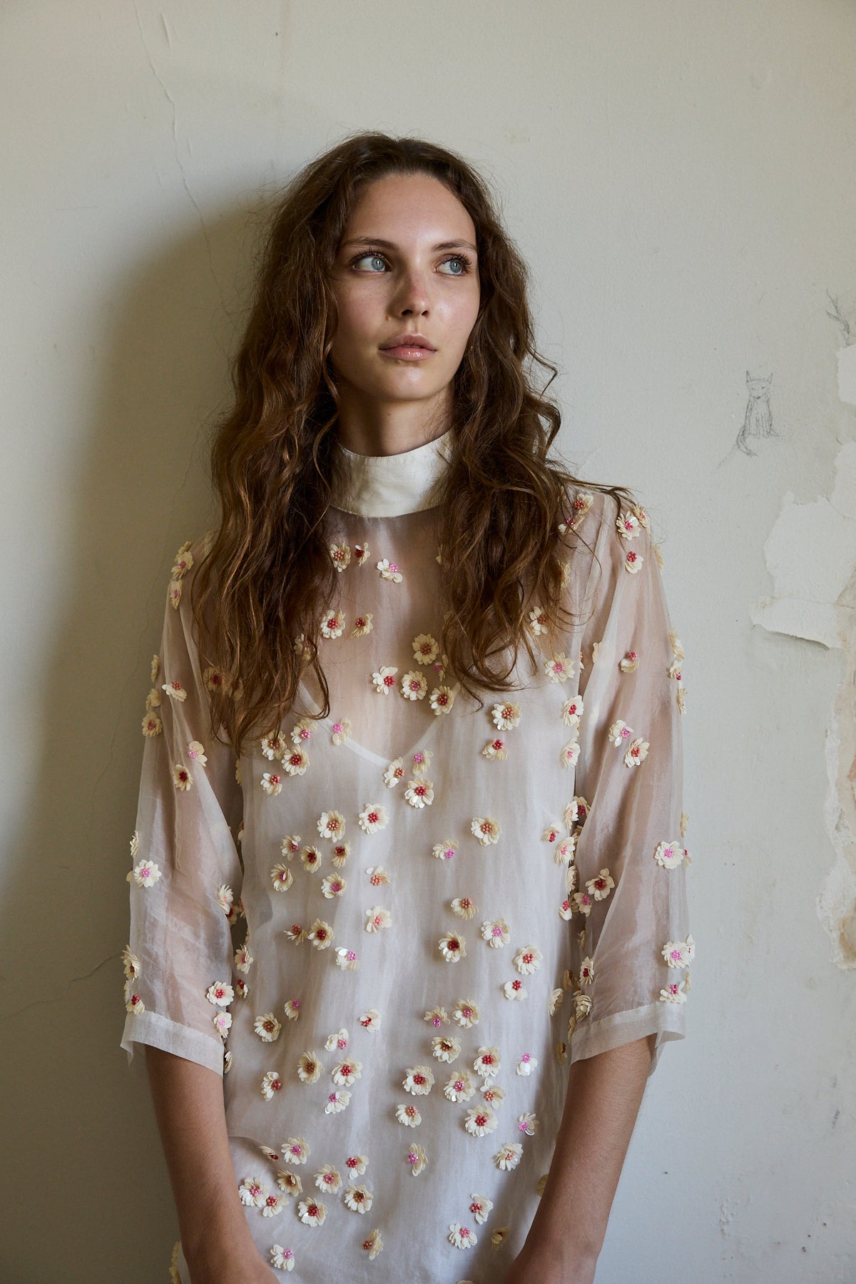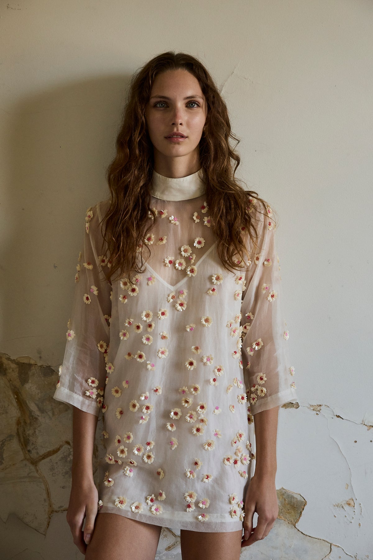 IRIS EMBROIDERY TUNIC, IVORY FLORAL ORGANZA