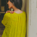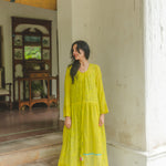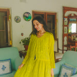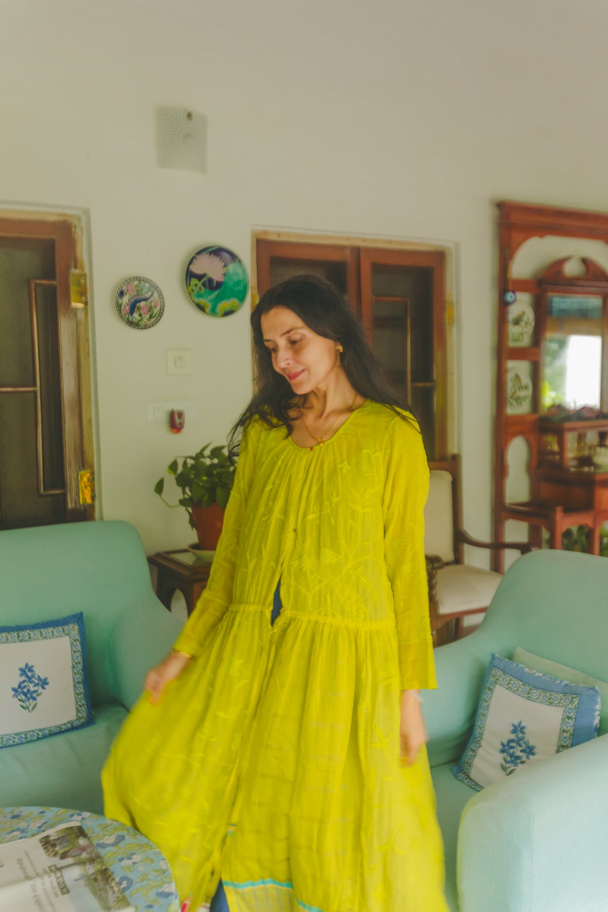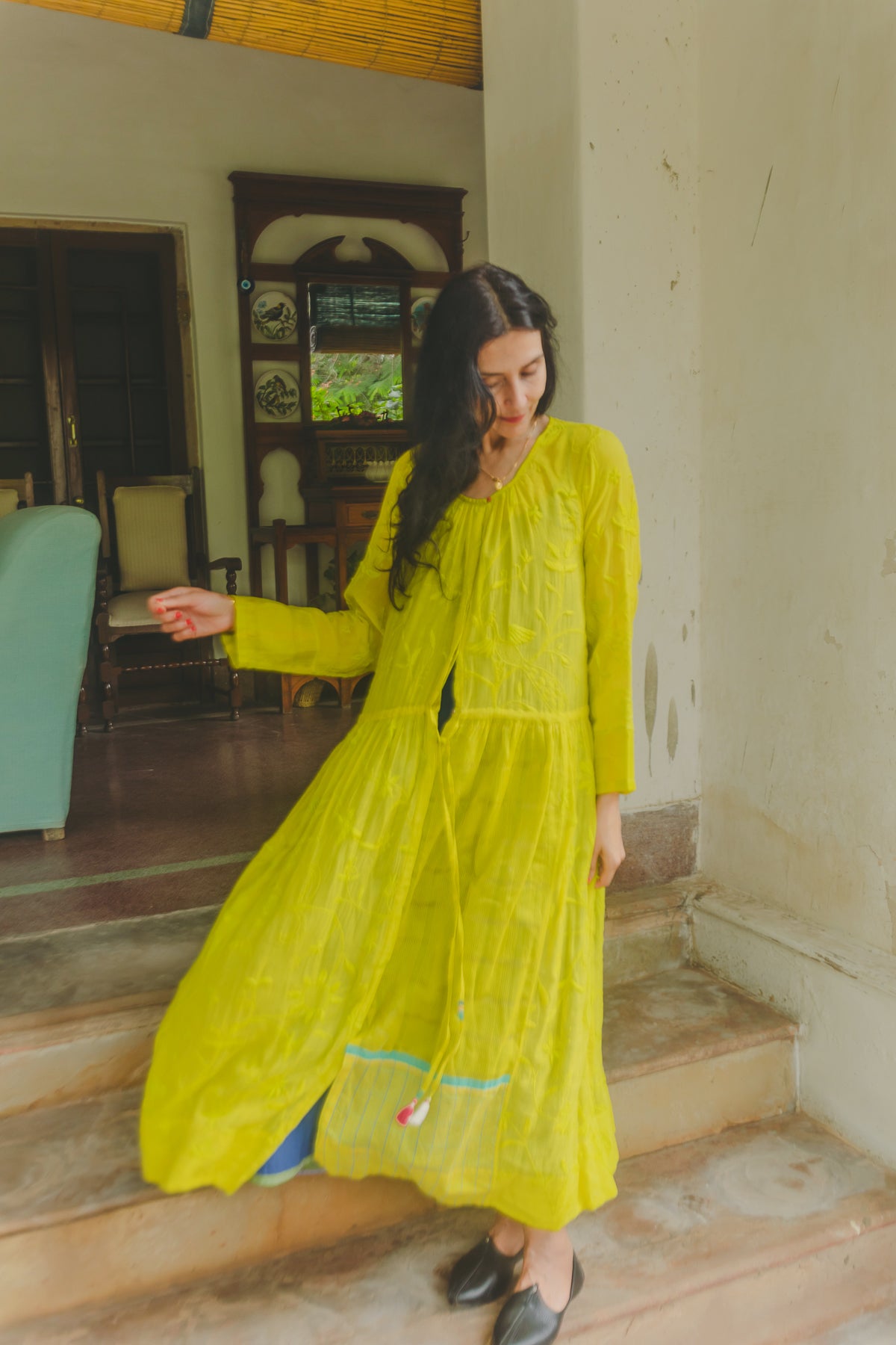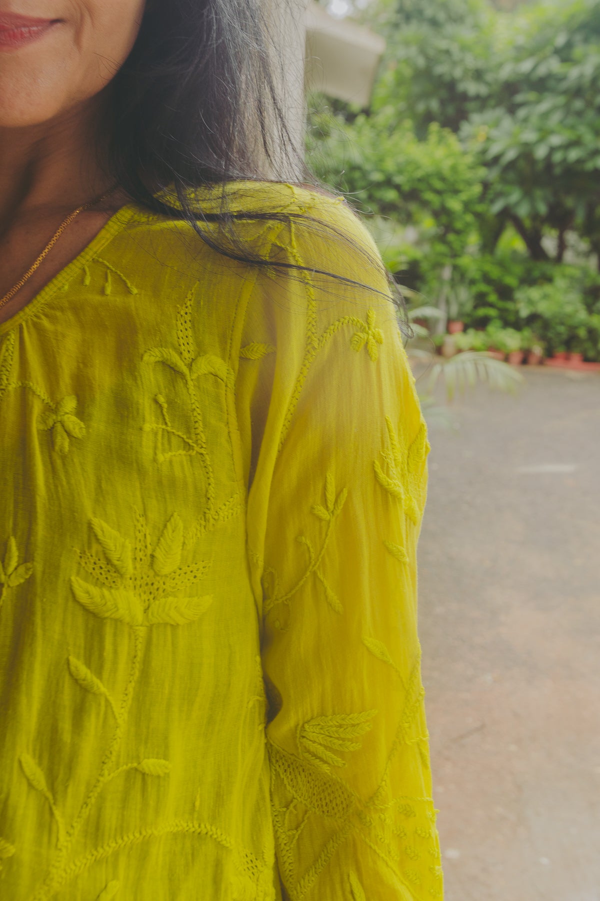 KEYA DRESS, LIME CHIKAN EMBROIDERY