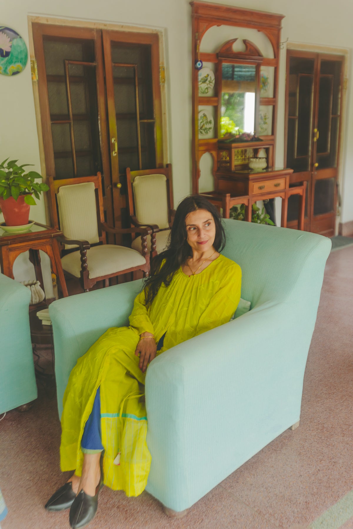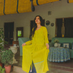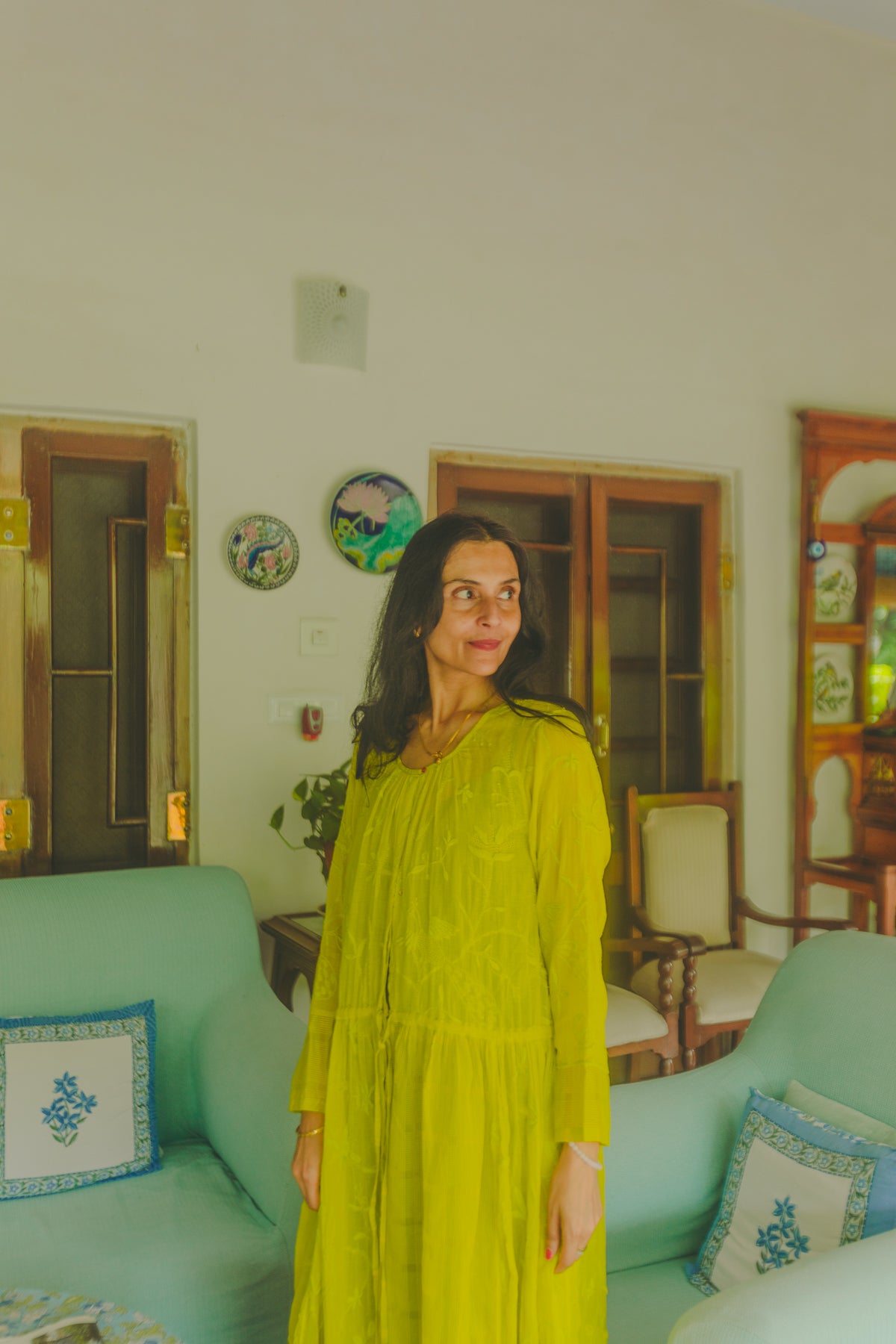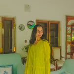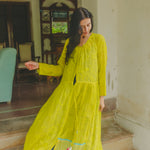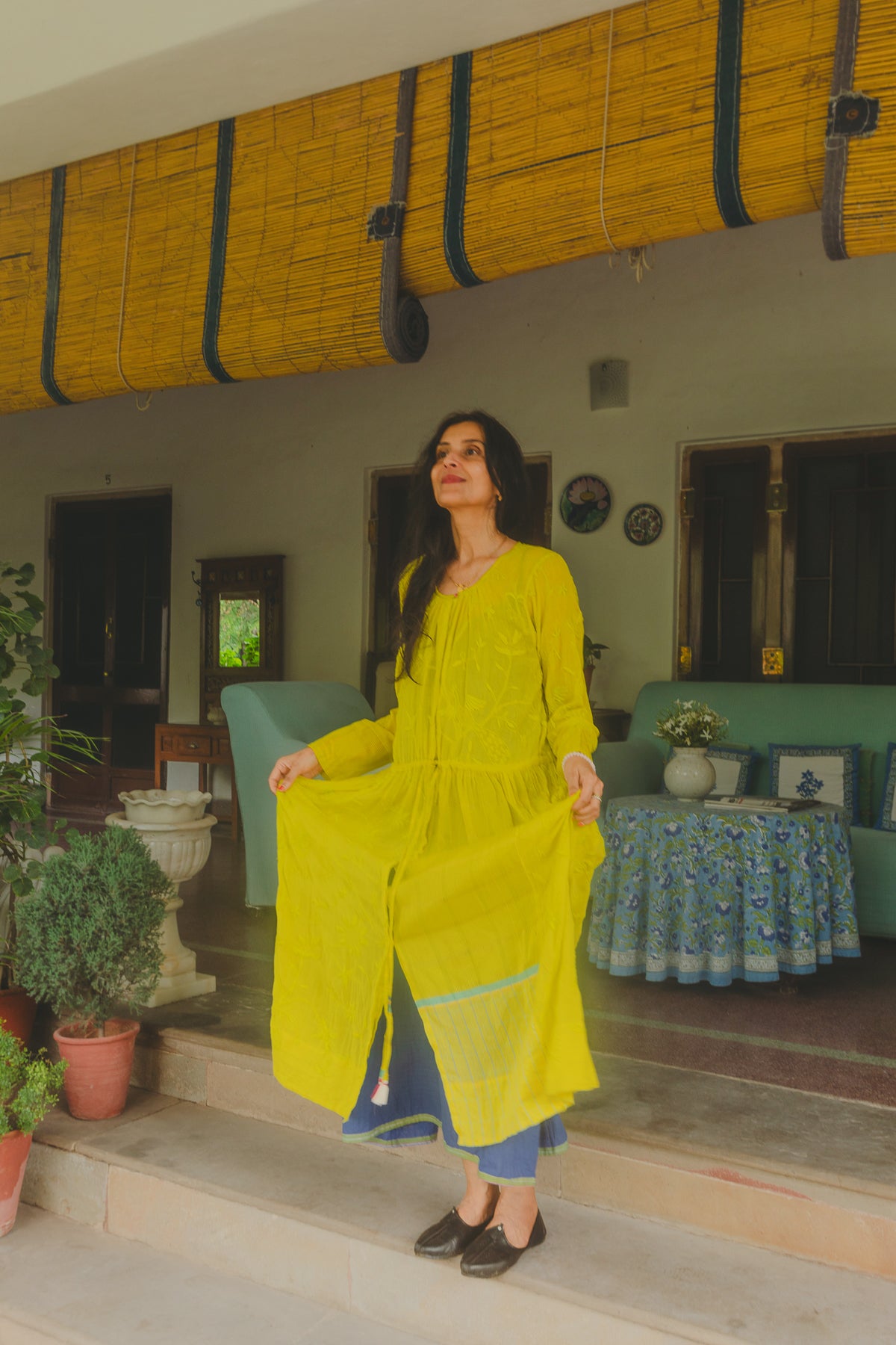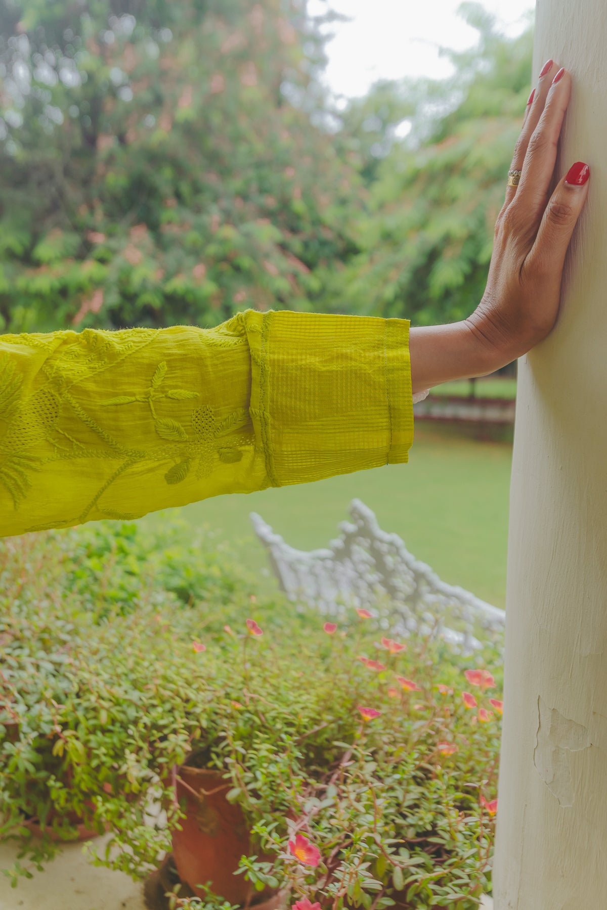 KEYA DRESS, LIME CHIKAN EMBROIDERY