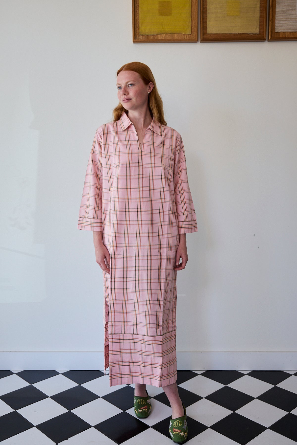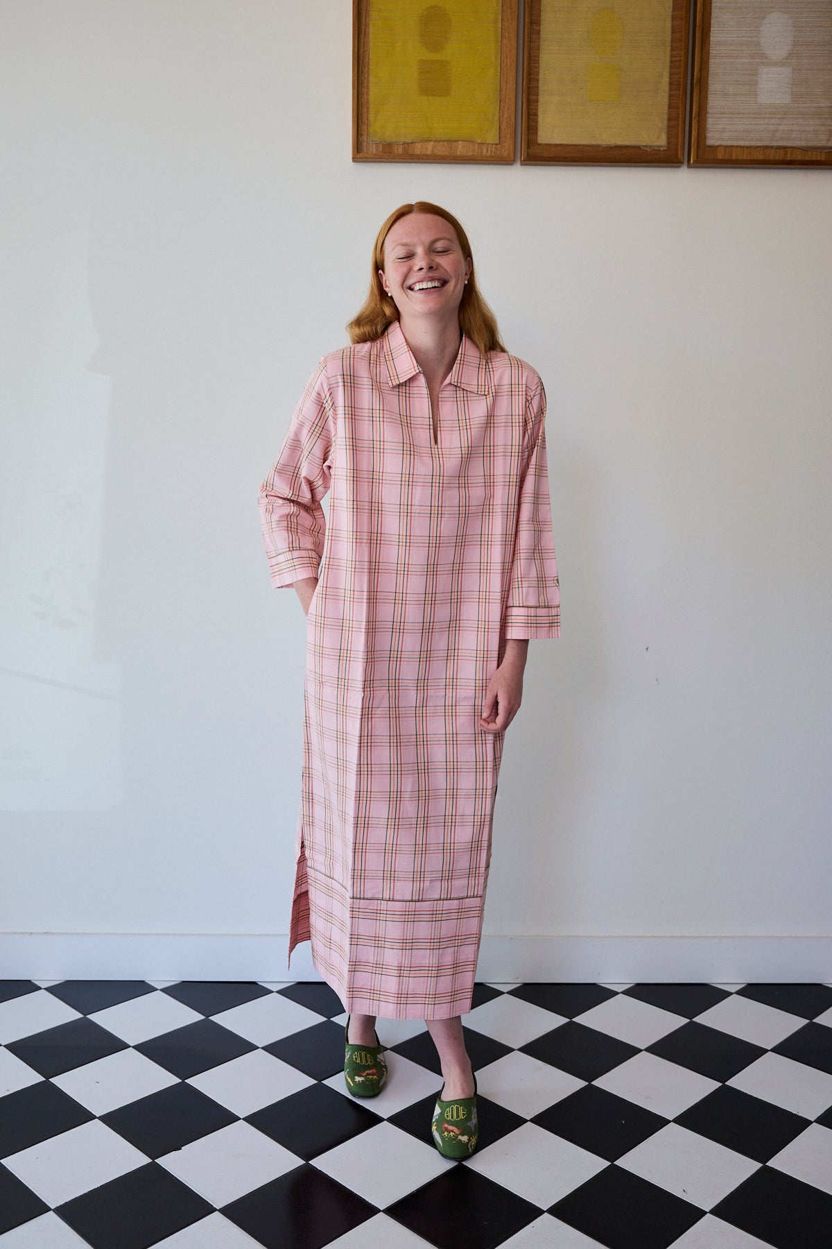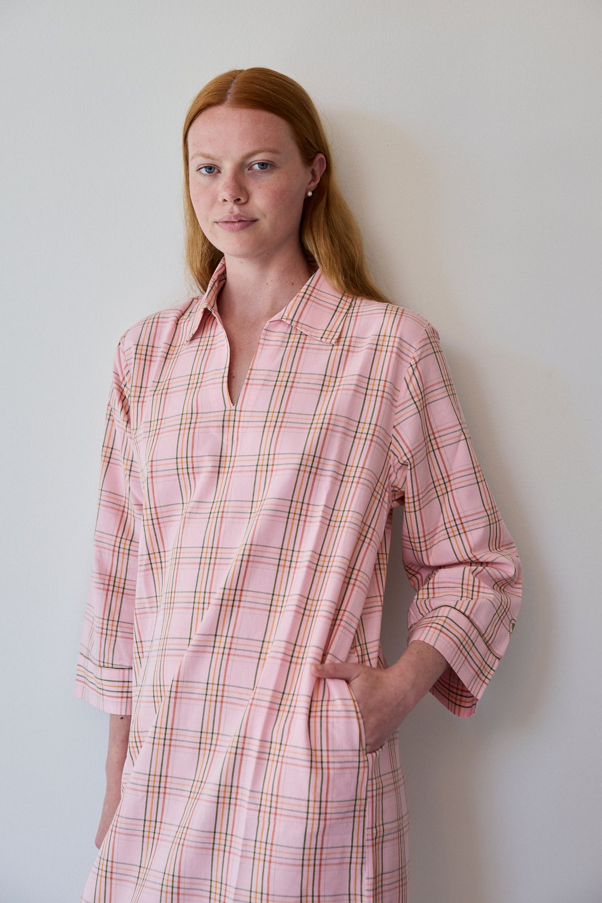 LILY MAXI TUNIC, PINK CHECK COTTON