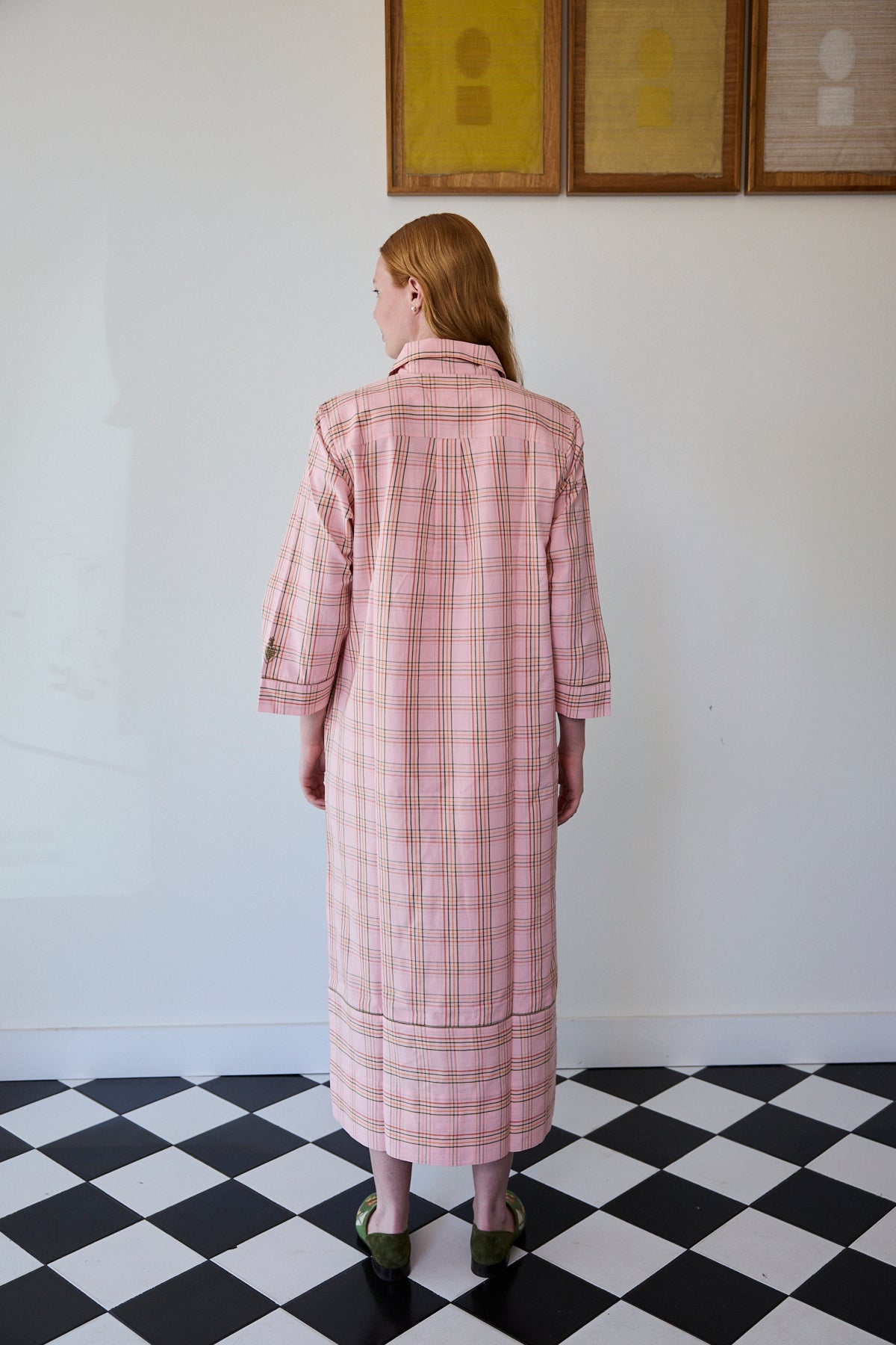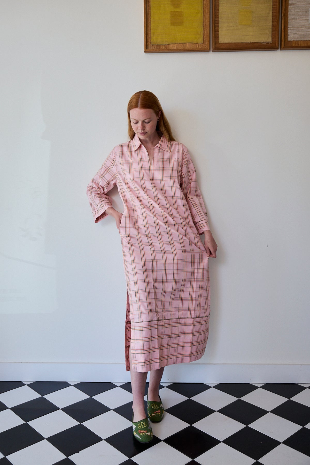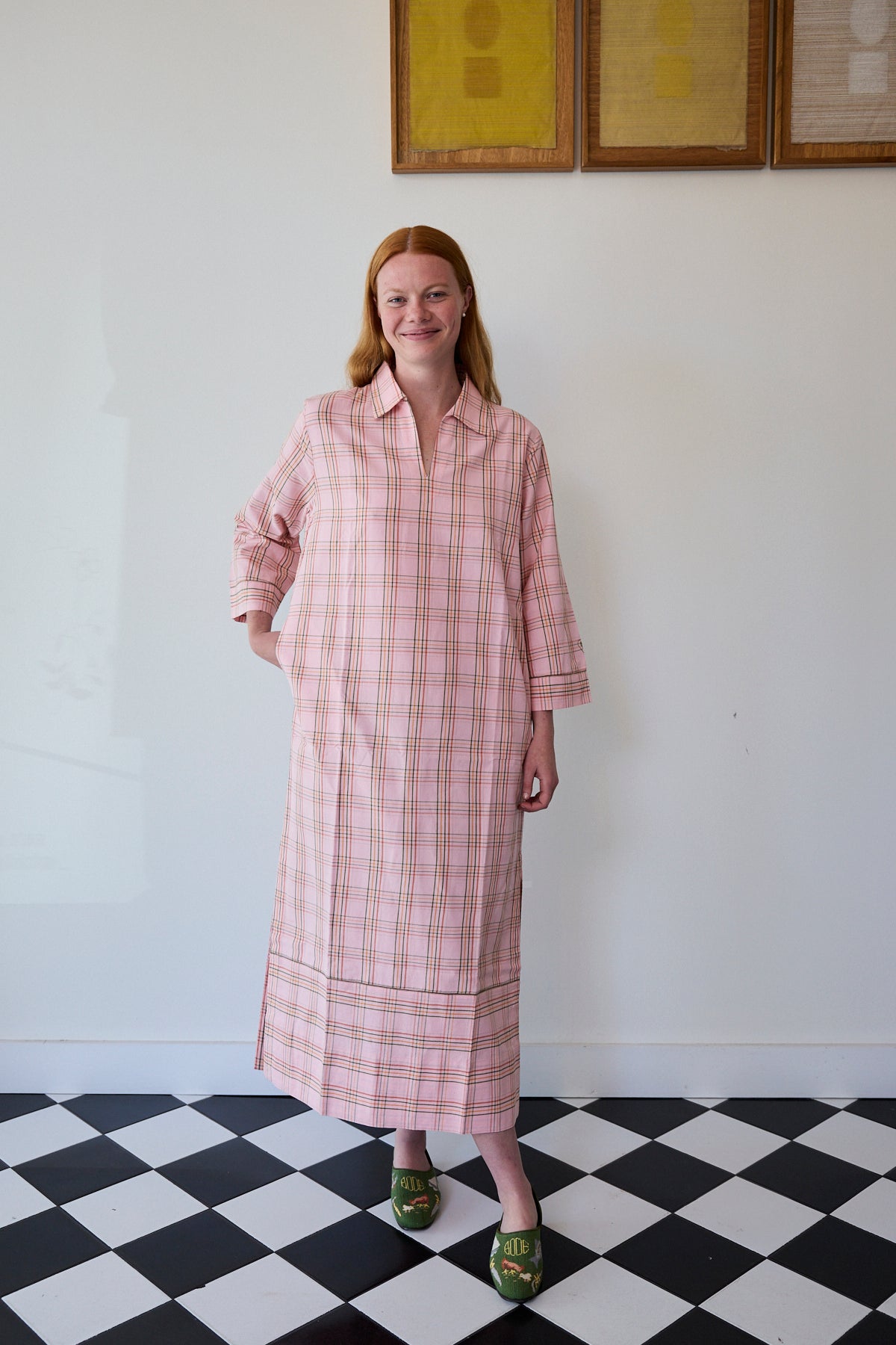 LILY MAXI TUNIC, PINK CHECK COTTON