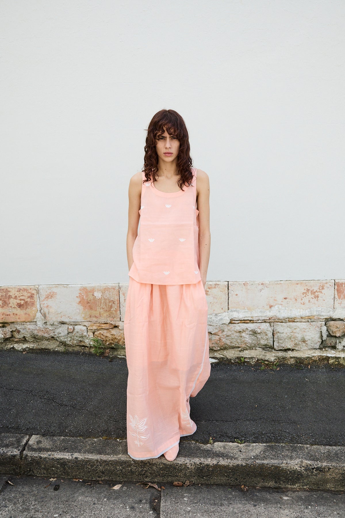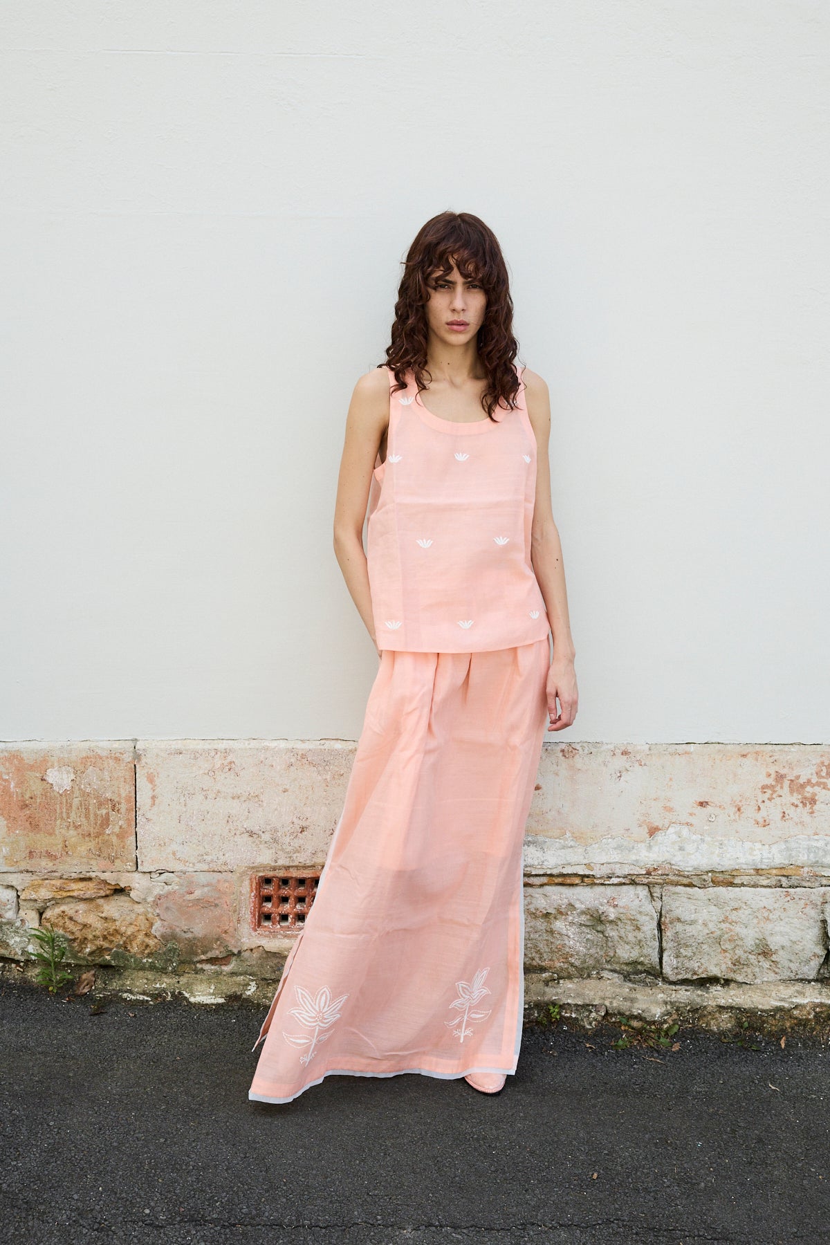 LOTUS EMBROIDERY MAXI SKIRT, IVORY COTTON SILK