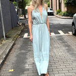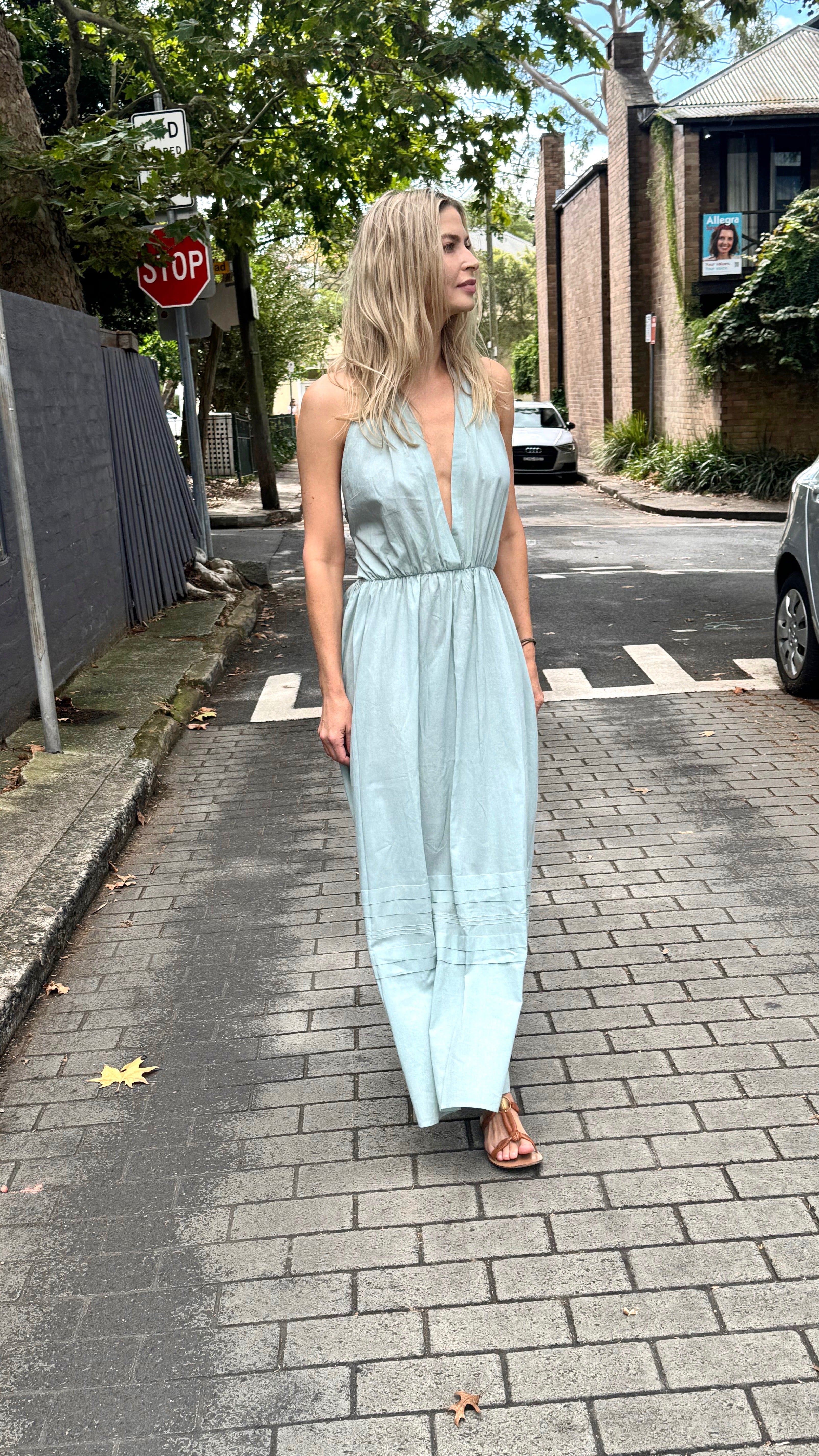 LUNI HALTER DRESS,MINT BLUE COTTON VOILE