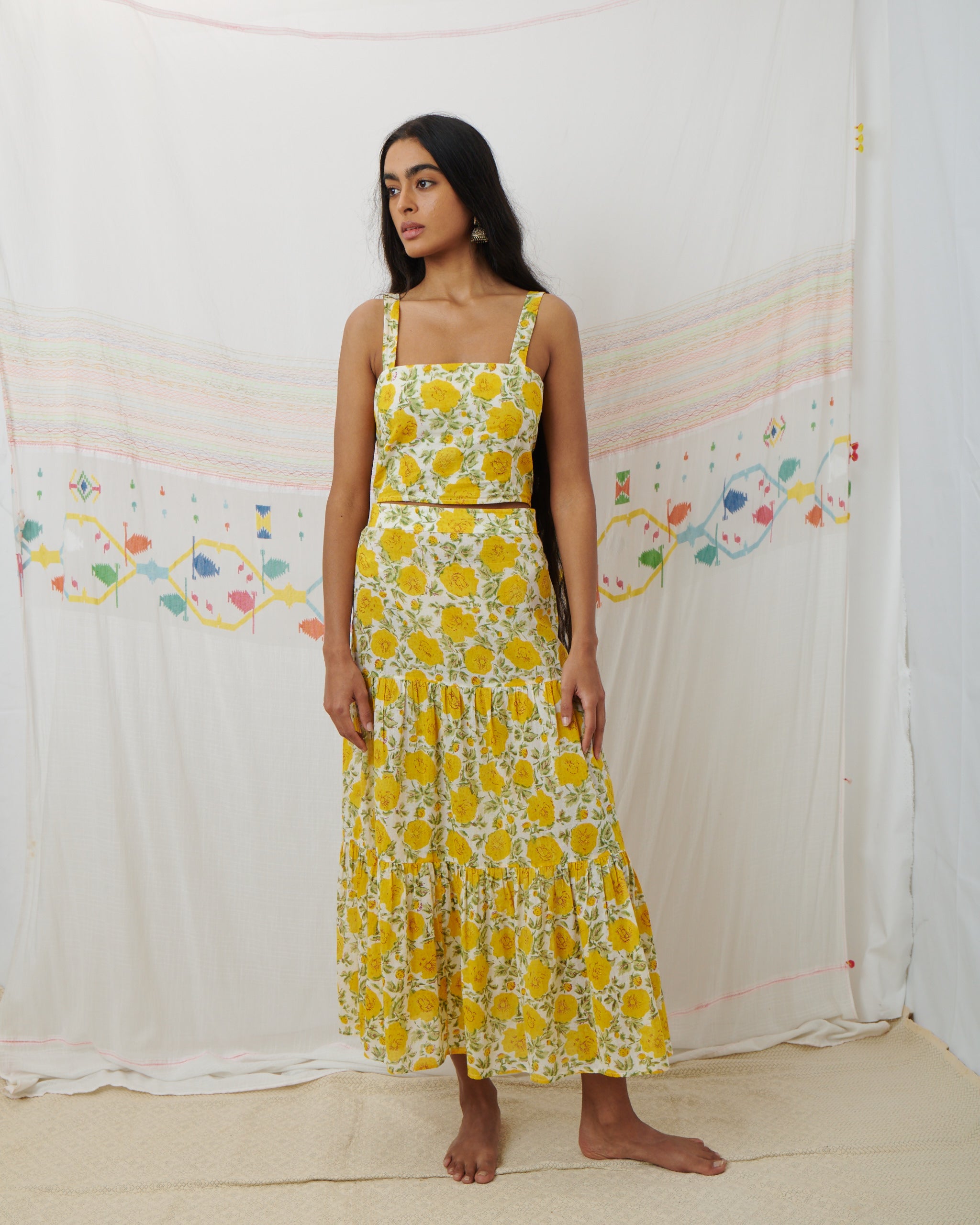 MAHI CROP, MARIGOLD FLORAL COTTON