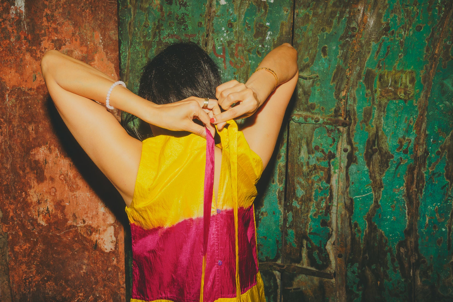 MAJA DRESS, GOLD//FUCHSIA SILK