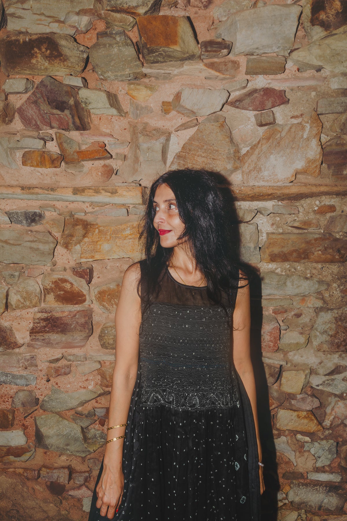 MIDNIGHT DRESS SLEEVELESS, BLACK COTTON SILK