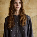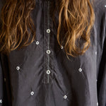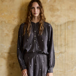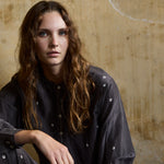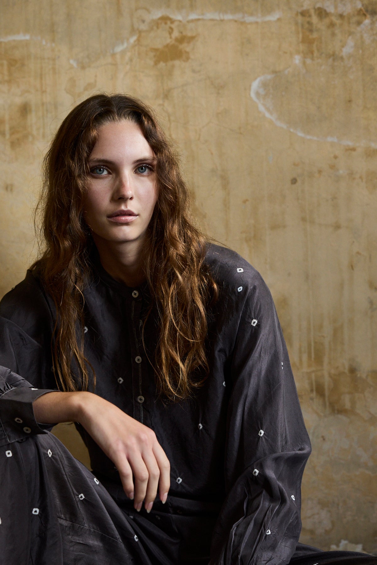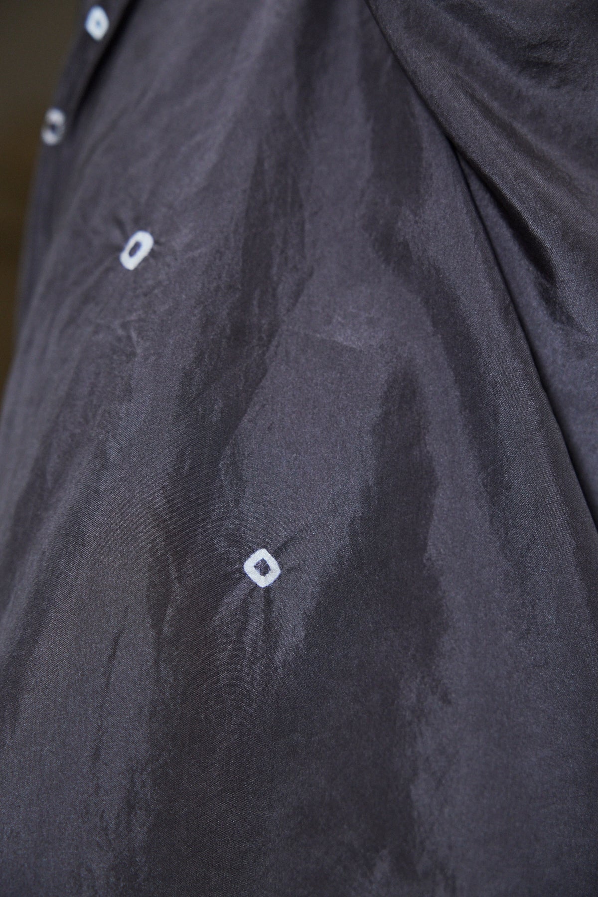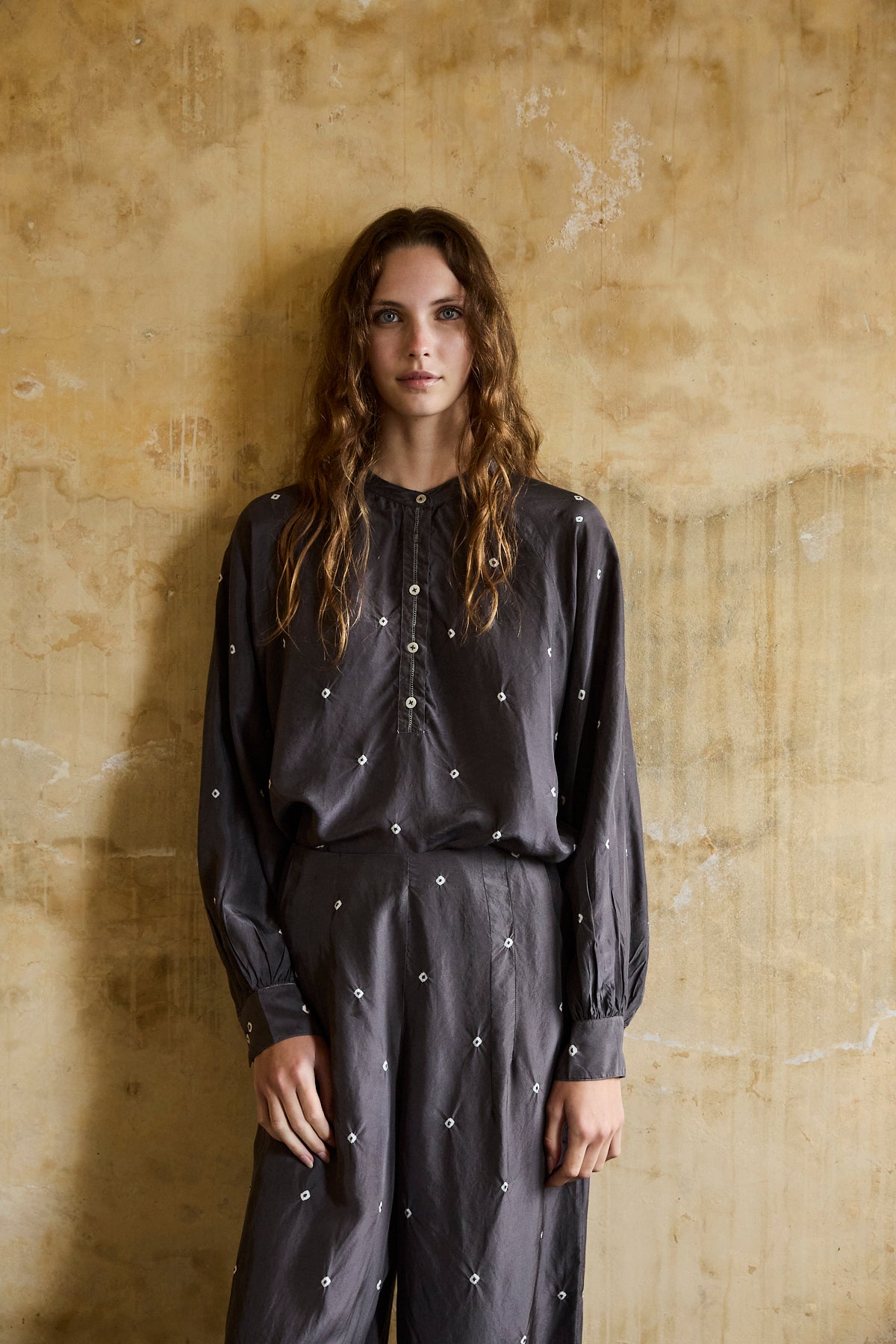 MIDNIGHT BLOUSE, CHARCOAL/IVORY BANDHINI TIE&DYE SILK