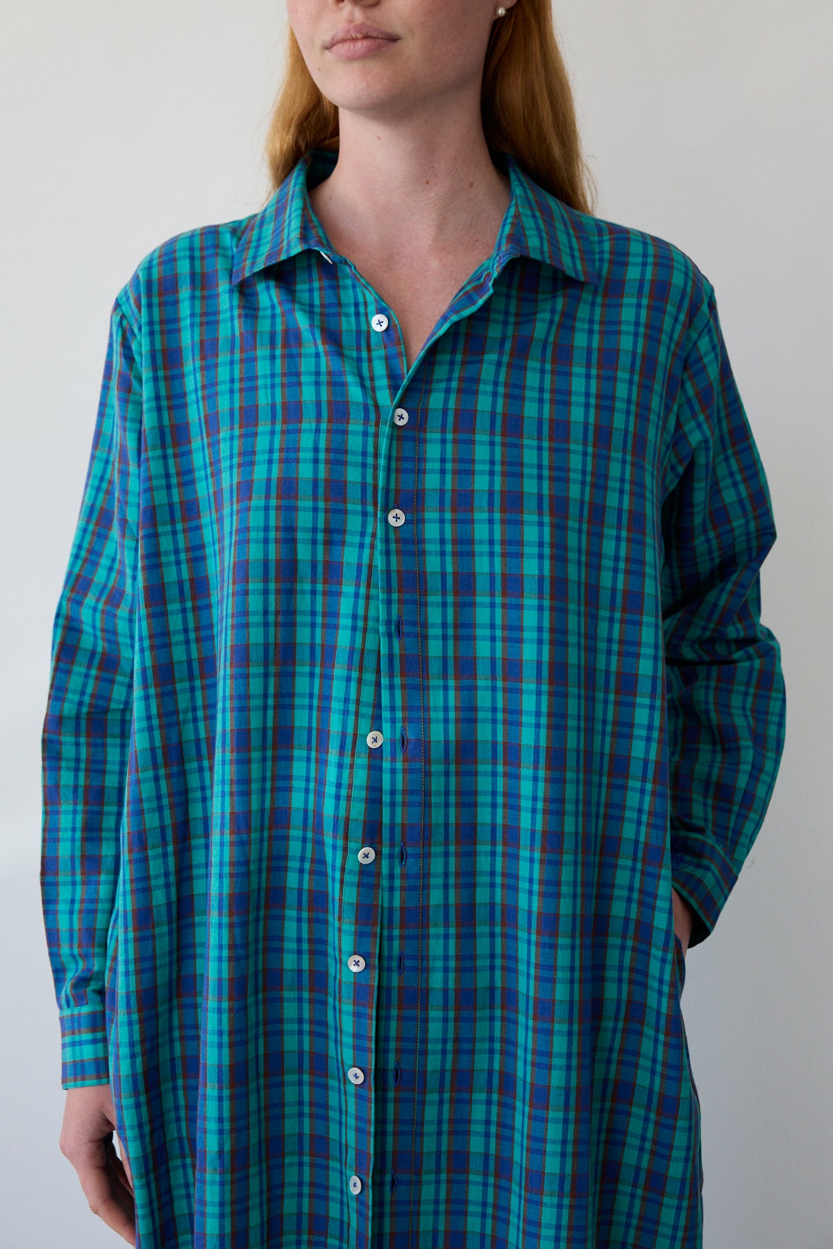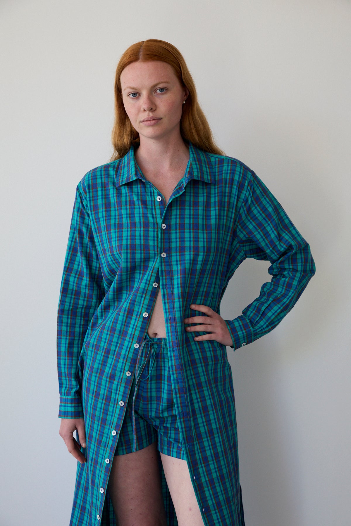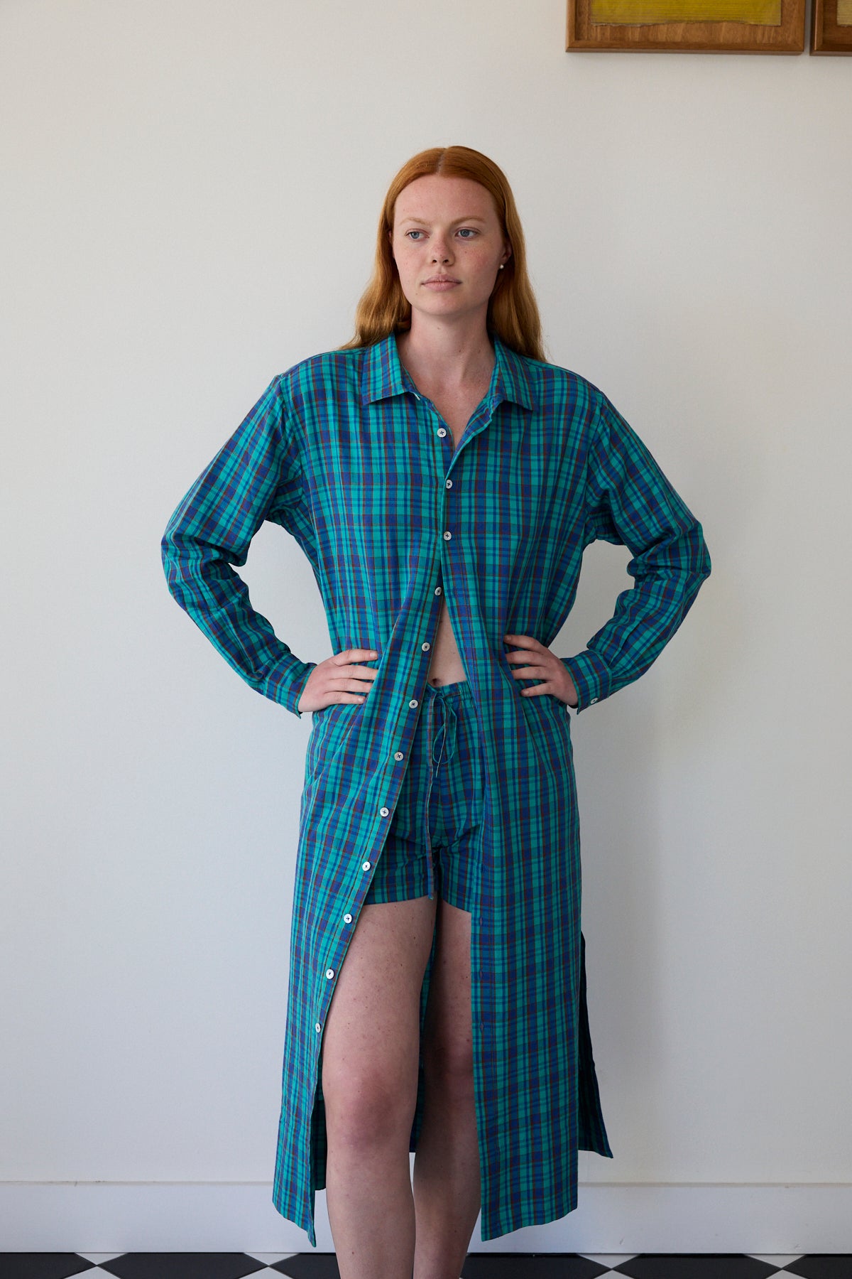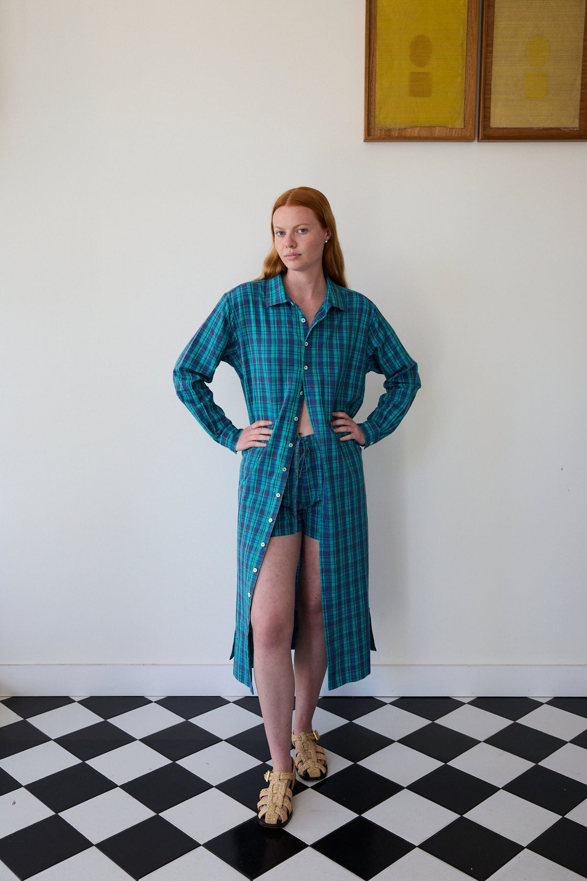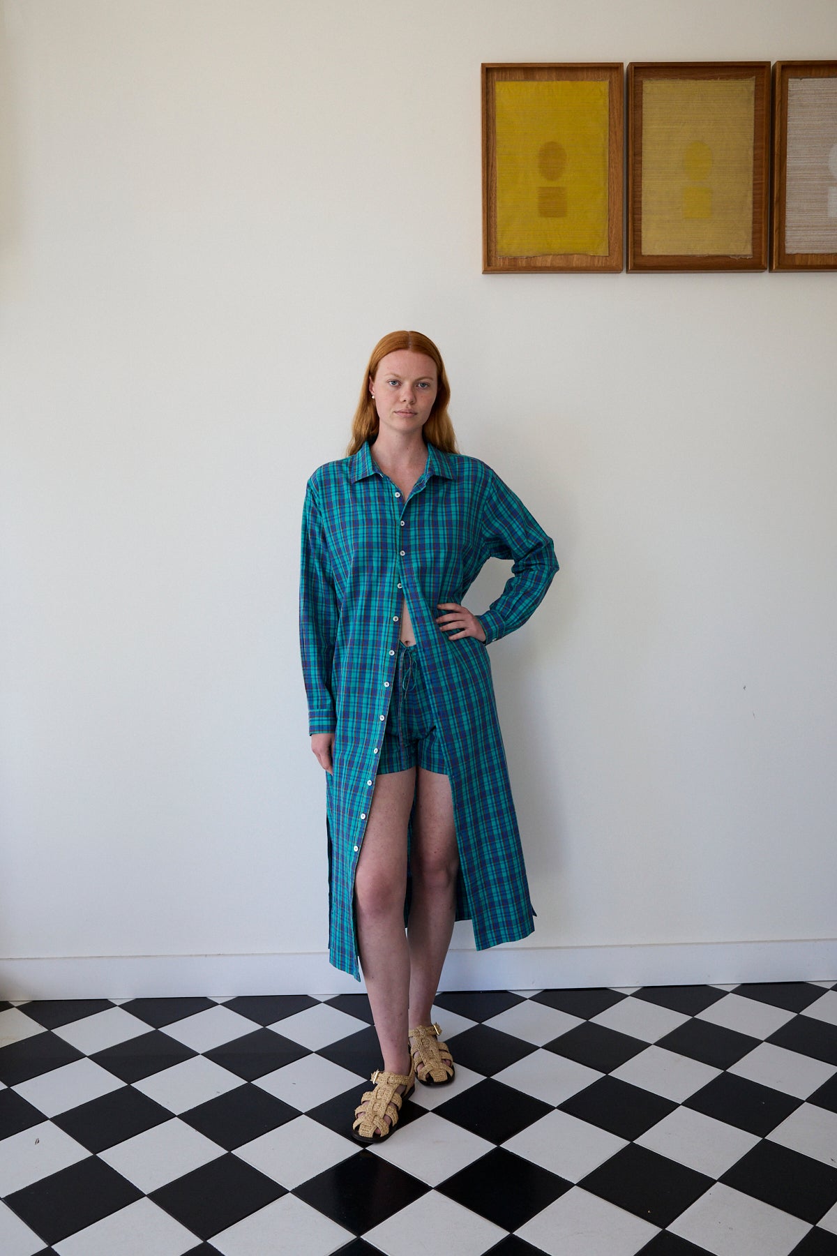 NILA TUNIC, BLUE // GREEN CHECK COTTON