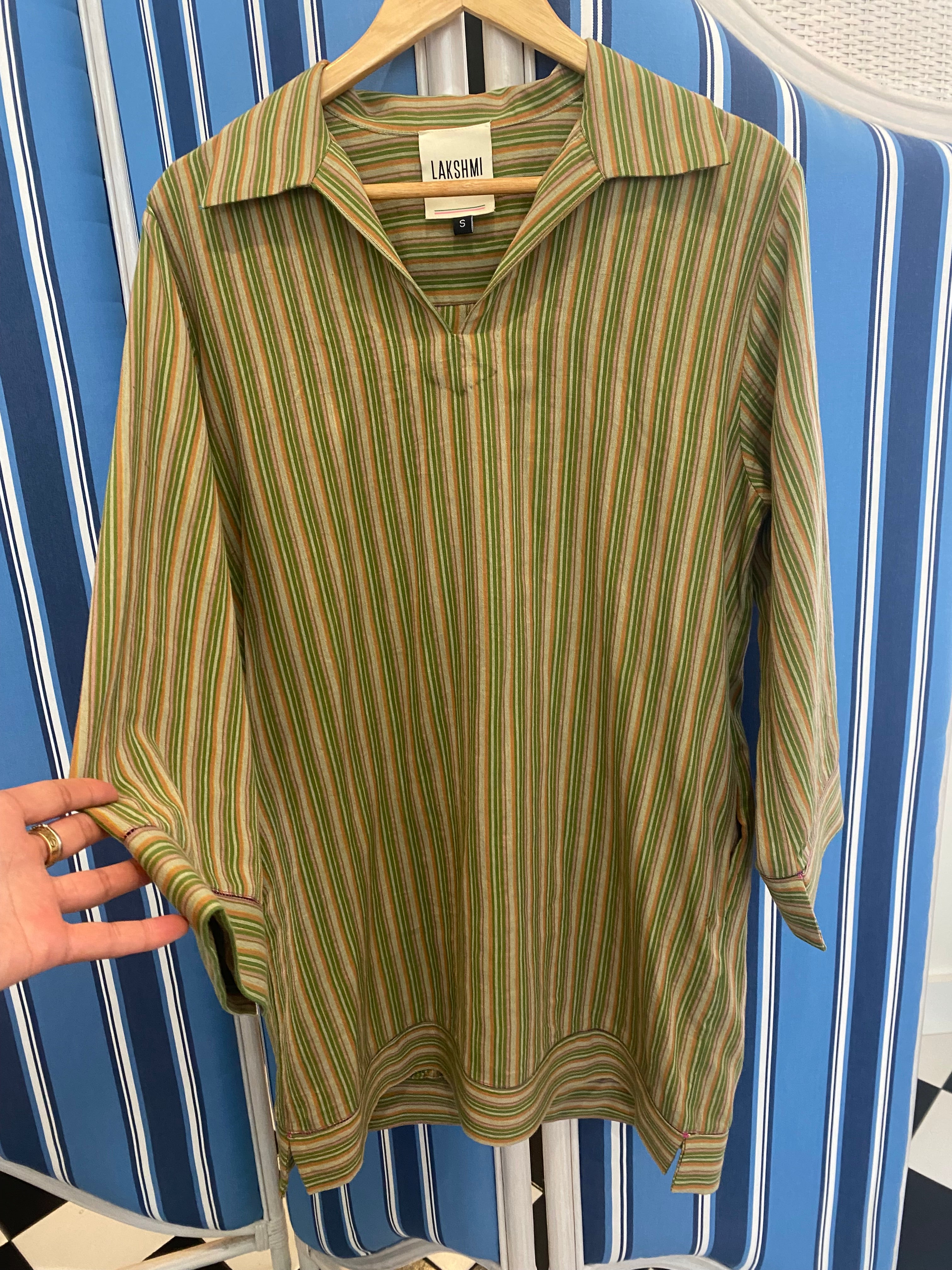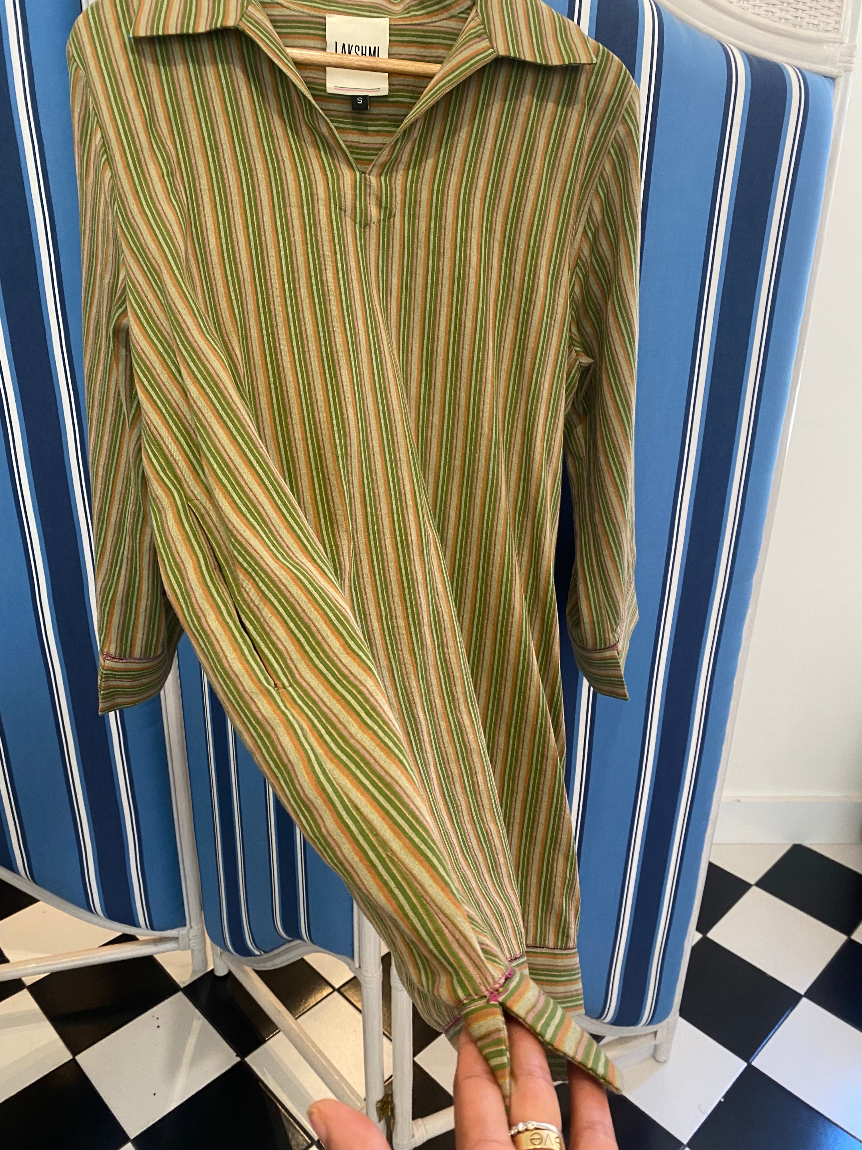 PALM MINI TUNIC, OLIVE STRIPE COTTON