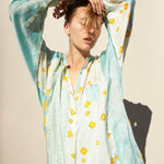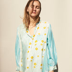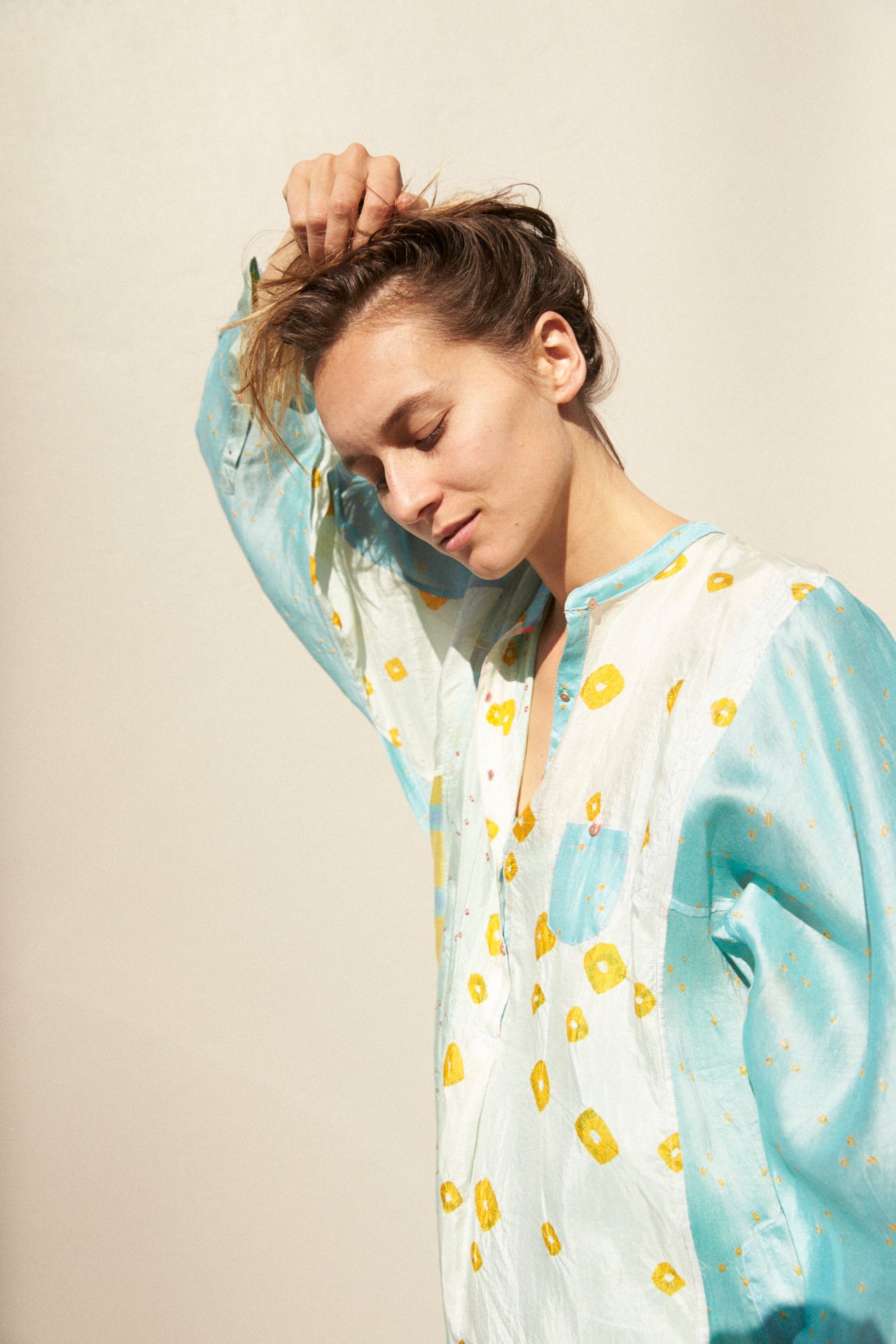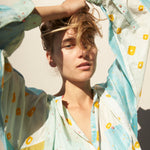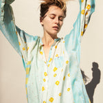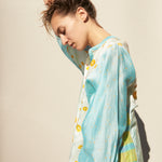 POLKA KURTA SHIRT, BLUE/YELLOW SILK