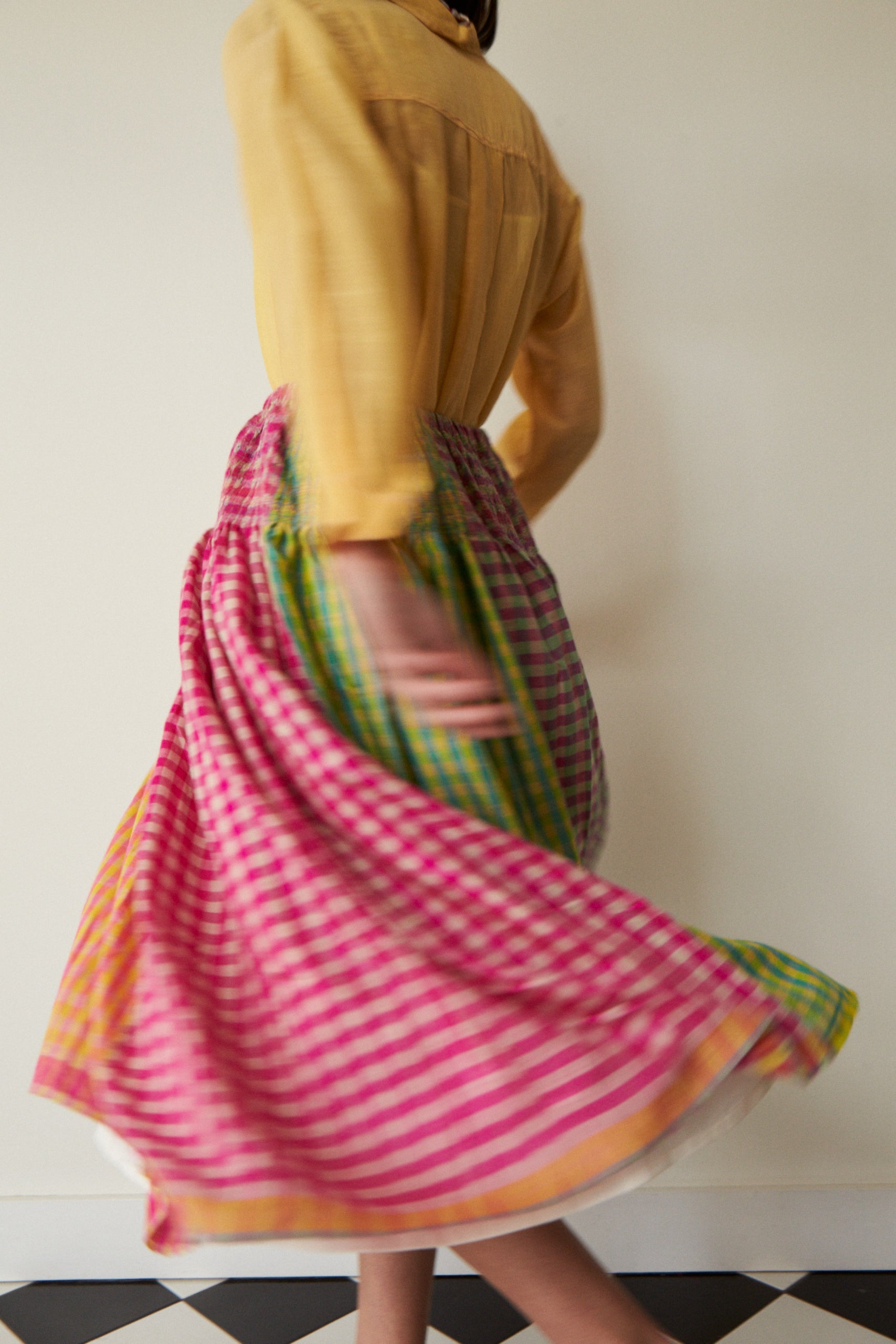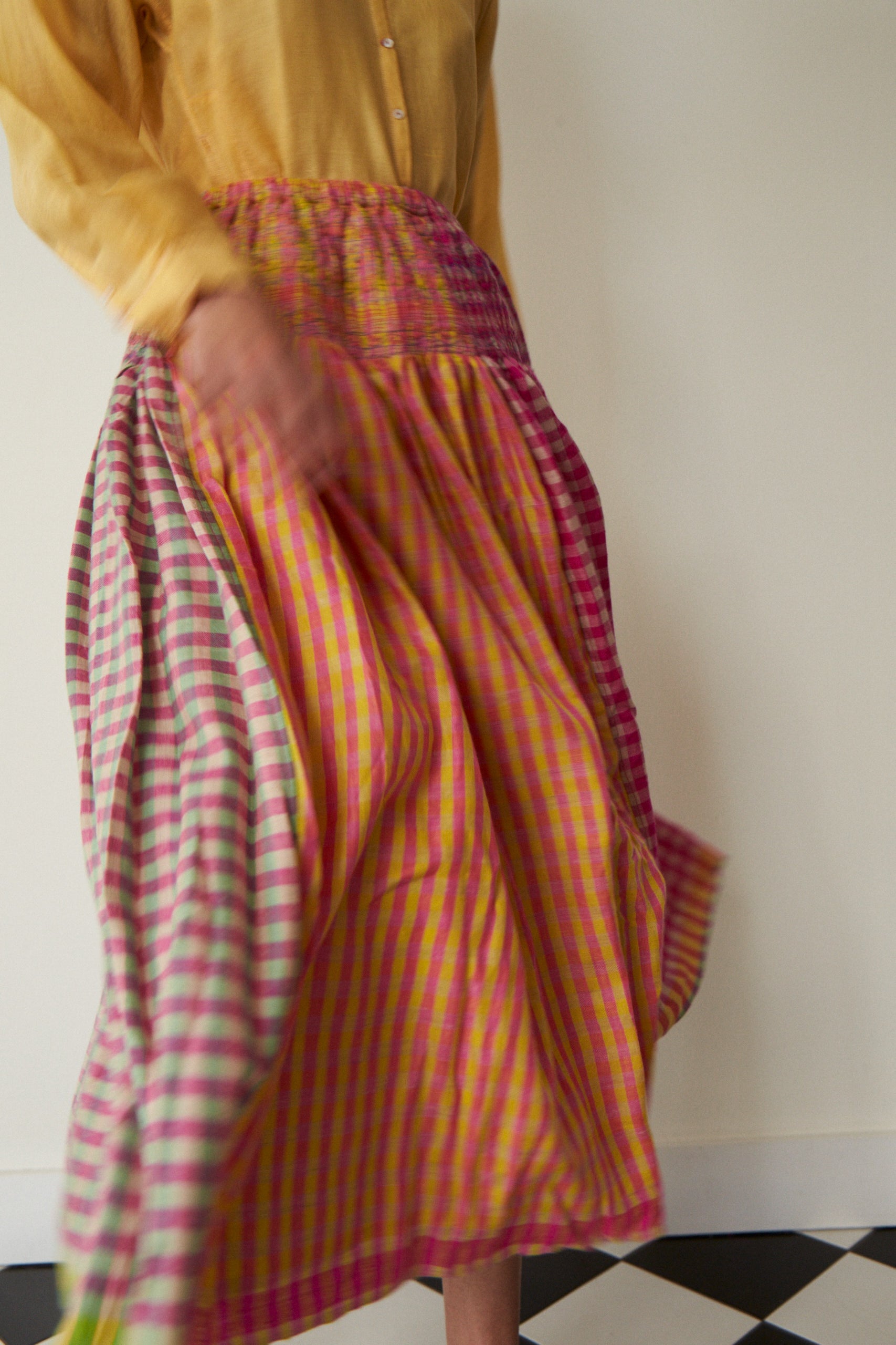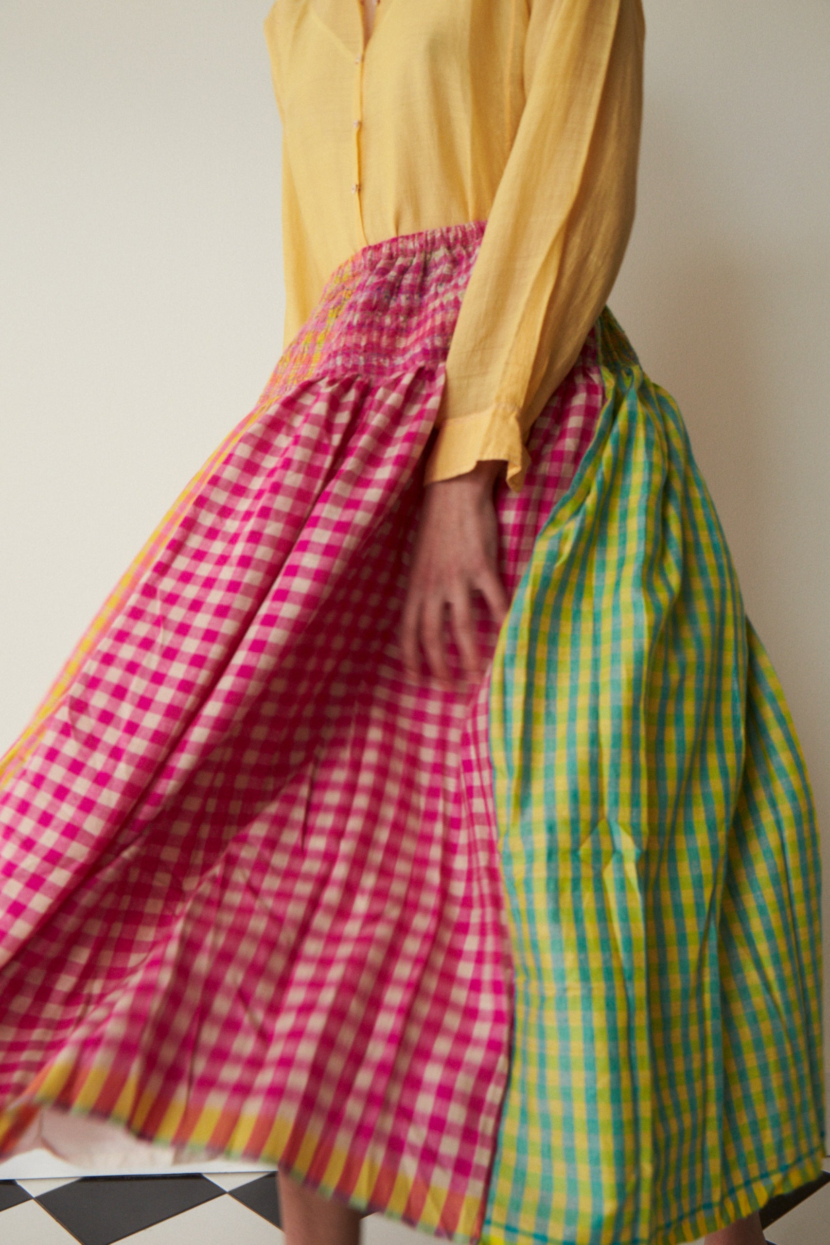 PRIYA SKIRT, HANDLOOM GINGHAM CASHMERE