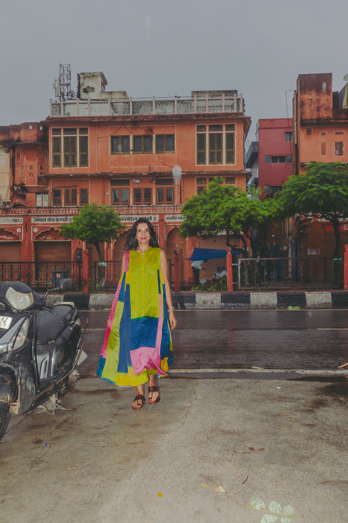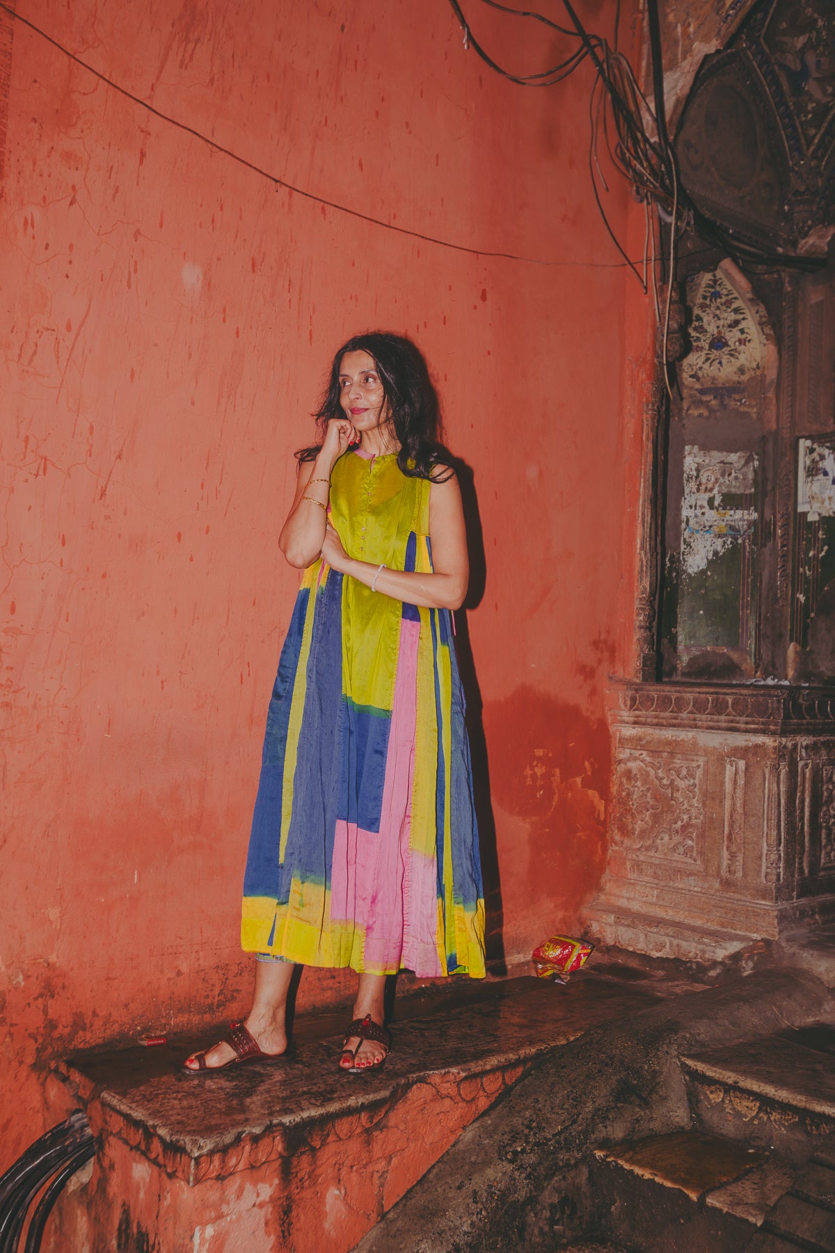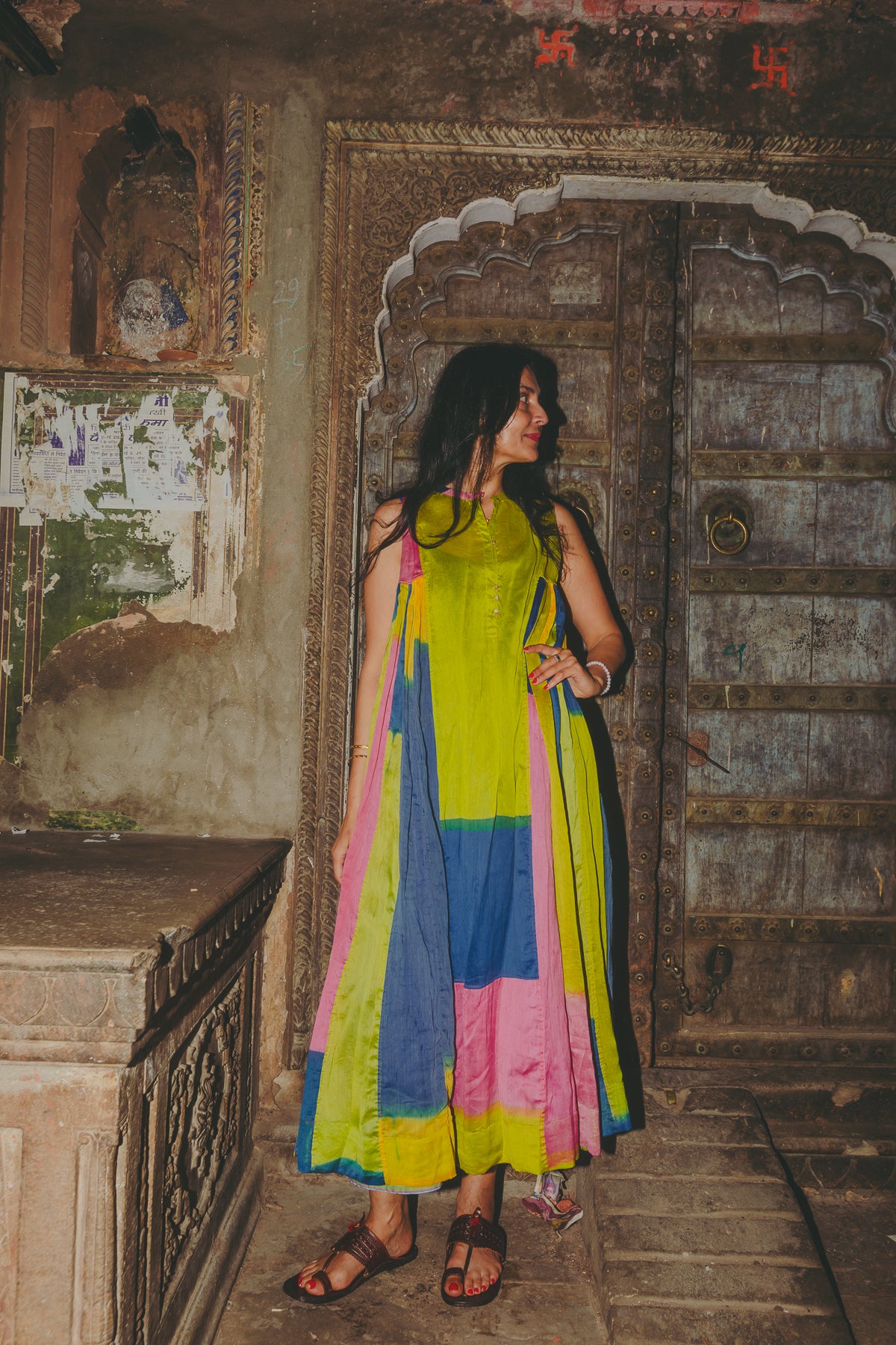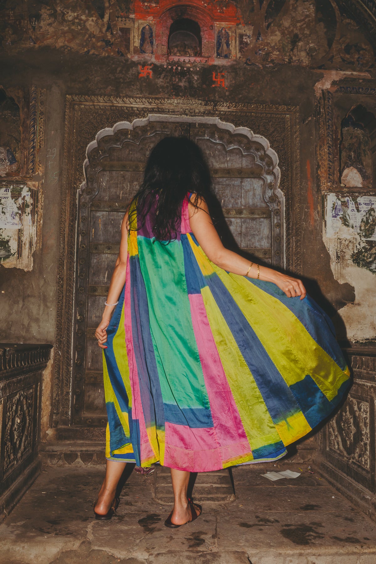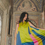 RAINBOW DRESS SLEEVELESS, GOLD // MULTICOLOR SILK