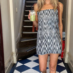 RIBBON DRESS, IKAT MONOCHROME HANDLOOM COTTON MINI