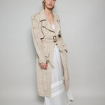 SAHA TRENCH COAT, BEIGE//BLACK COTTON SILK