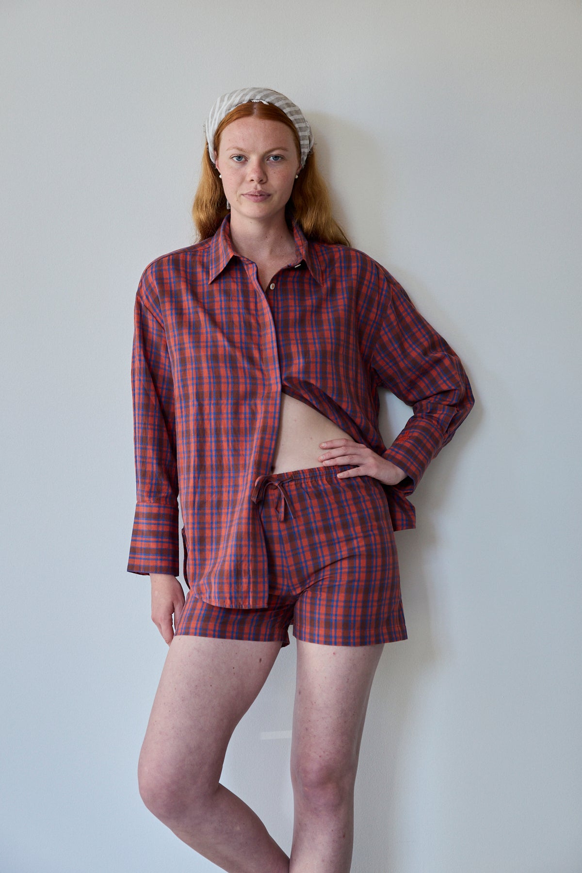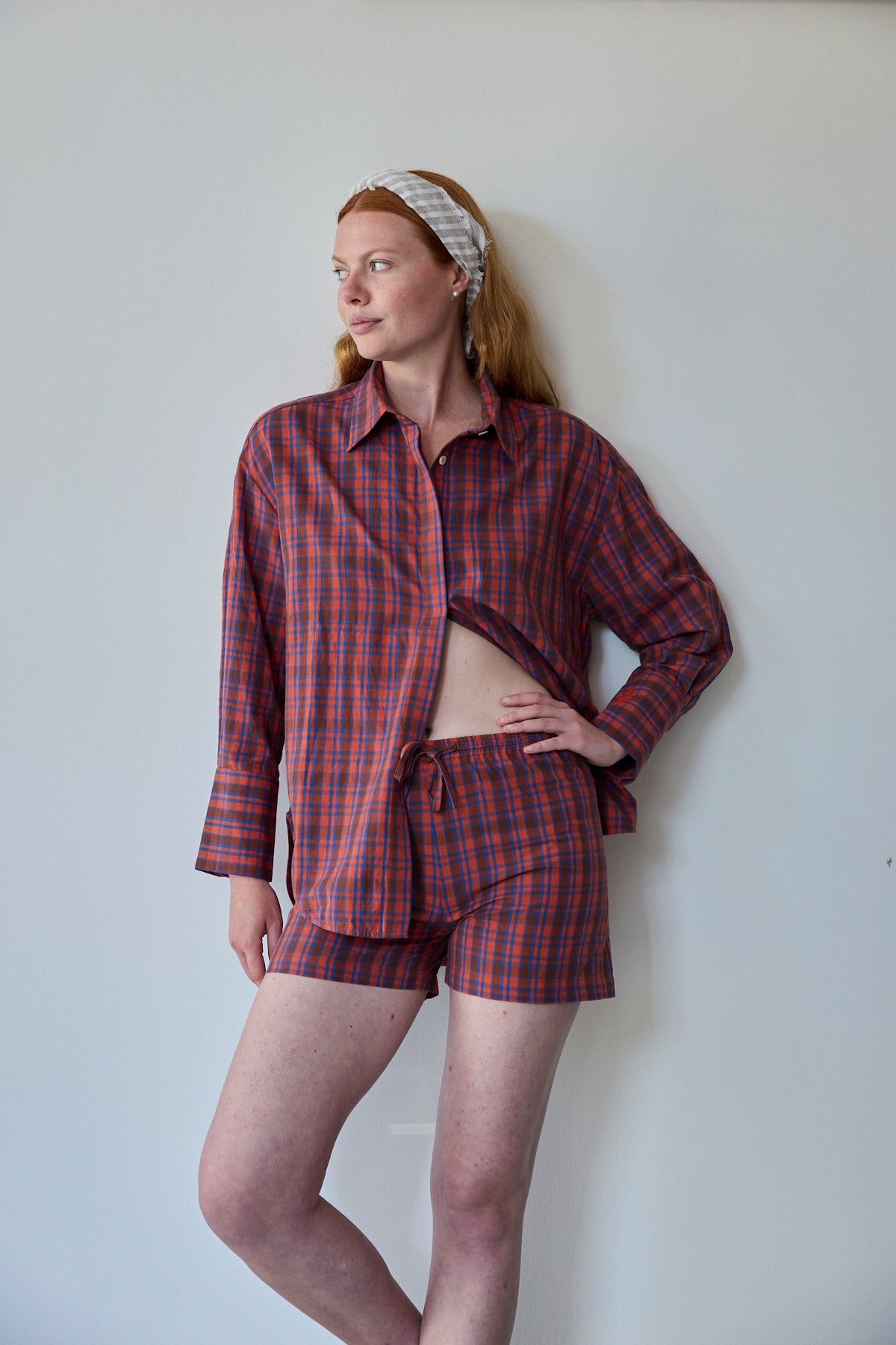 SCARLET SHORTS, CRIMSON RED // ROYAL BLUE CHECK COTTON