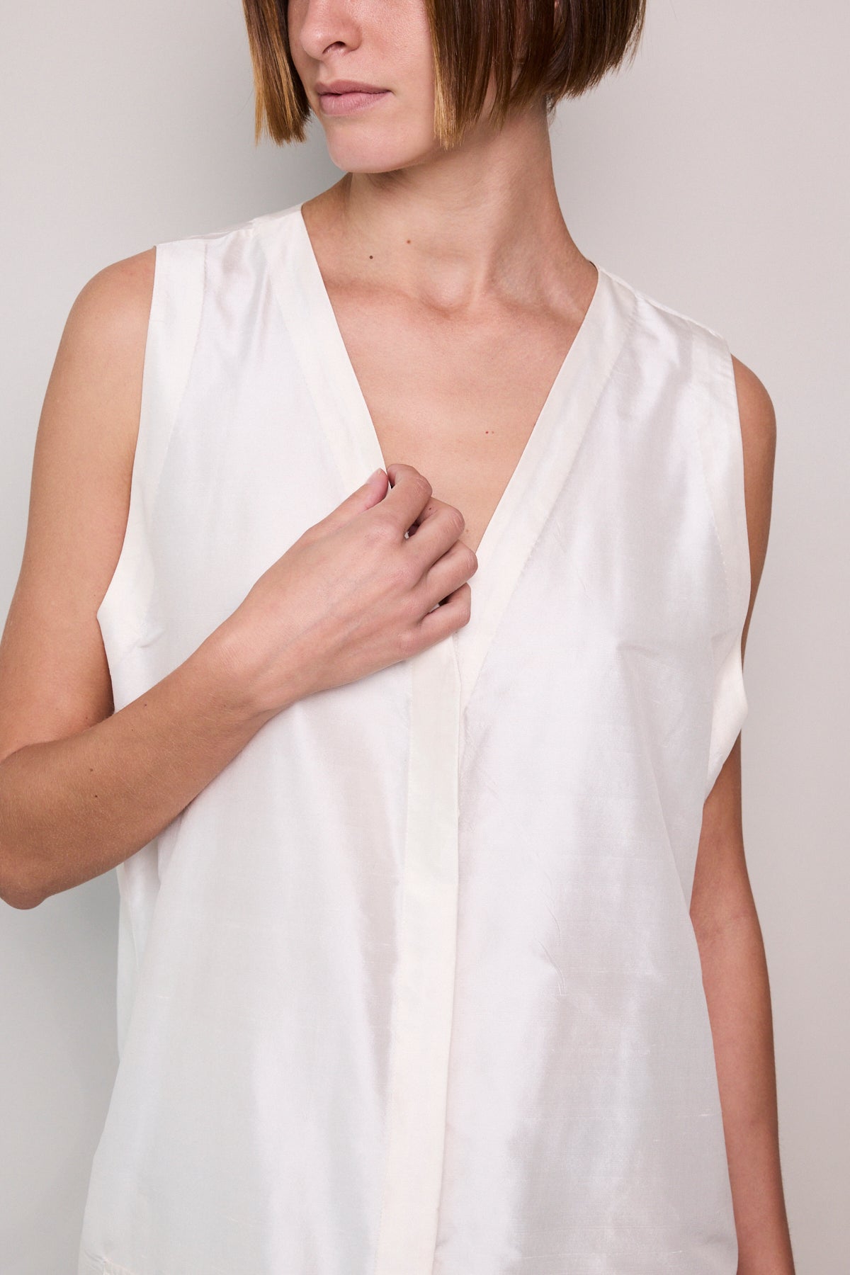 SITAR VEST, RAW SILK IVORY