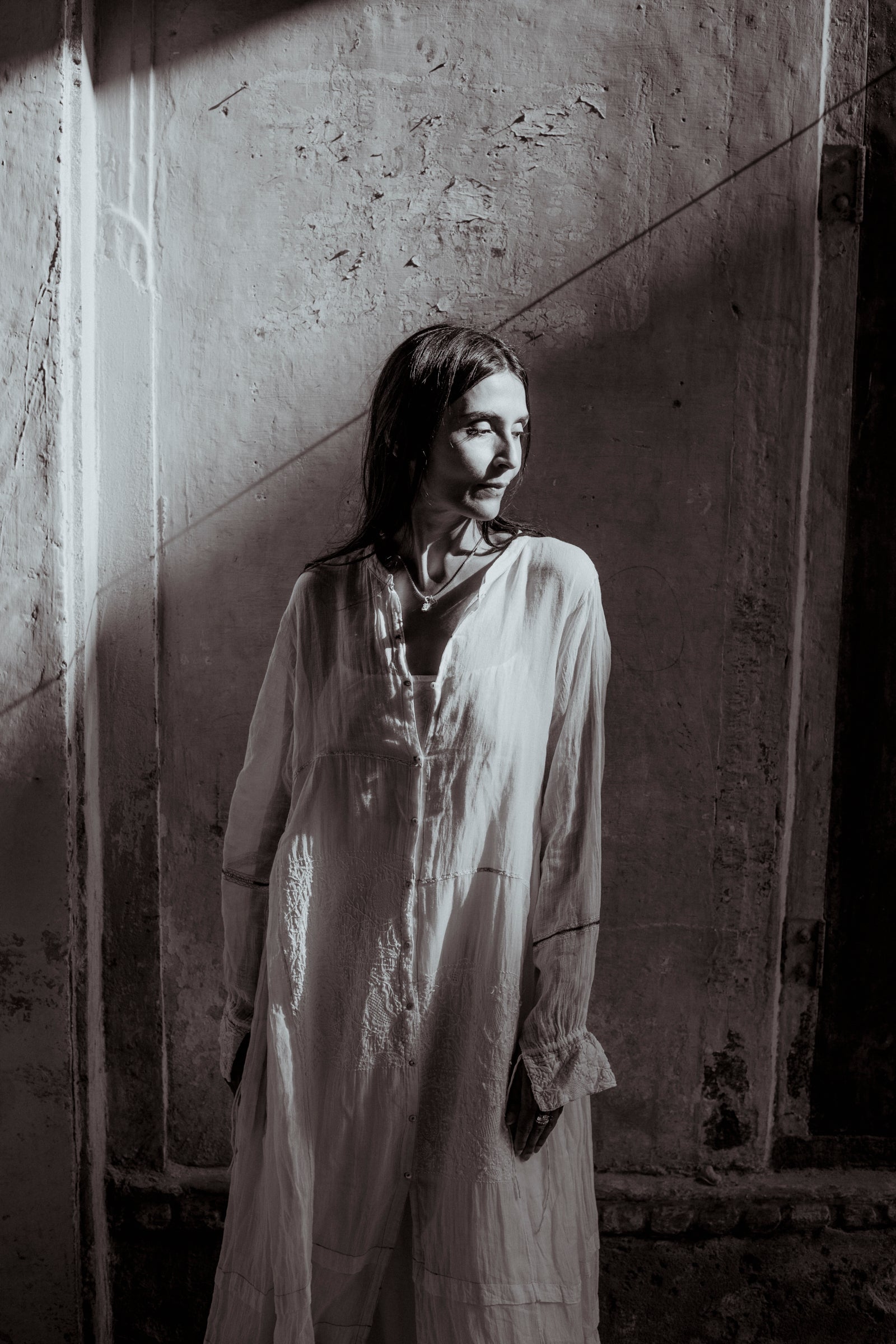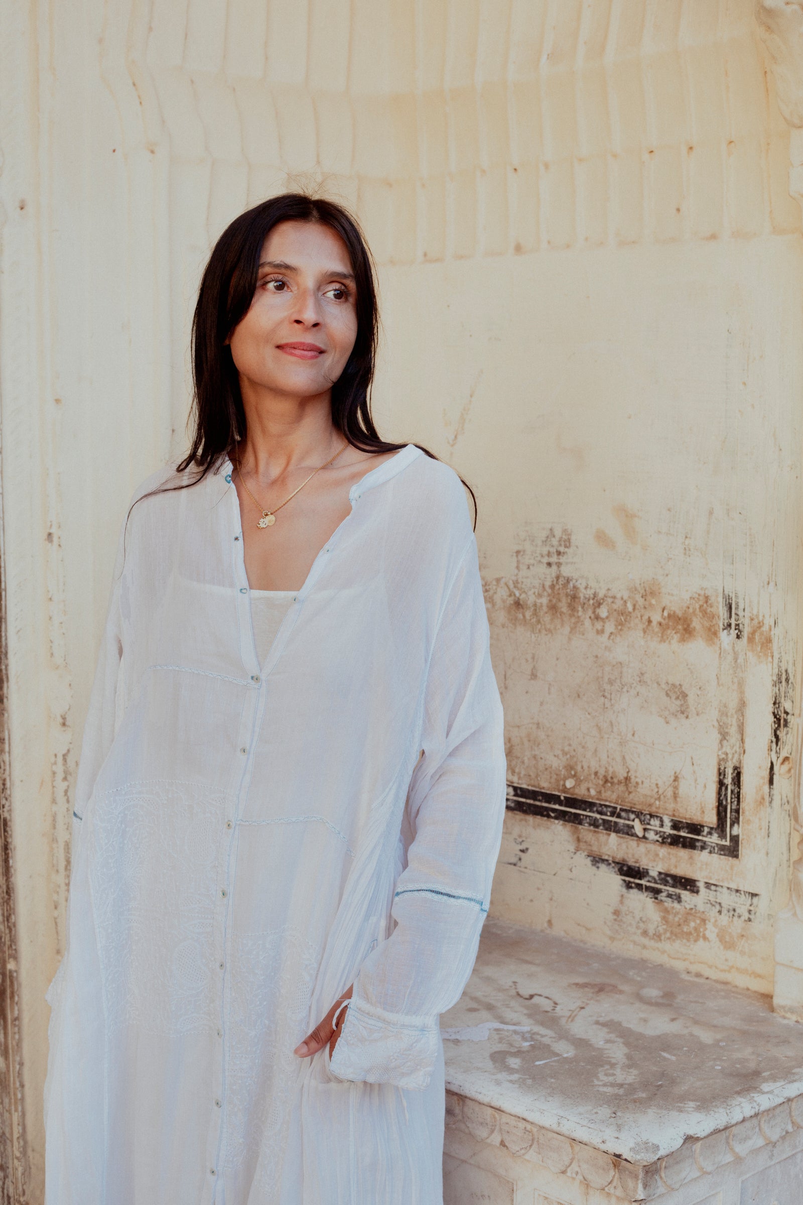 SMITA CHIKAN DRESS, WHITE // WHITE COTTON SILK