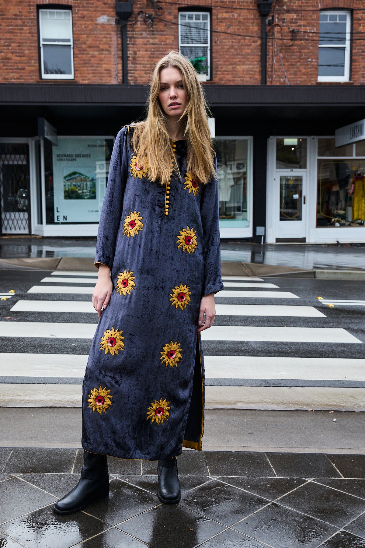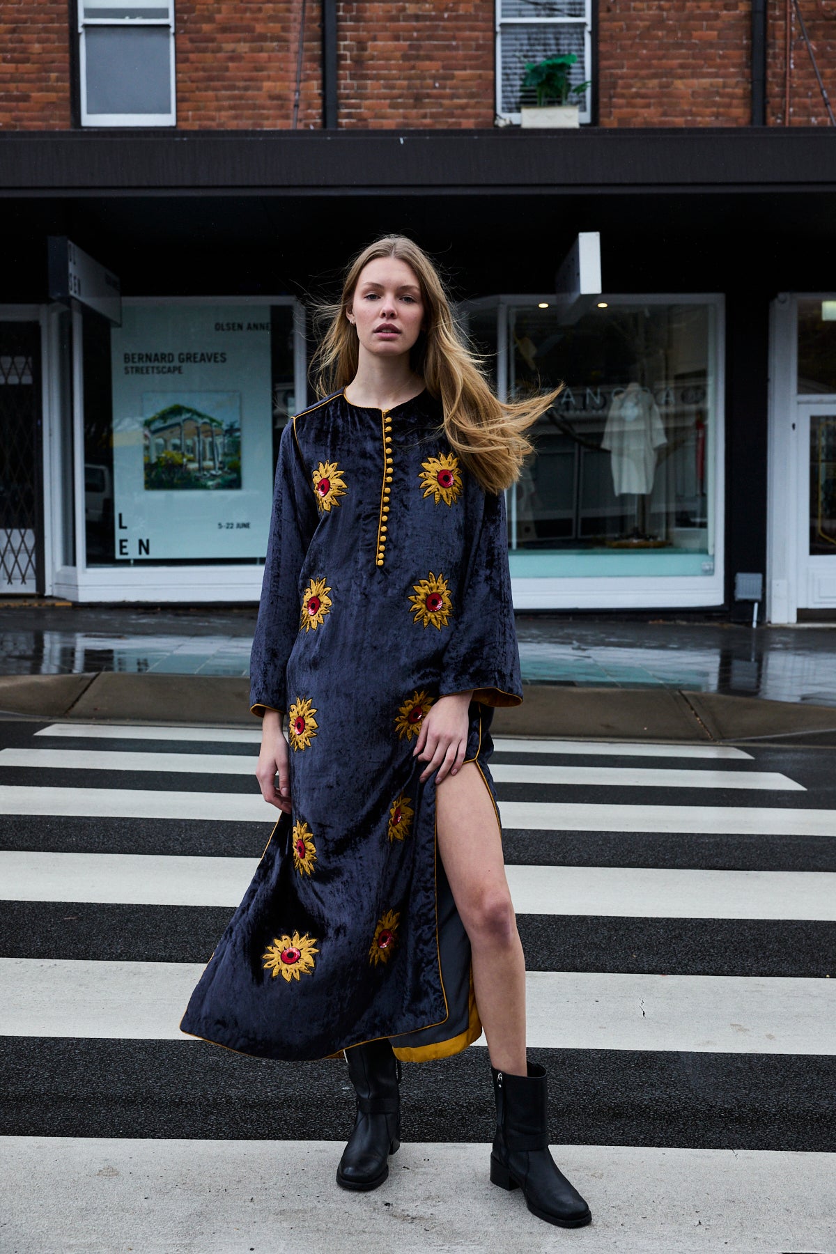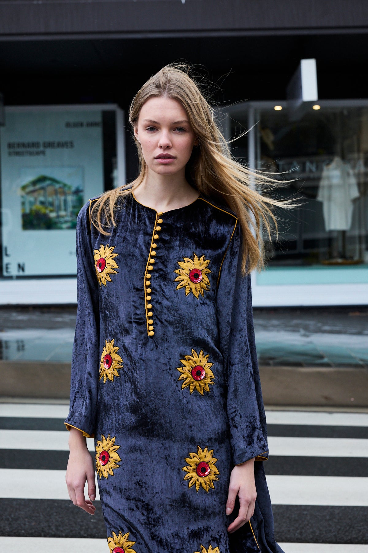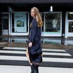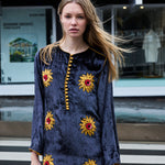 SUNFLOWER TUNIC, CHARCOAL SILK VELVET