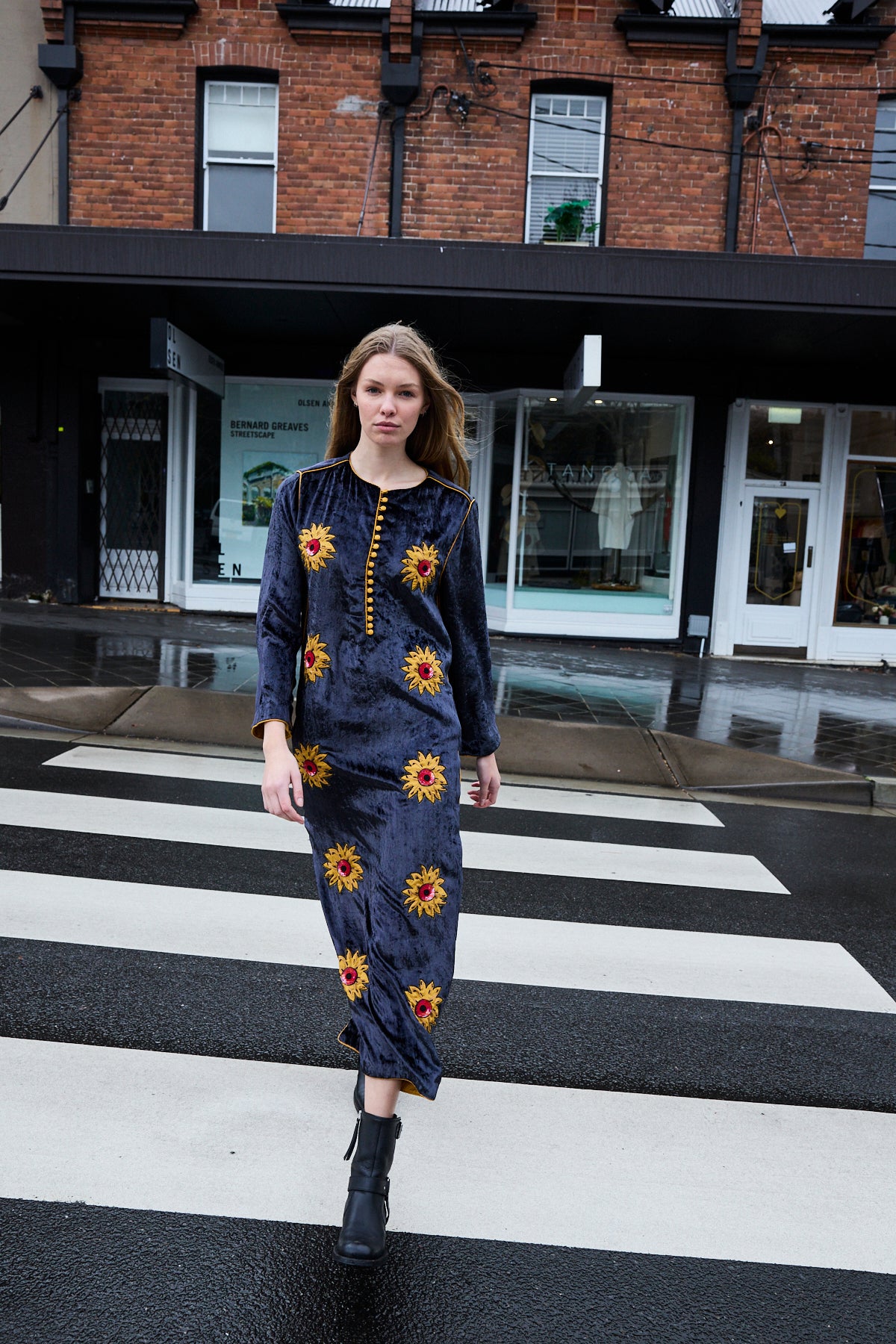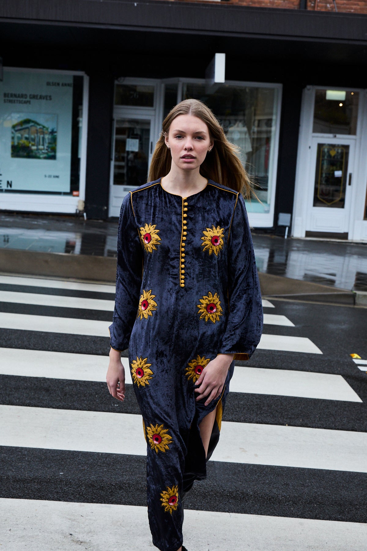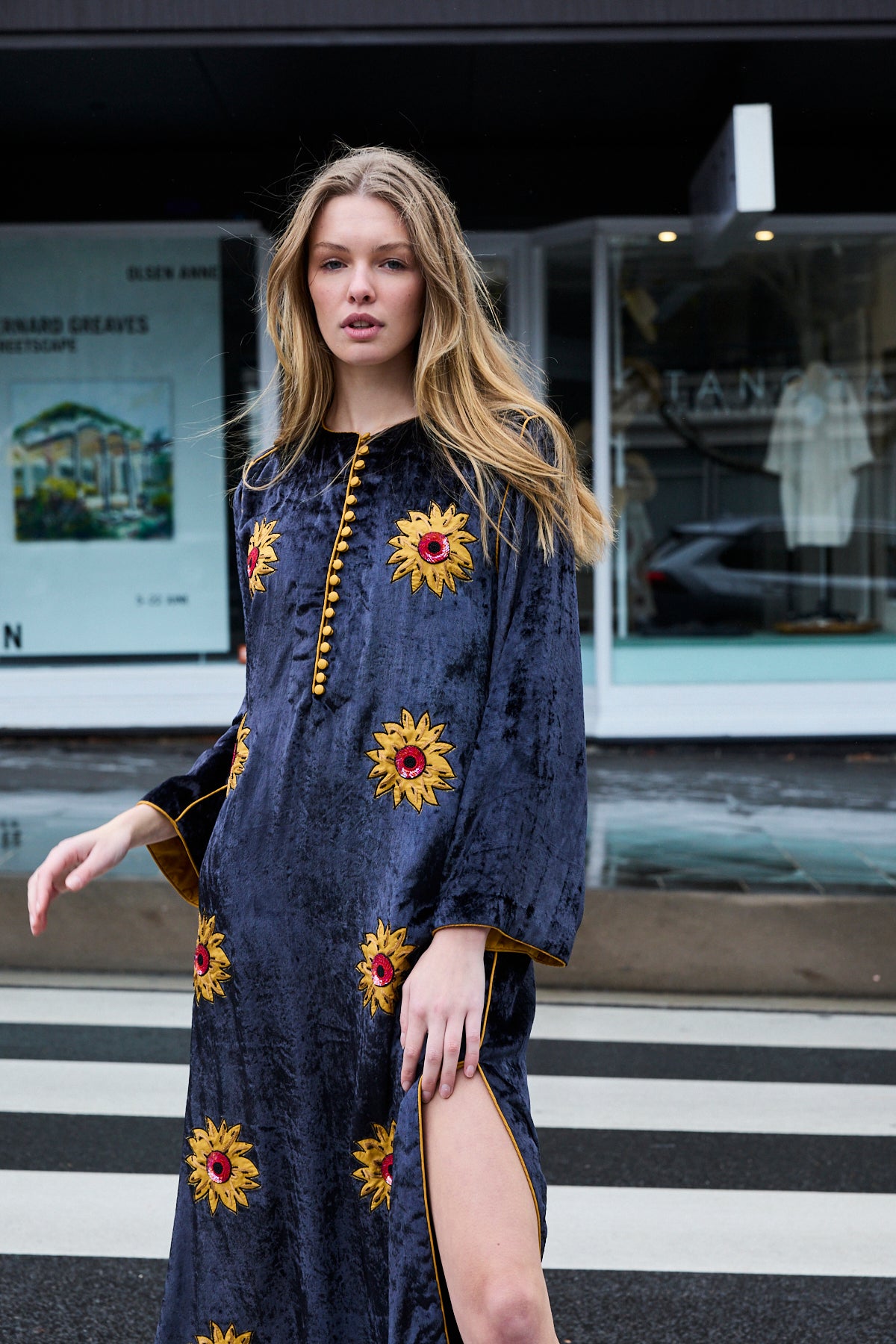 SUNFLOWER TUNIC, CHARCOAL SILK VELVET