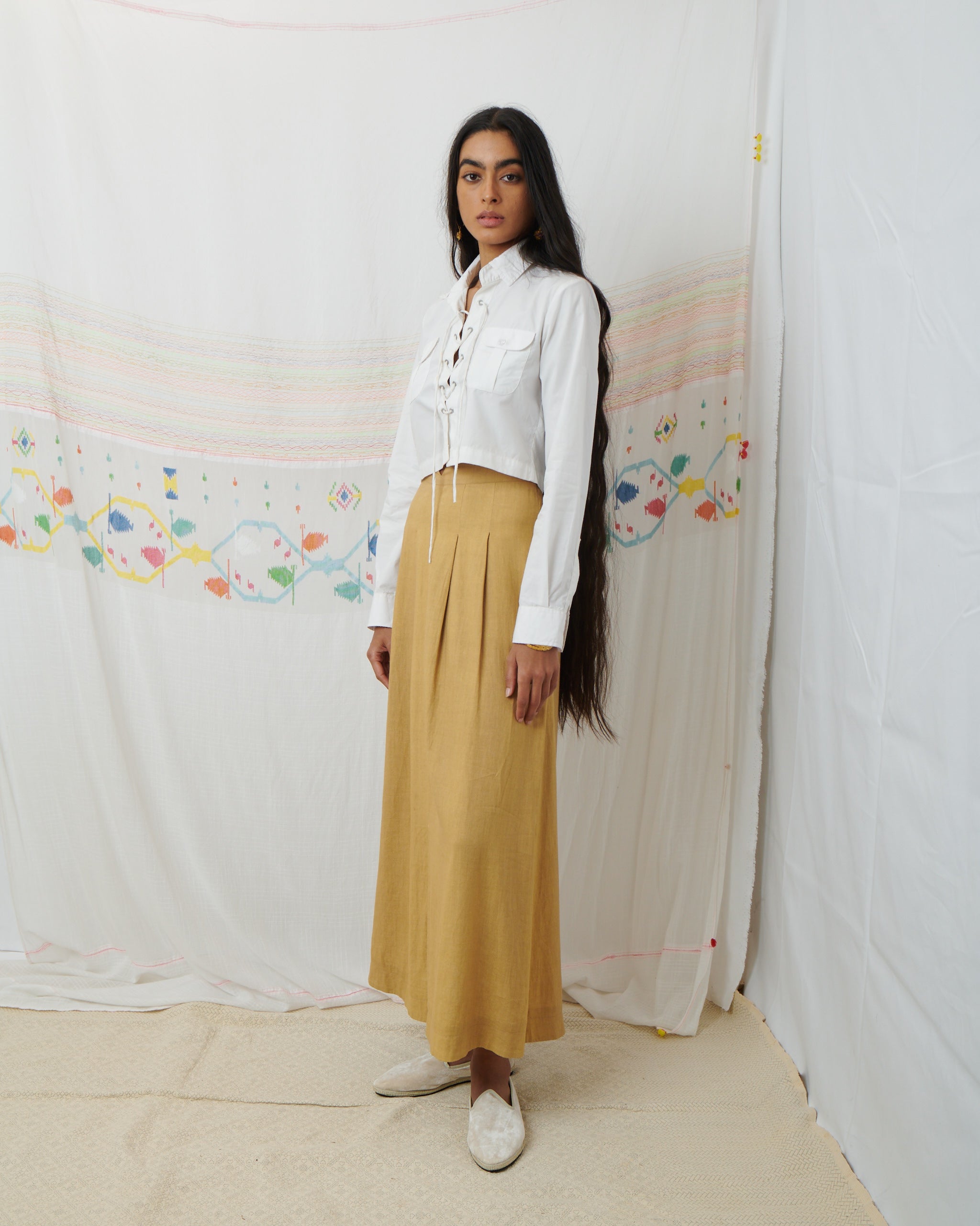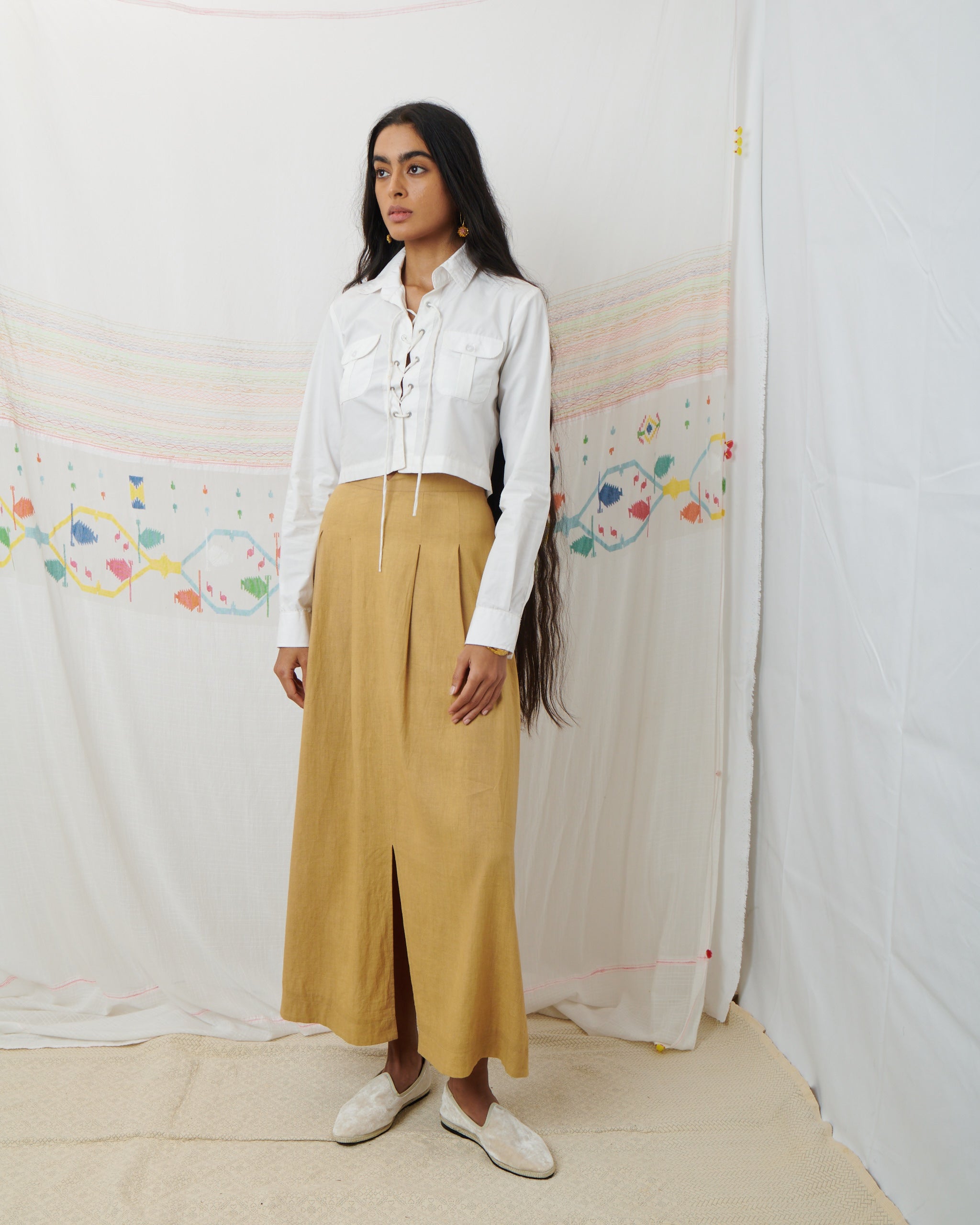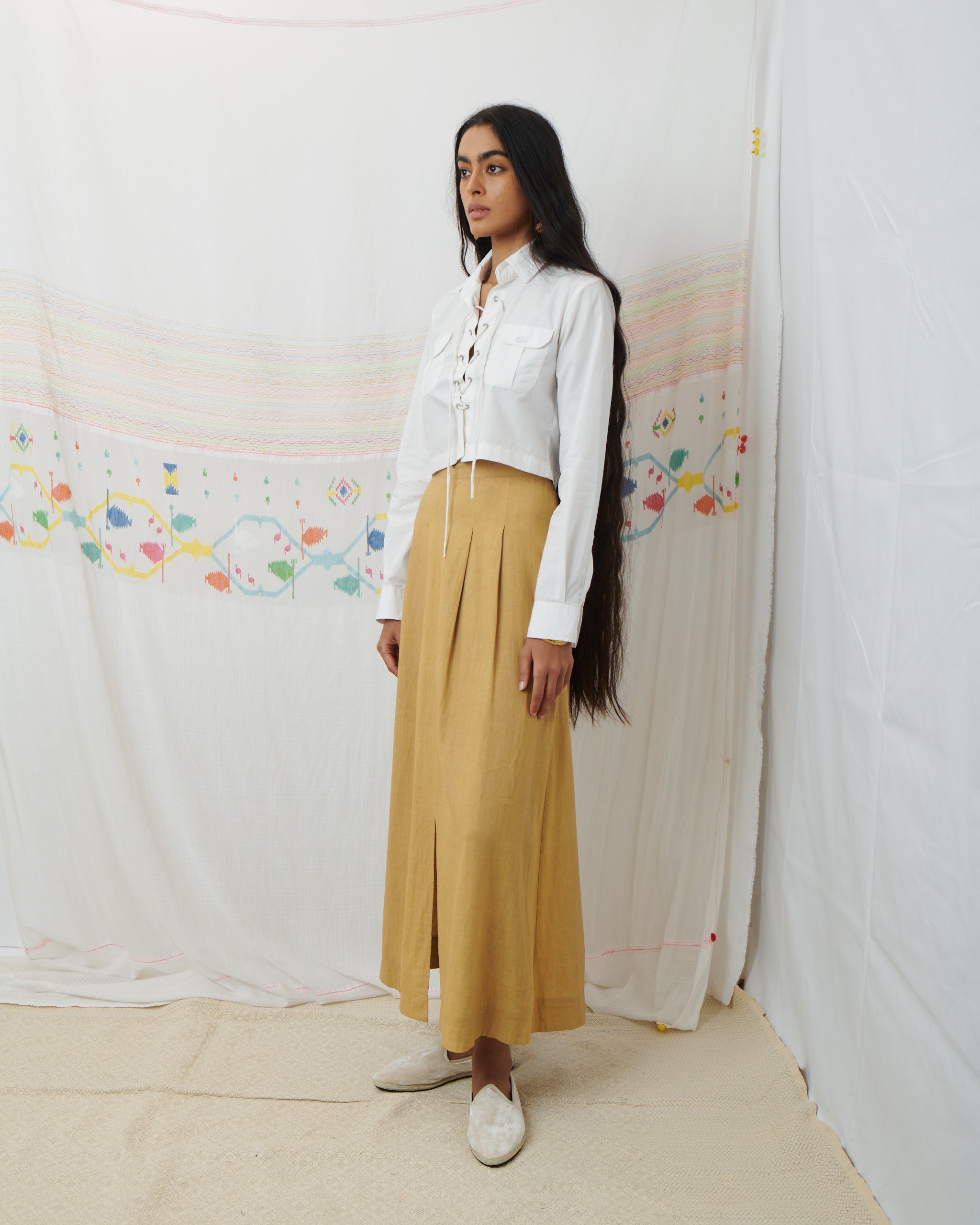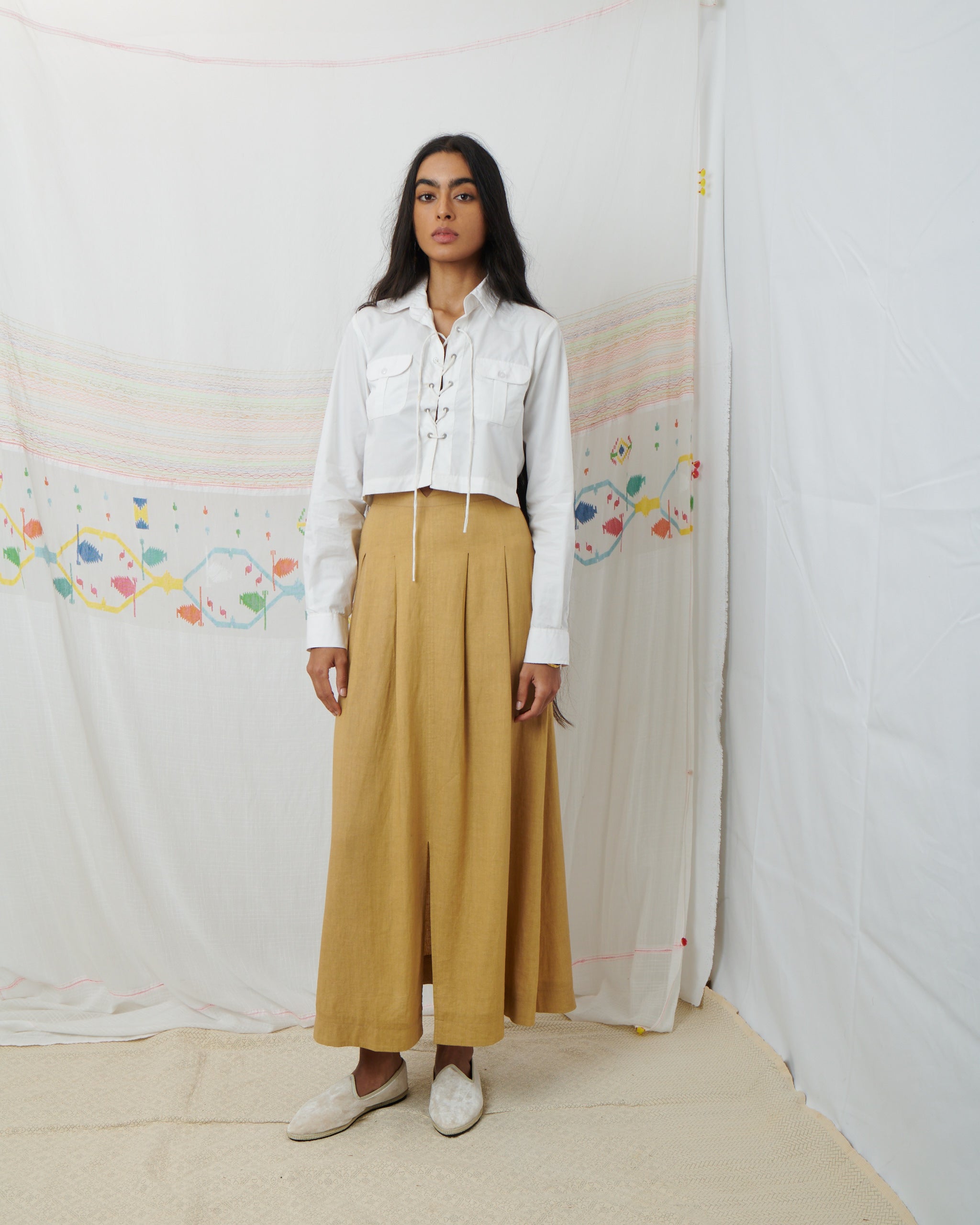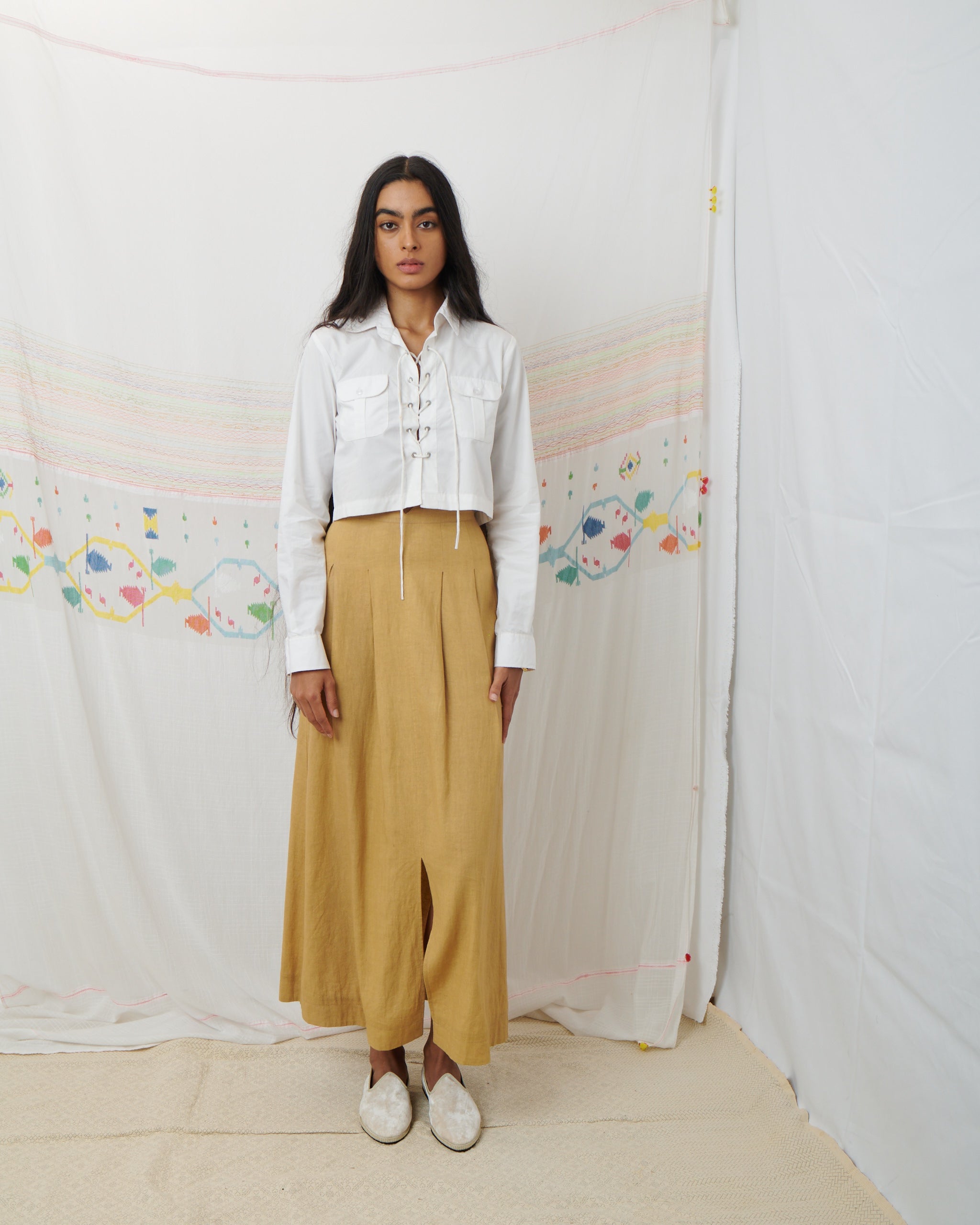 SWATANTRA CROPPED SHIRT, WHITE COTTON POPLIN