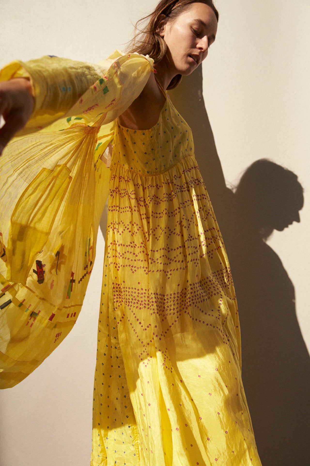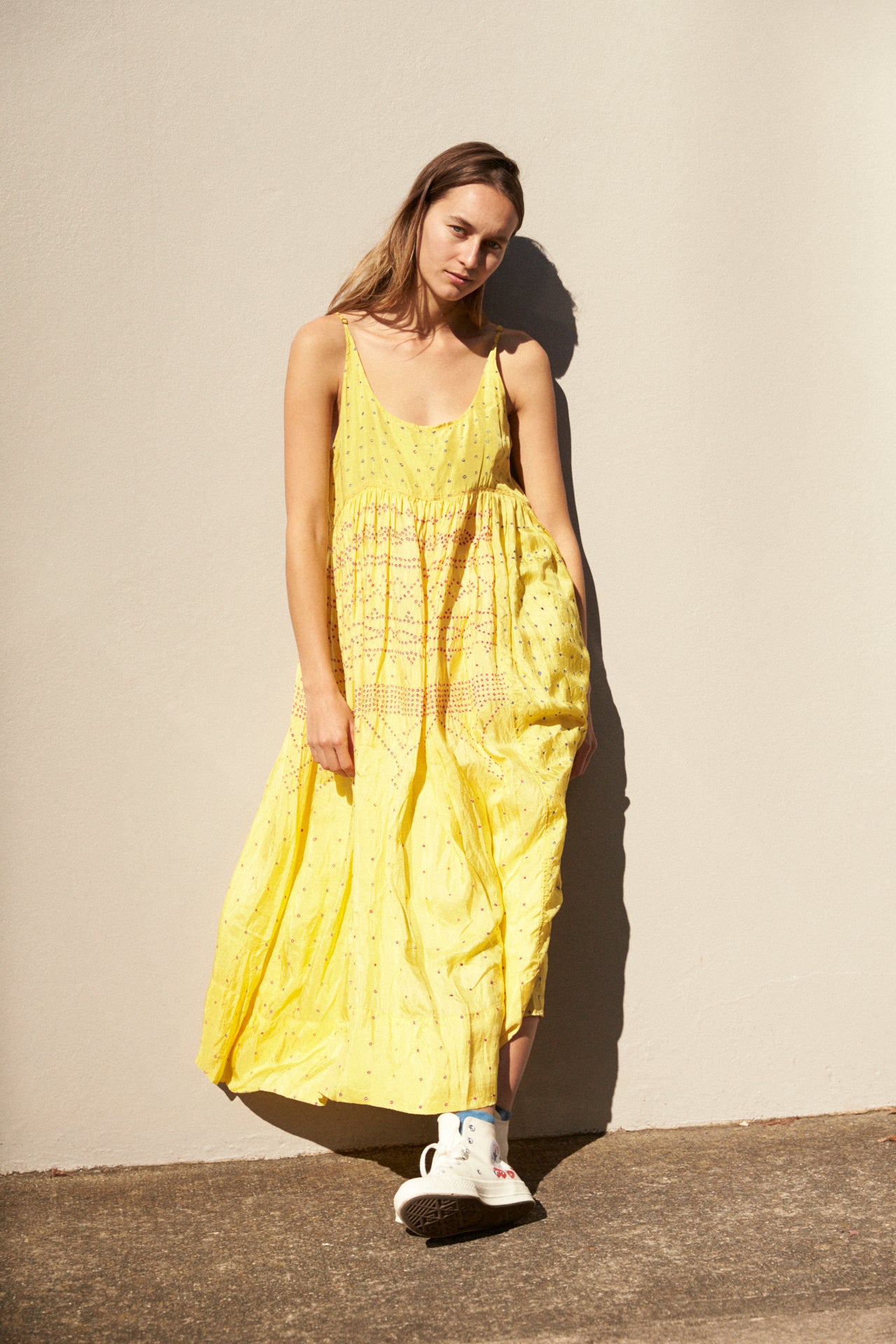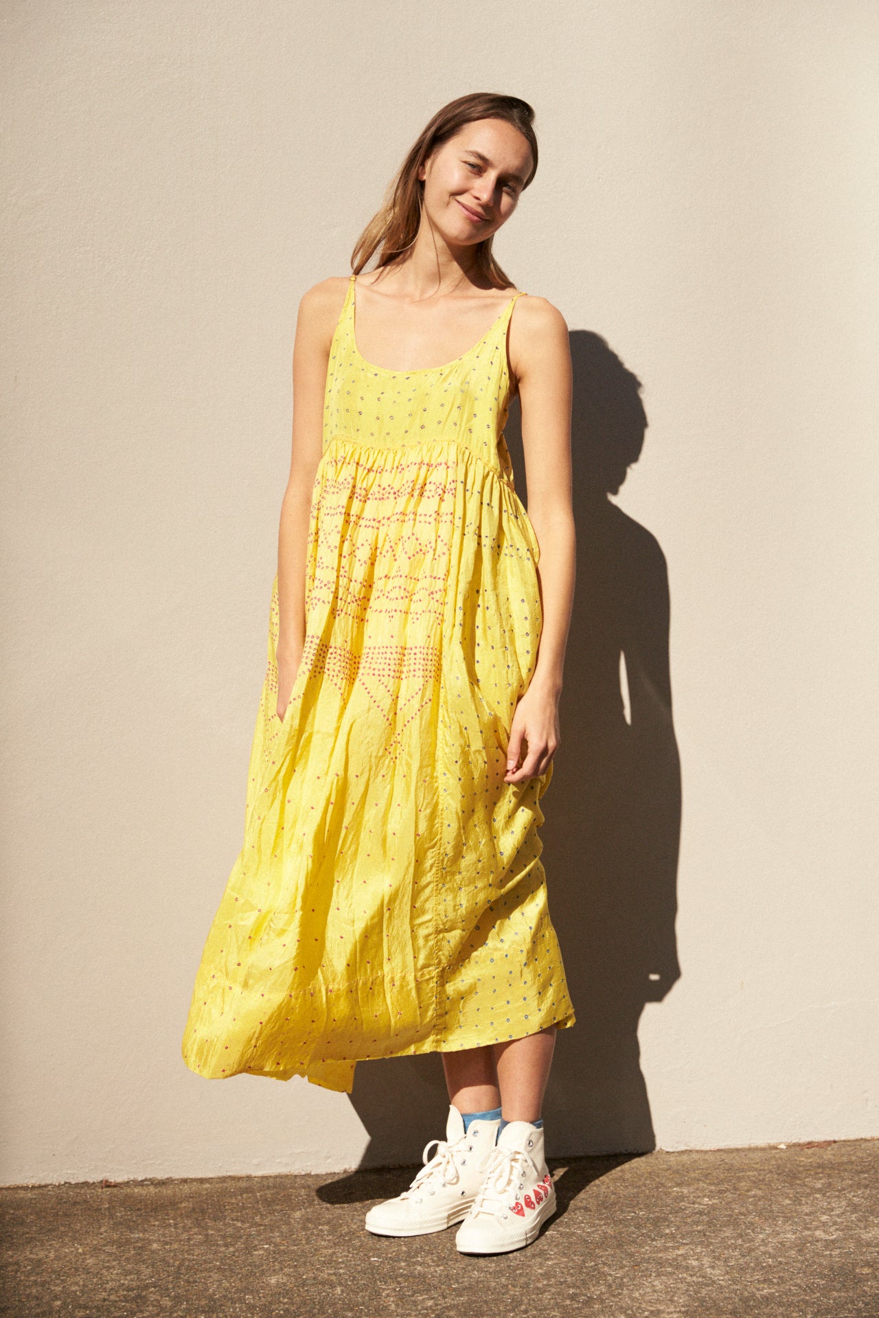 TULIP SILK SLIP DRESS, TIE&DYE YELLOW