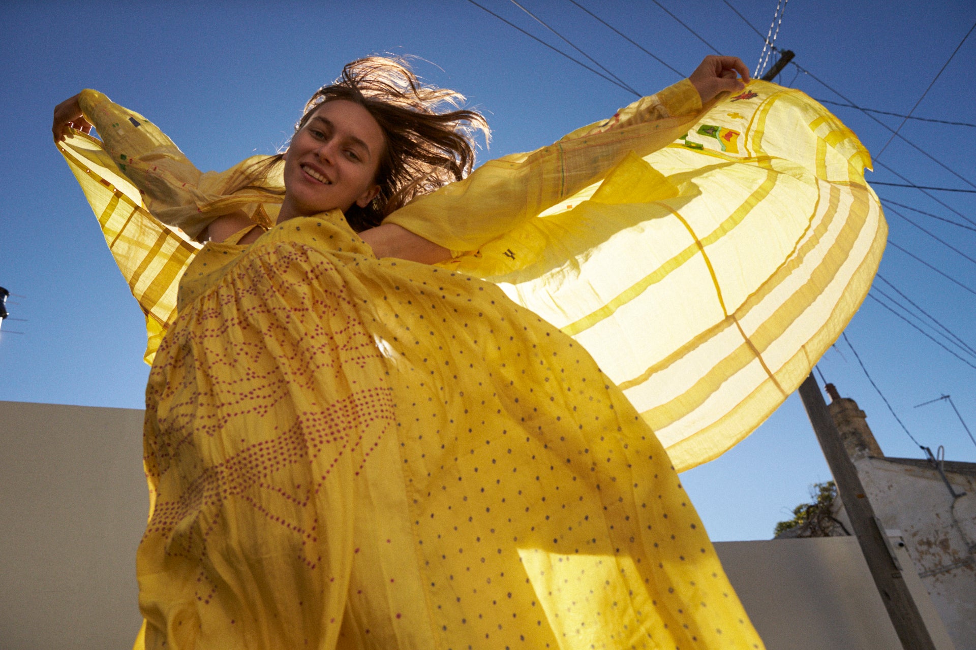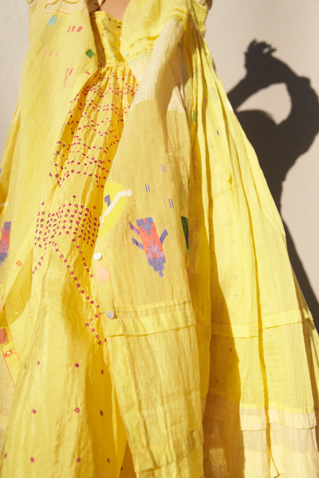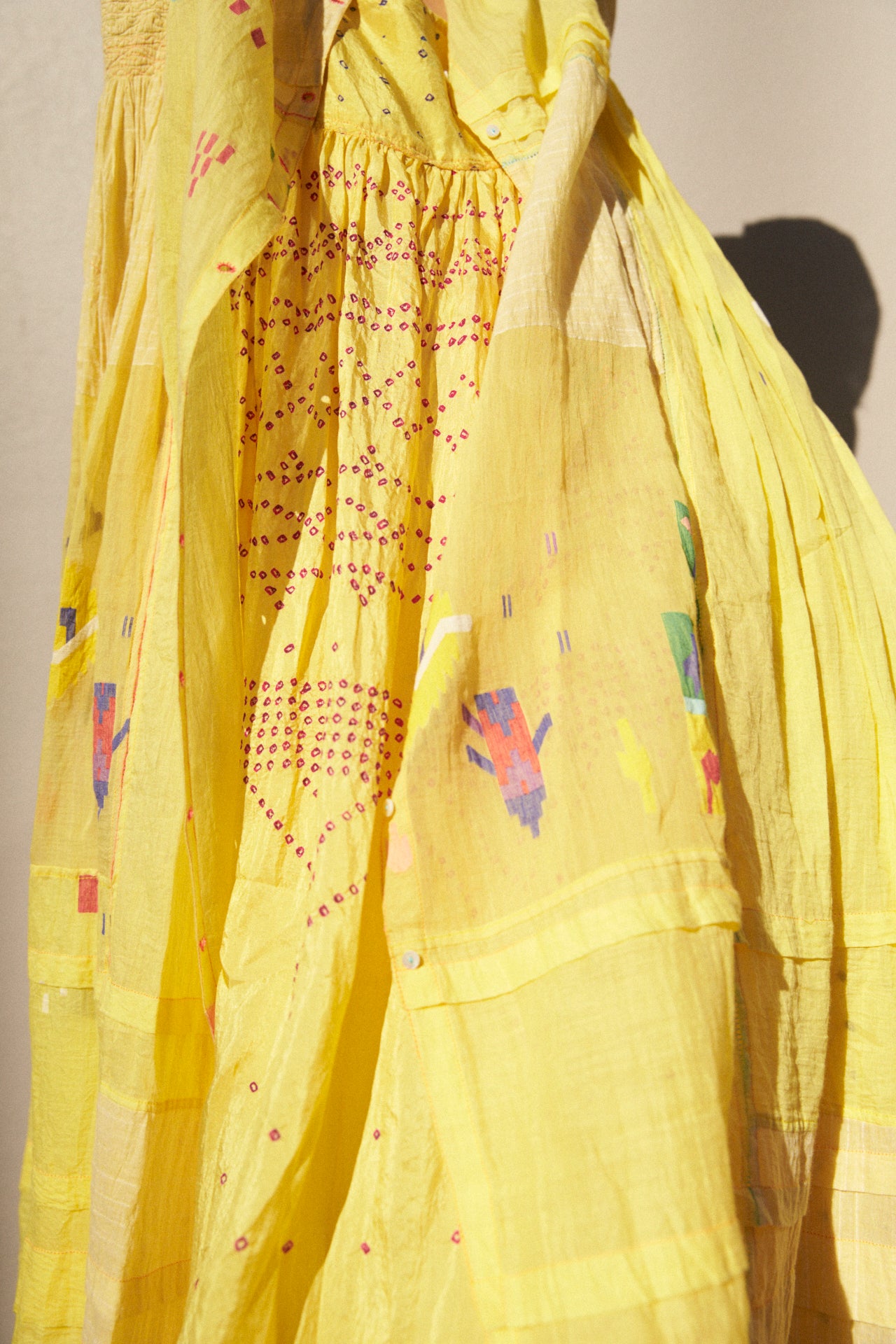 TULIP SILK SLIP DRESS, TIE&DYE YELLOW