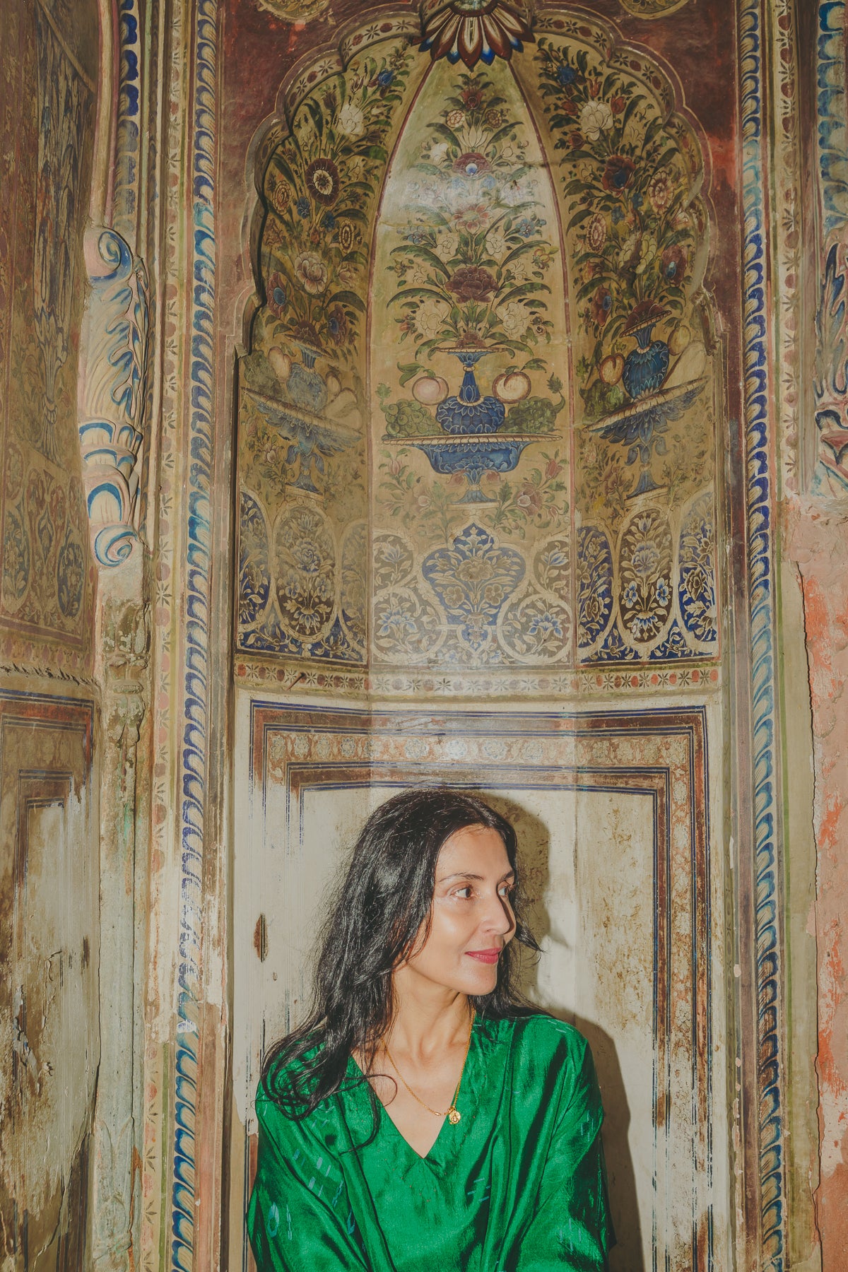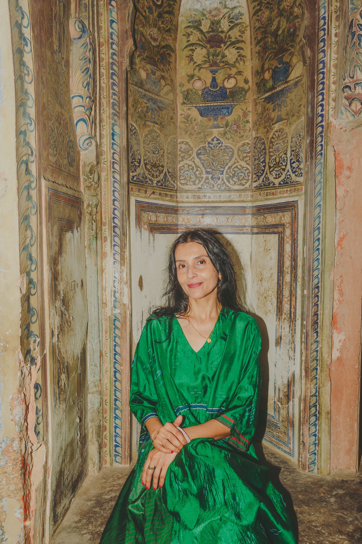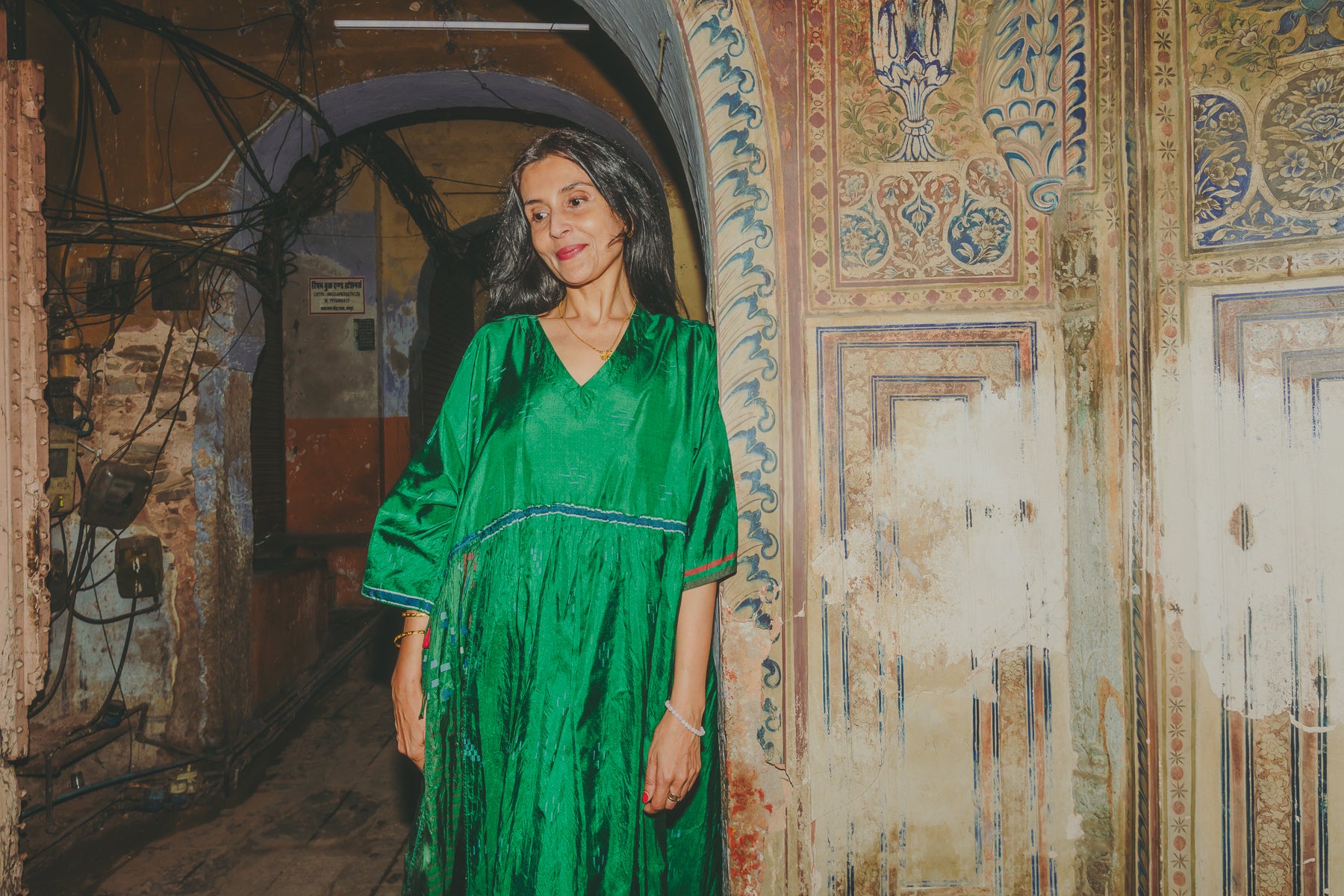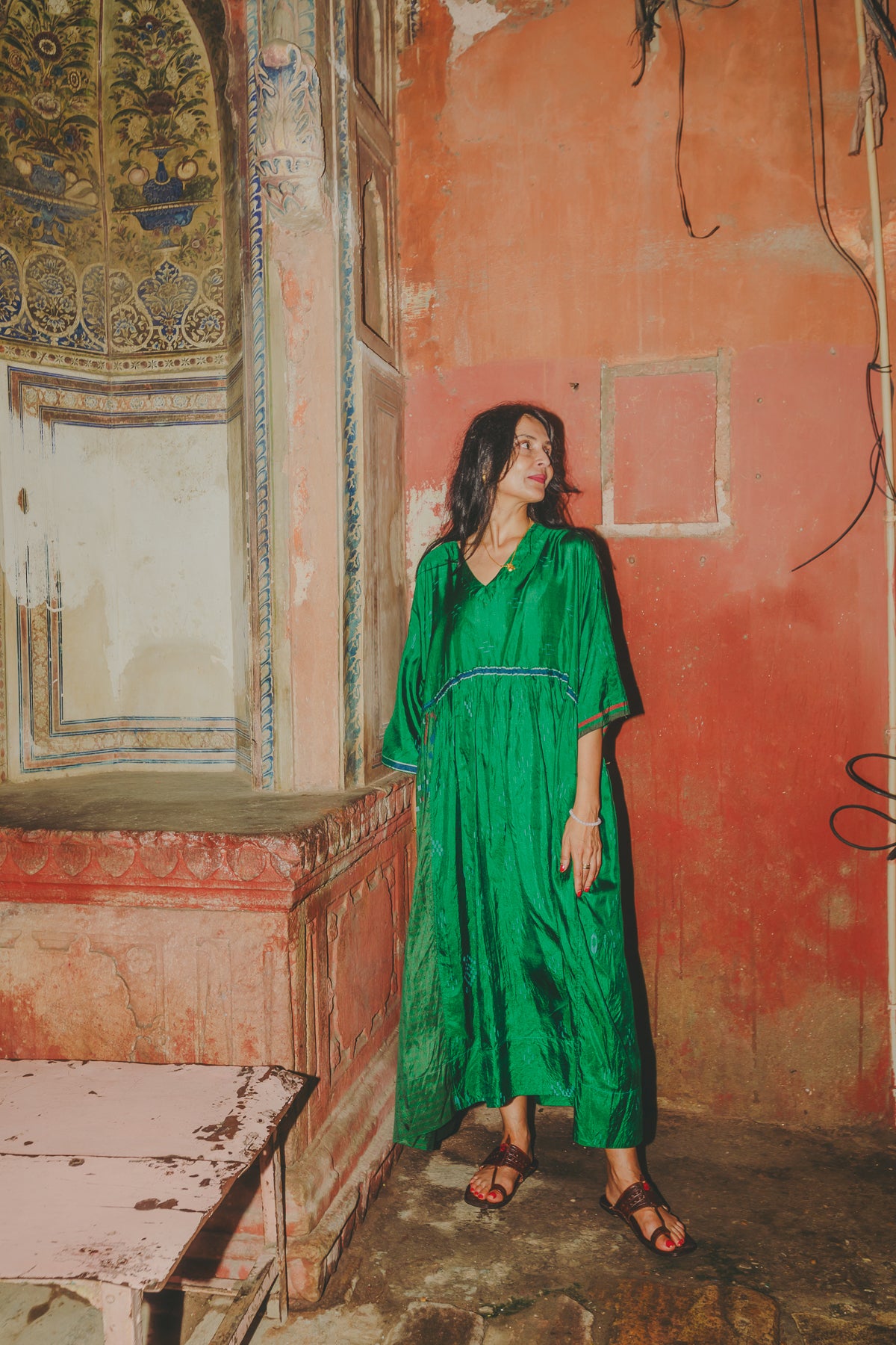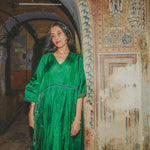 VERA KAFTAN DRESS, GREEN SILK