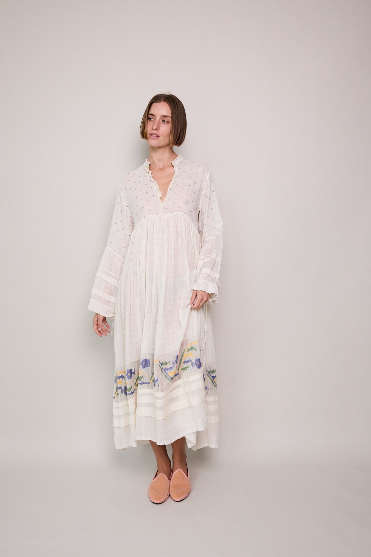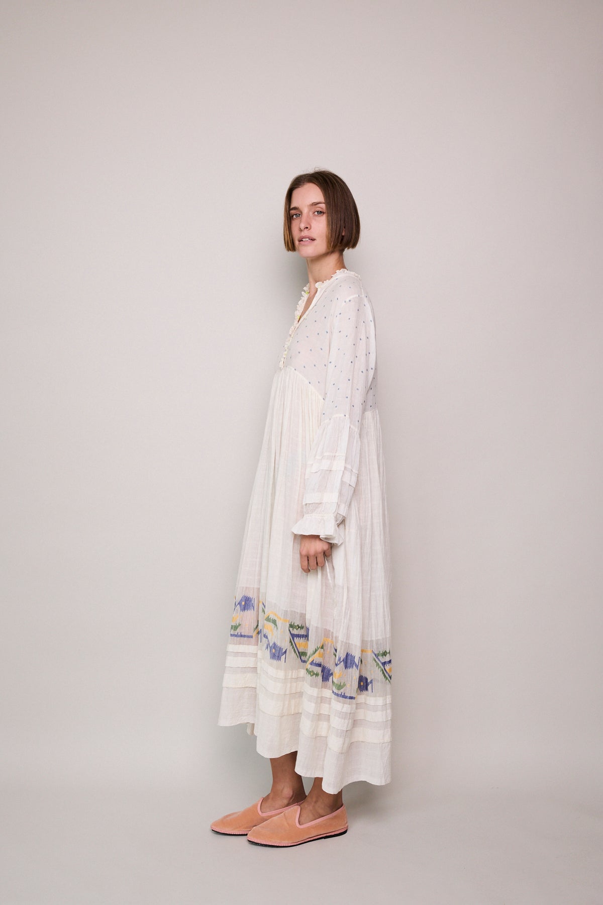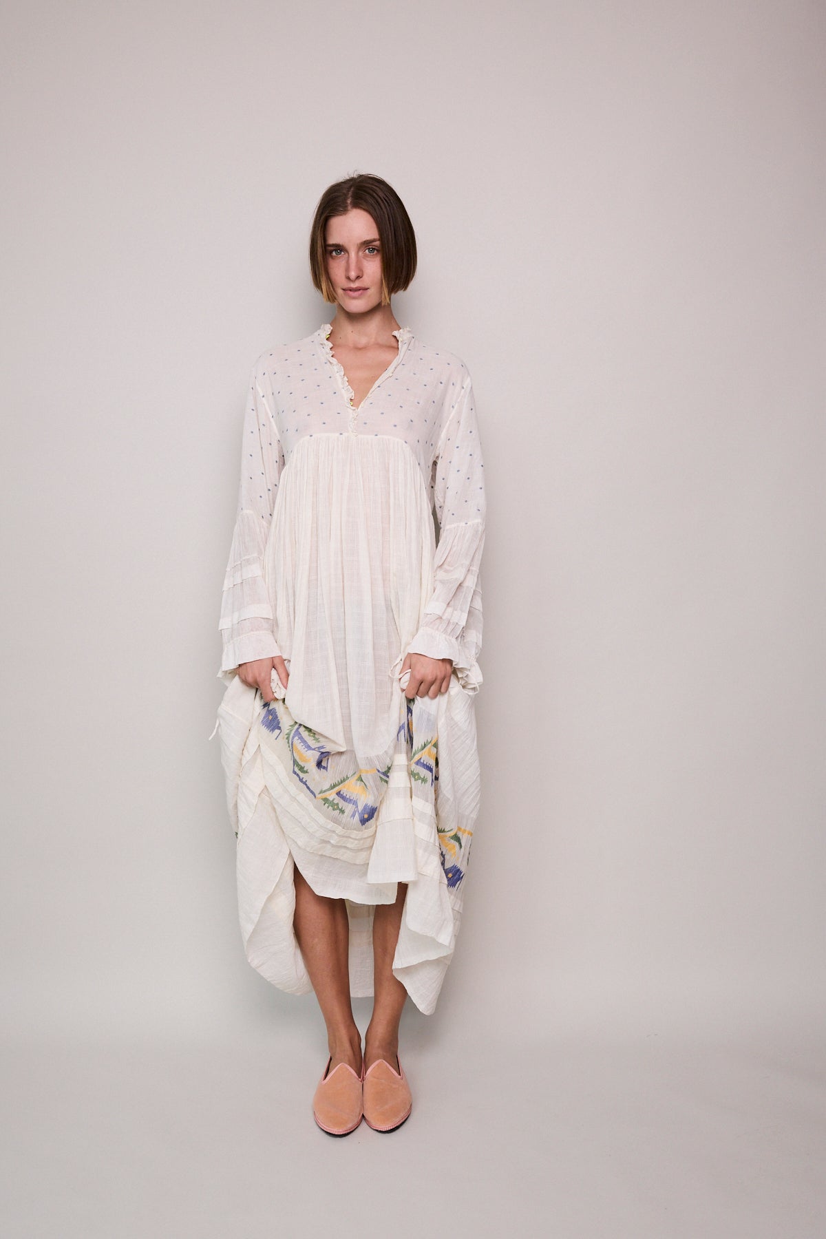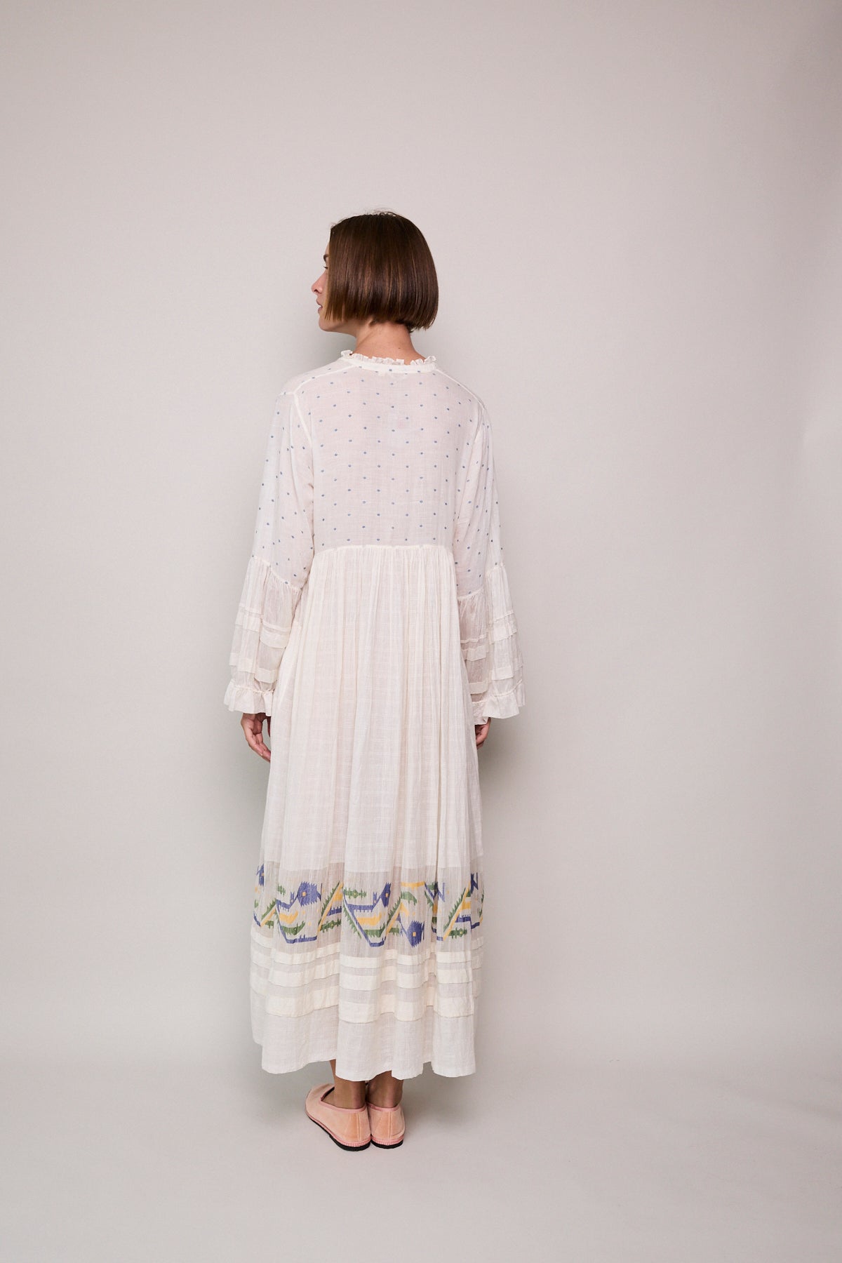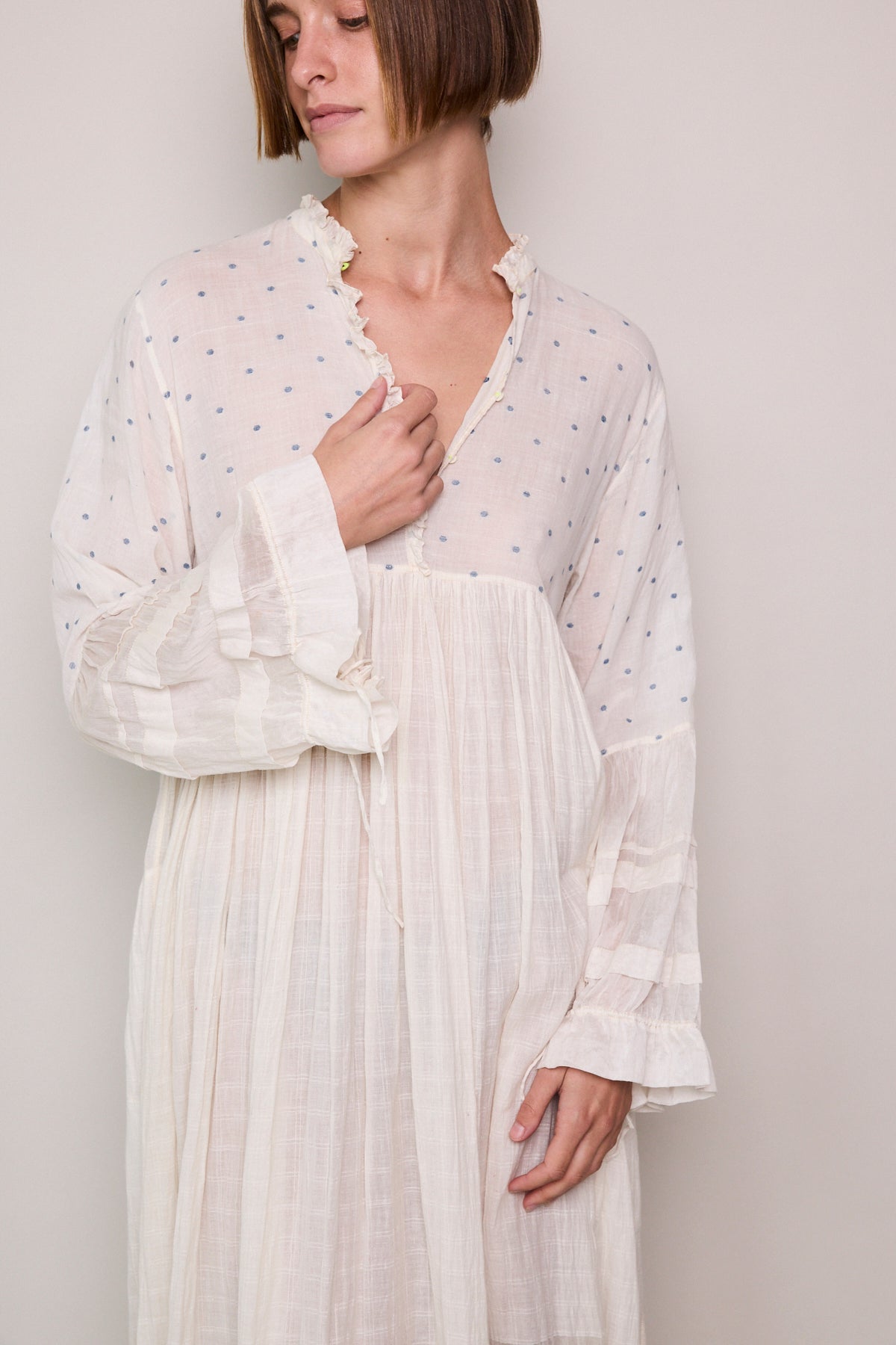 VICTORIA POLKA DRESS, IVORY COTTON SILK