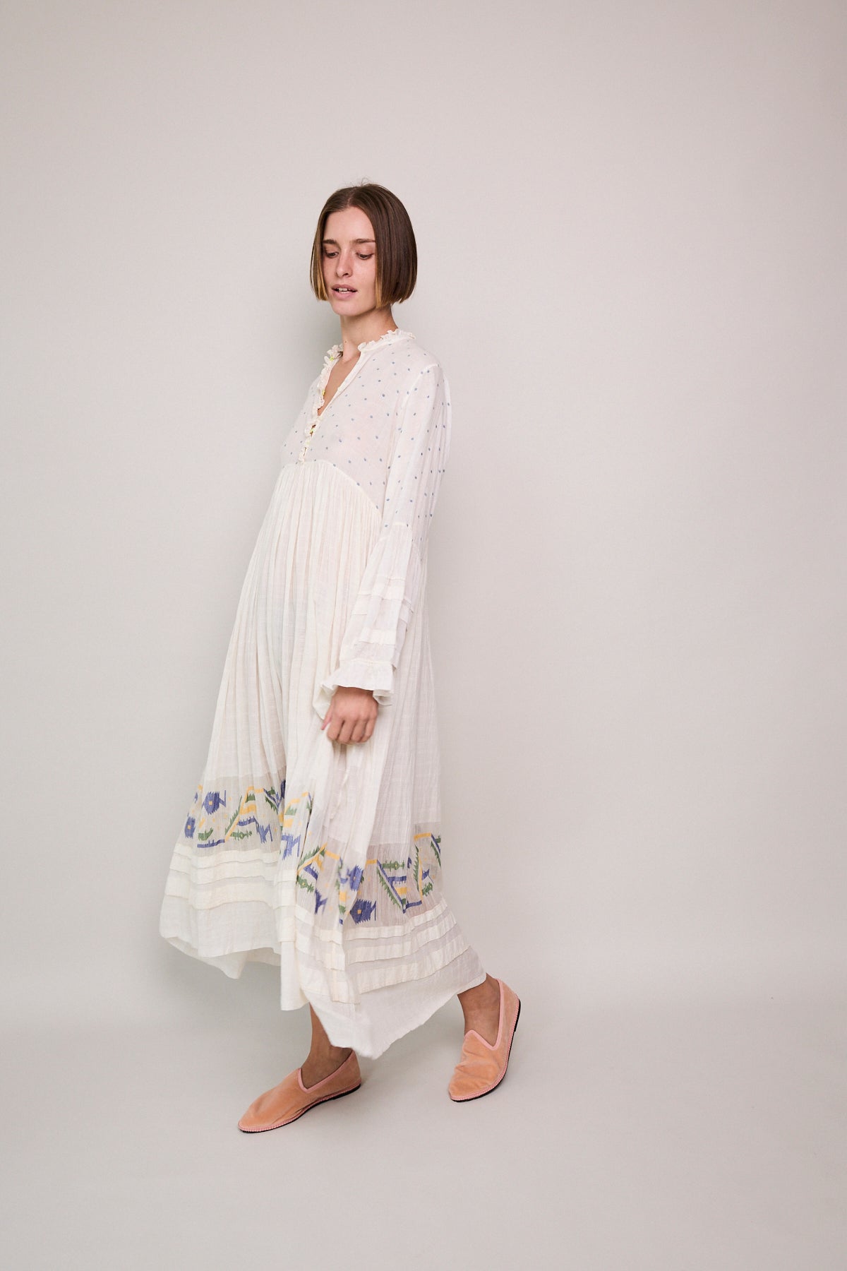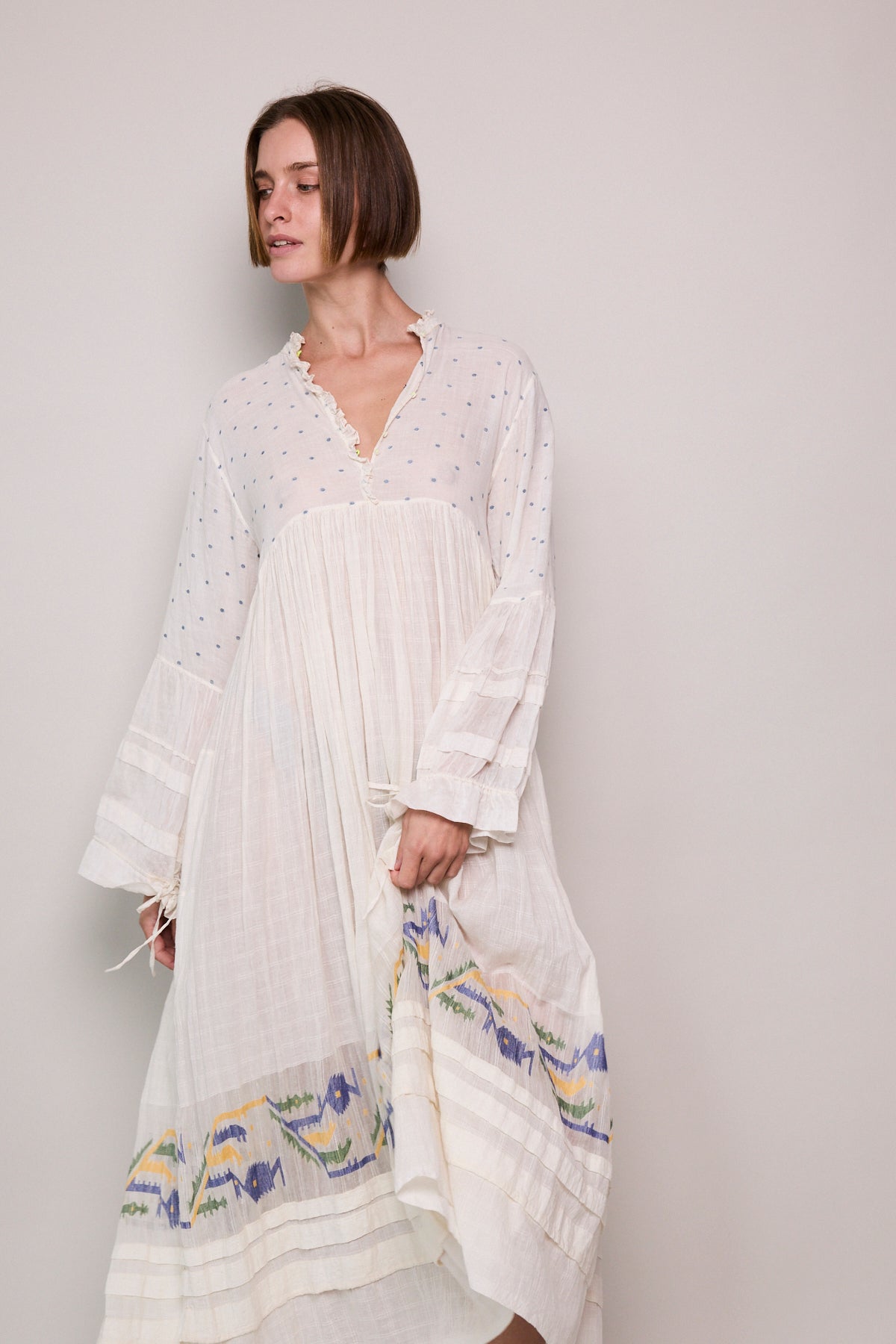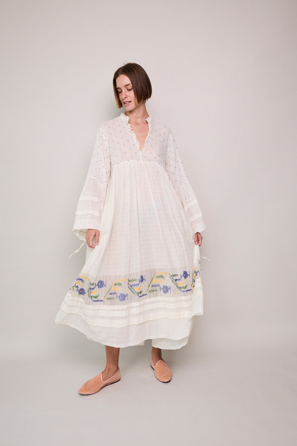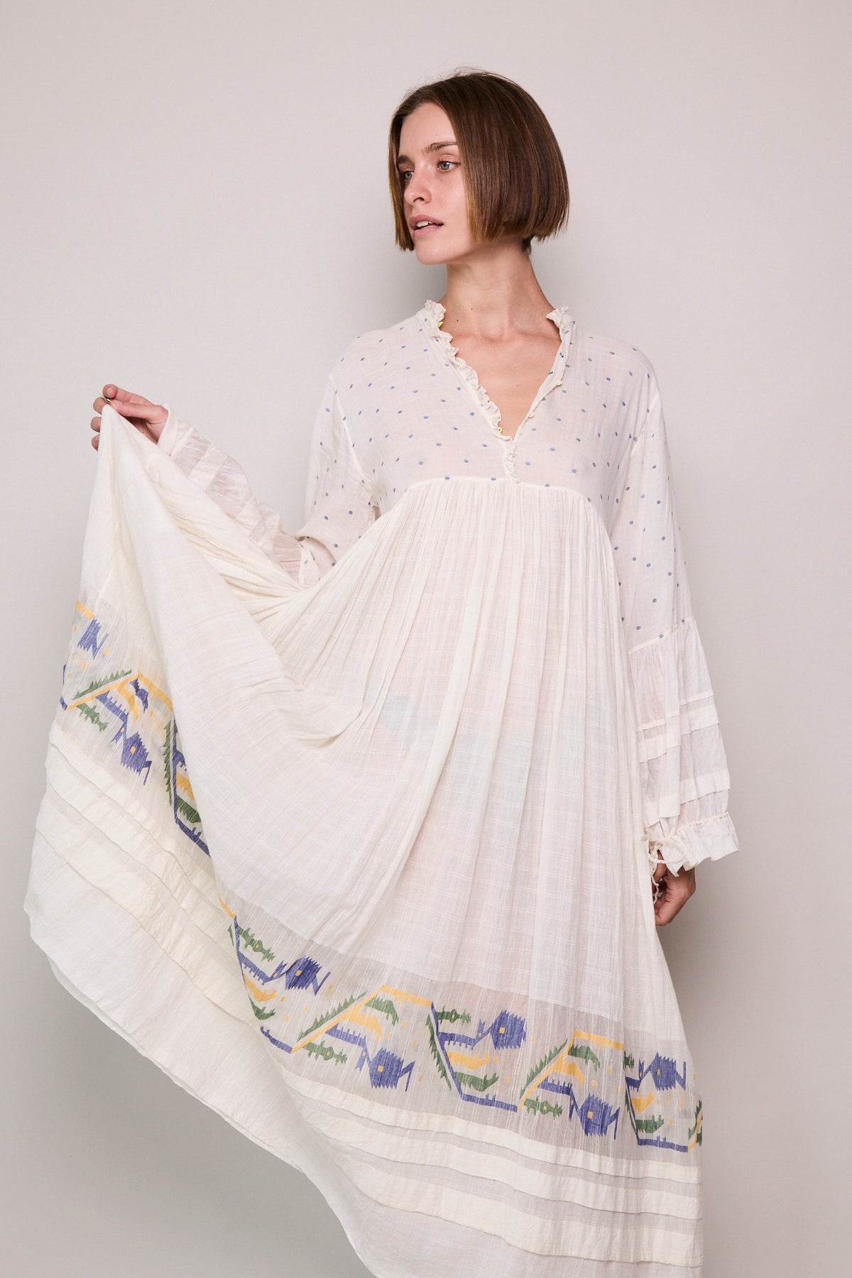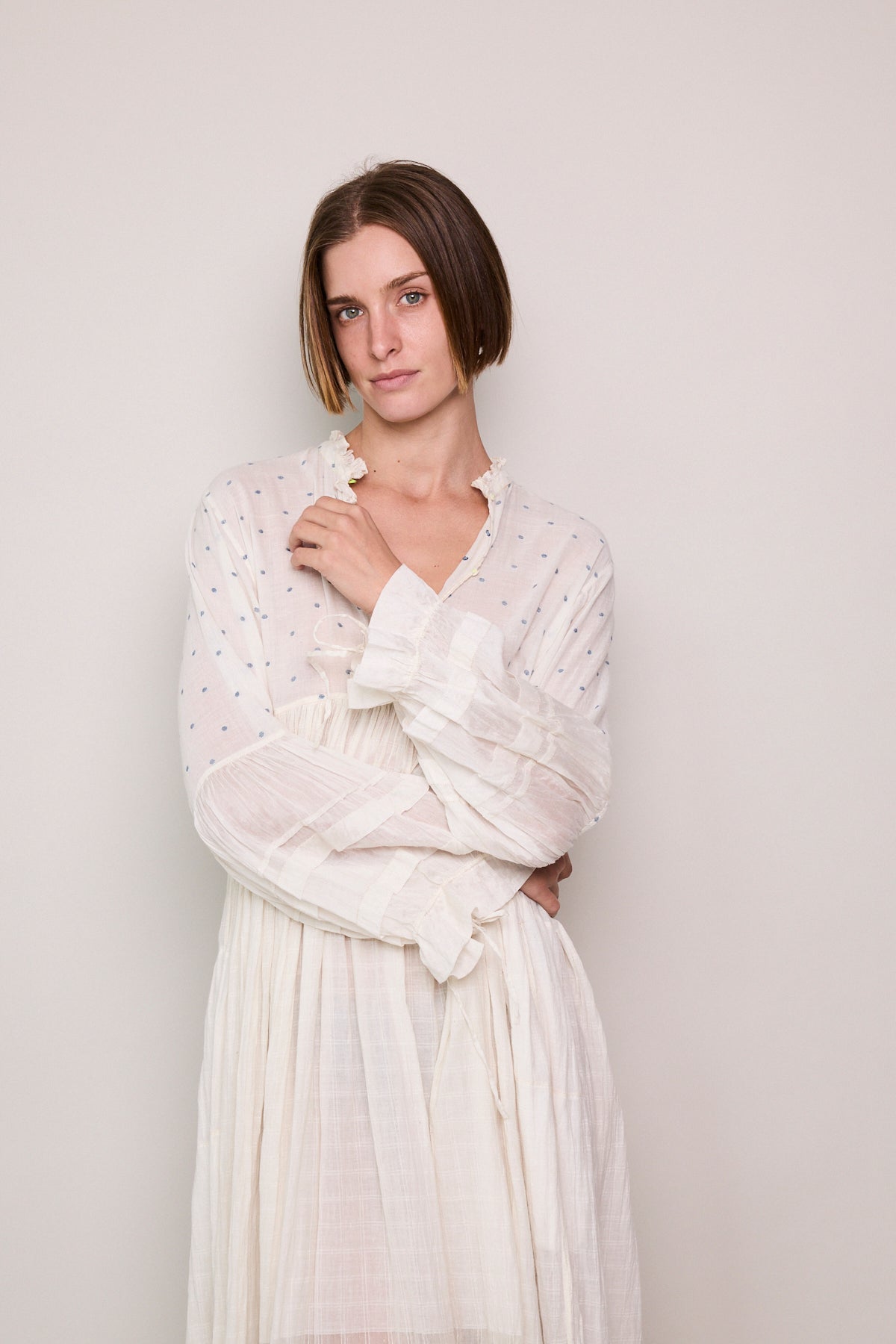 VICTORIA POLKA DRESS, IVORY COTTON SILK