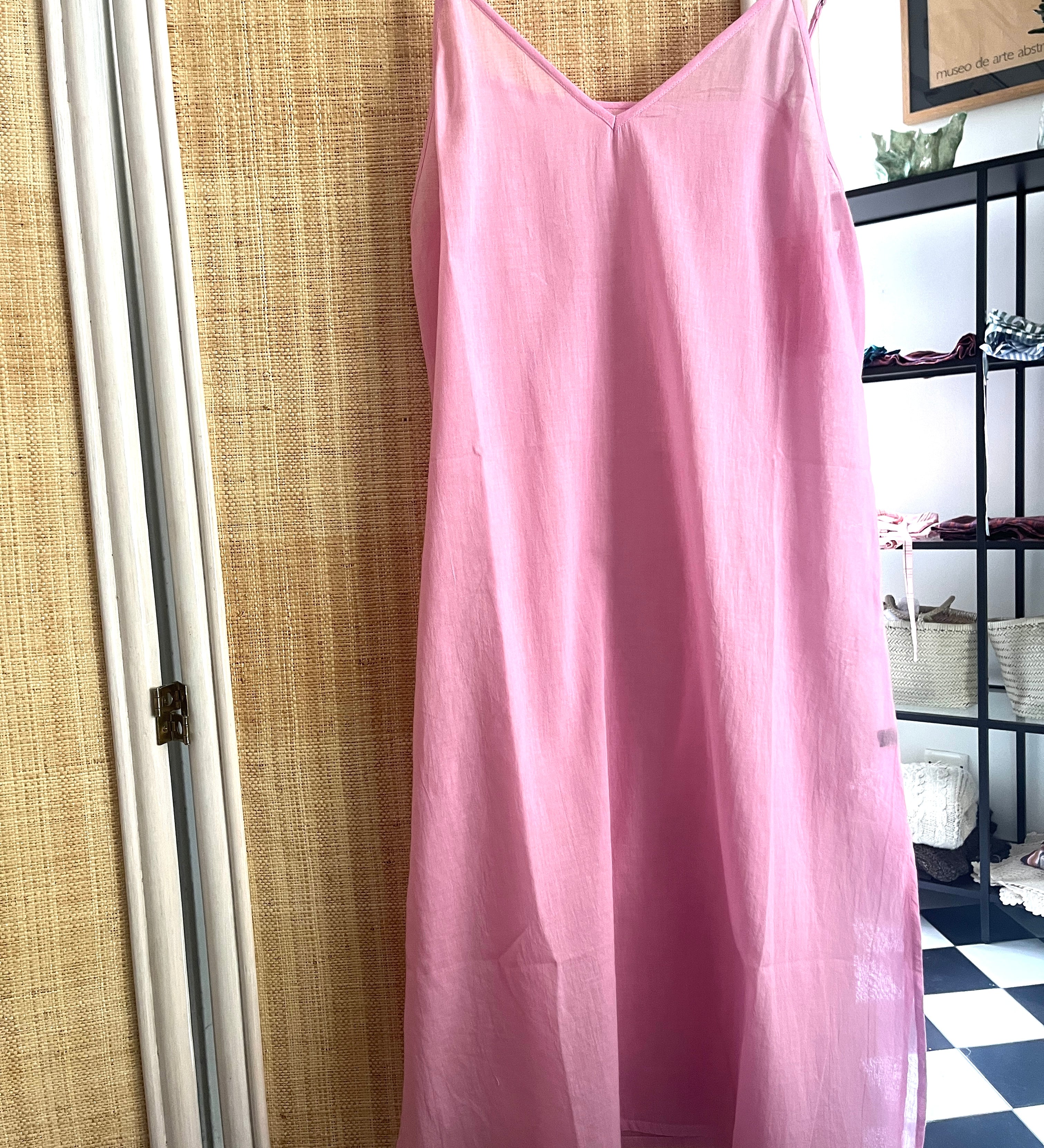 OYSTER SLIP DRESS, GREEN // PURPLE COTTON