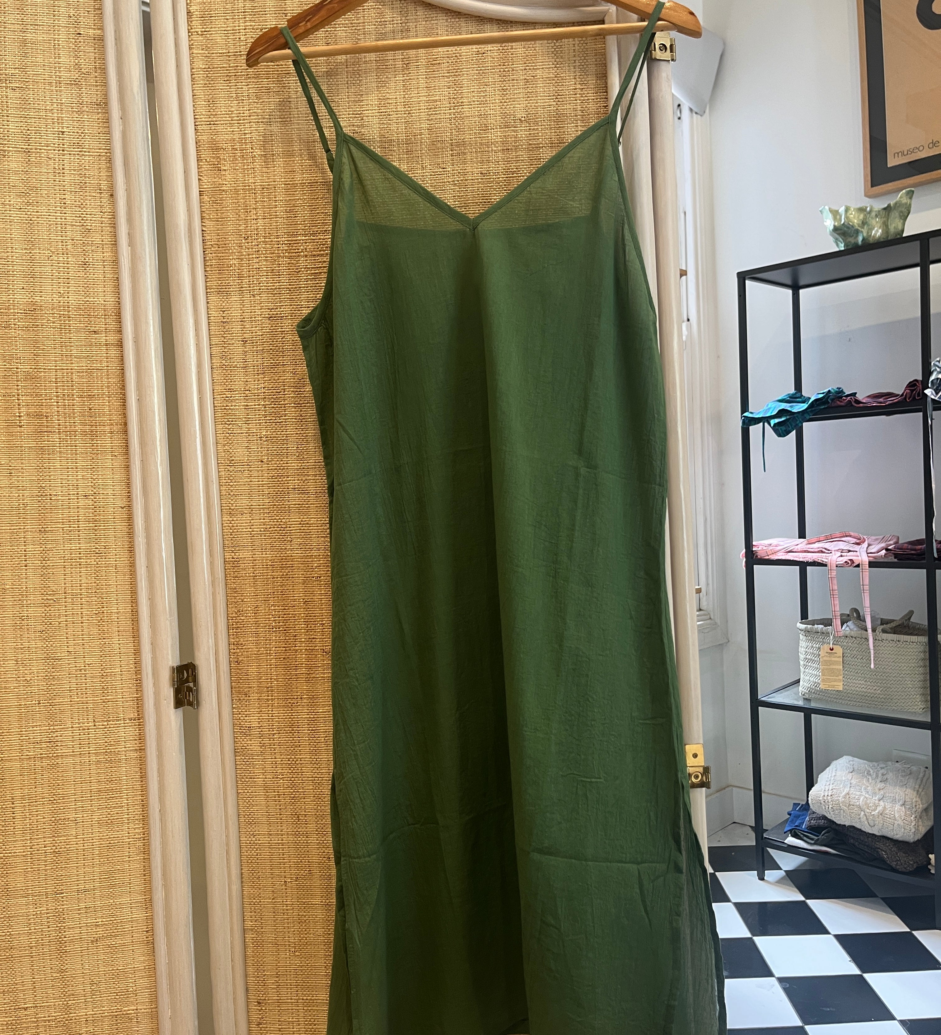 ORCHID SLIP, OLIVE GREEN COTTON VOILE
