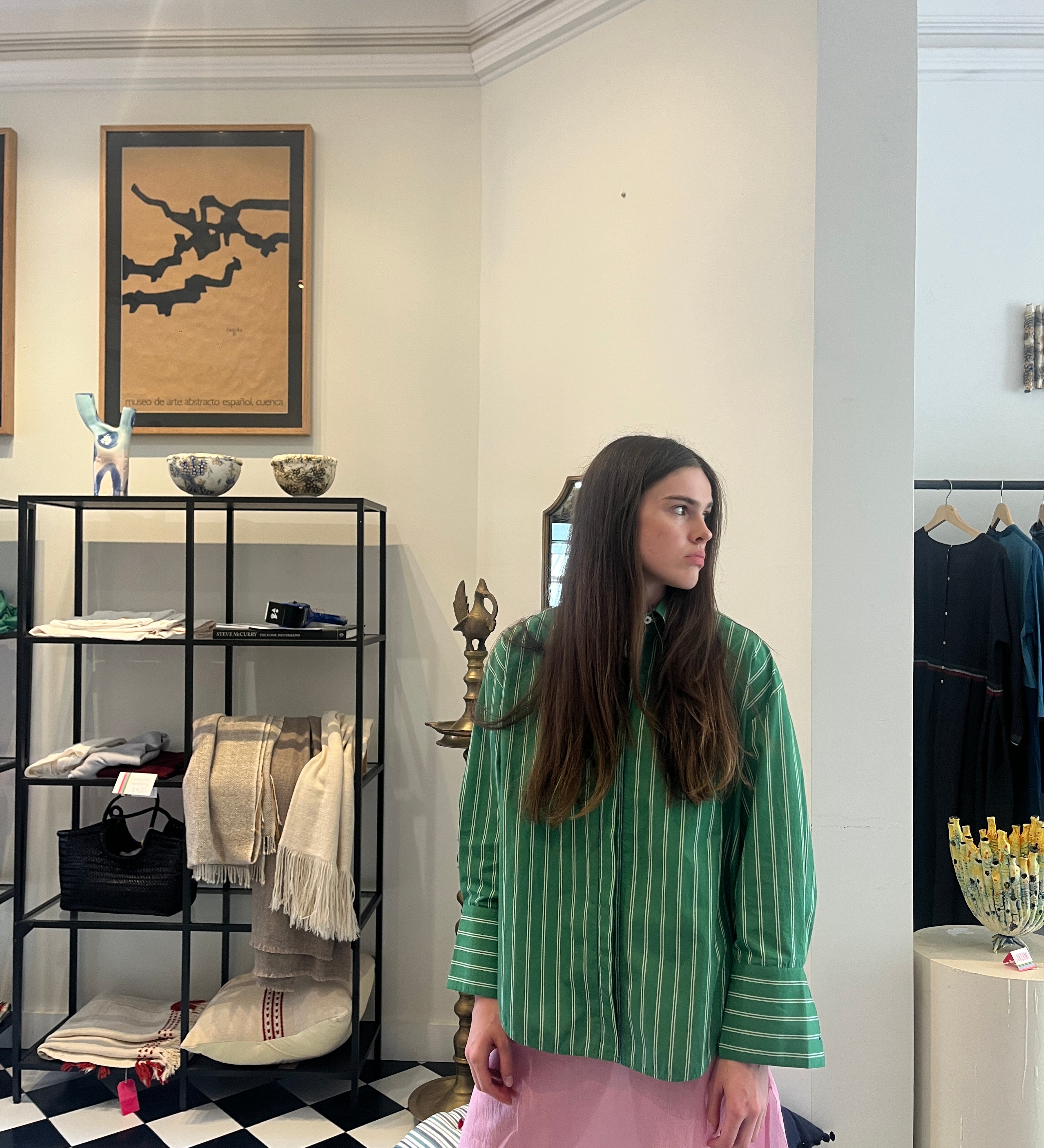 SAGE SHIRT, GREEN // WHITE STRIPE COTTON