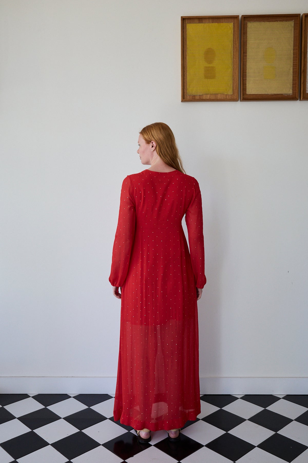 TEMPEL DRESS, RED MUKEISH EMBROIDERY