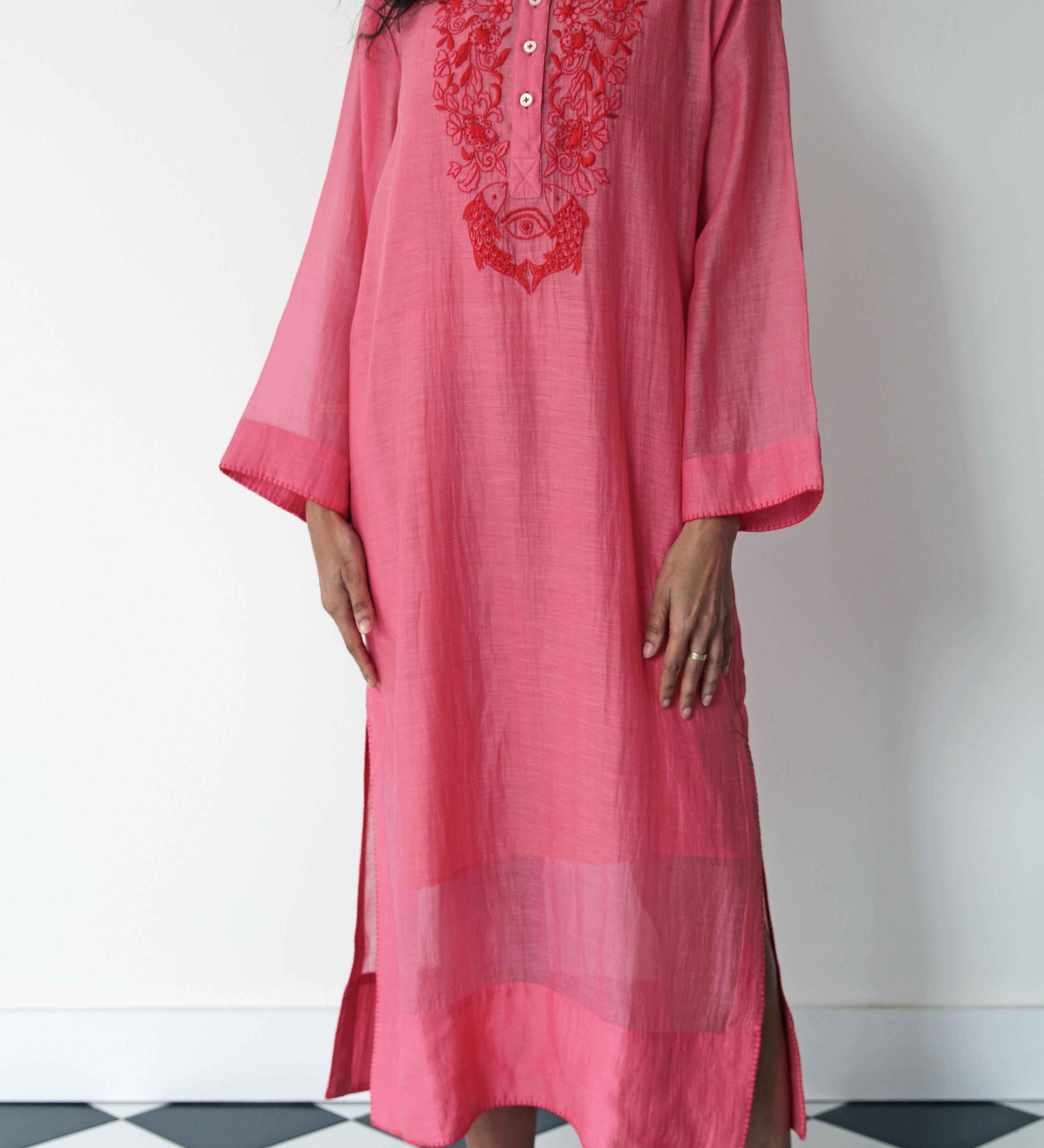 LUCKNOW SHEER EMBROIDERY DRESS, PINK SILK