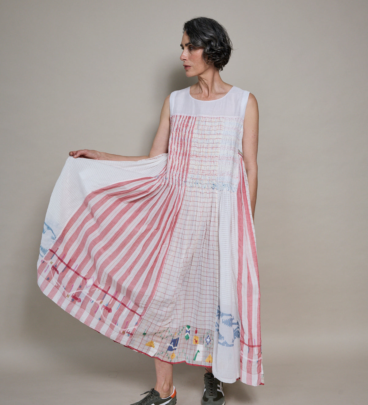 KIRAN DRESS, IVORY / NEON JAMDANI