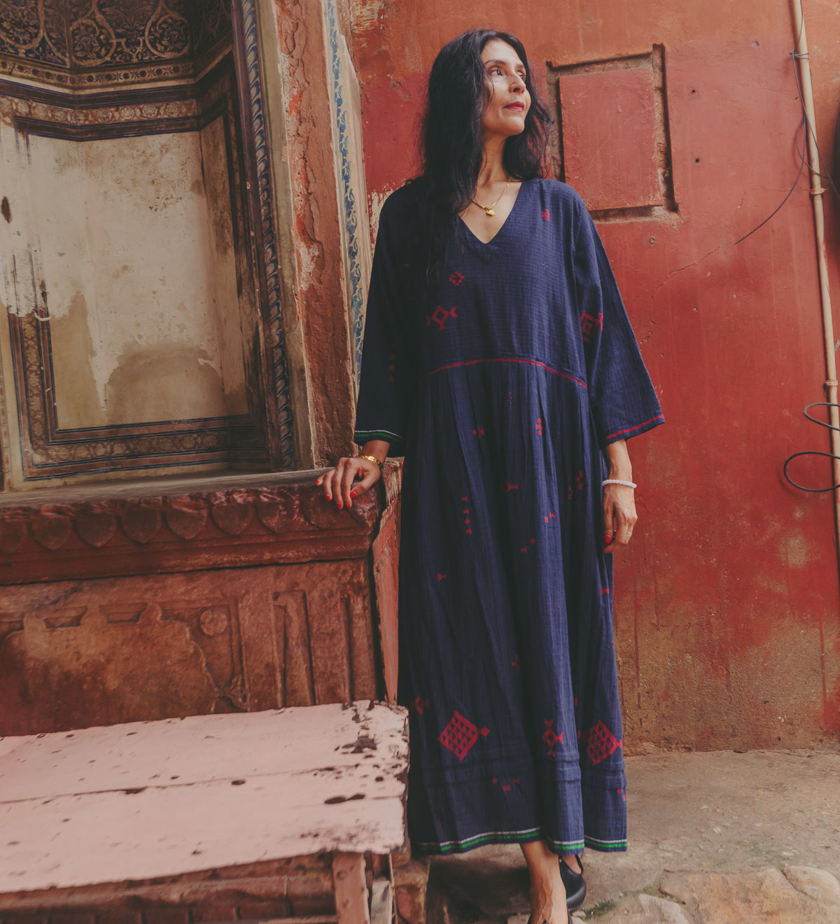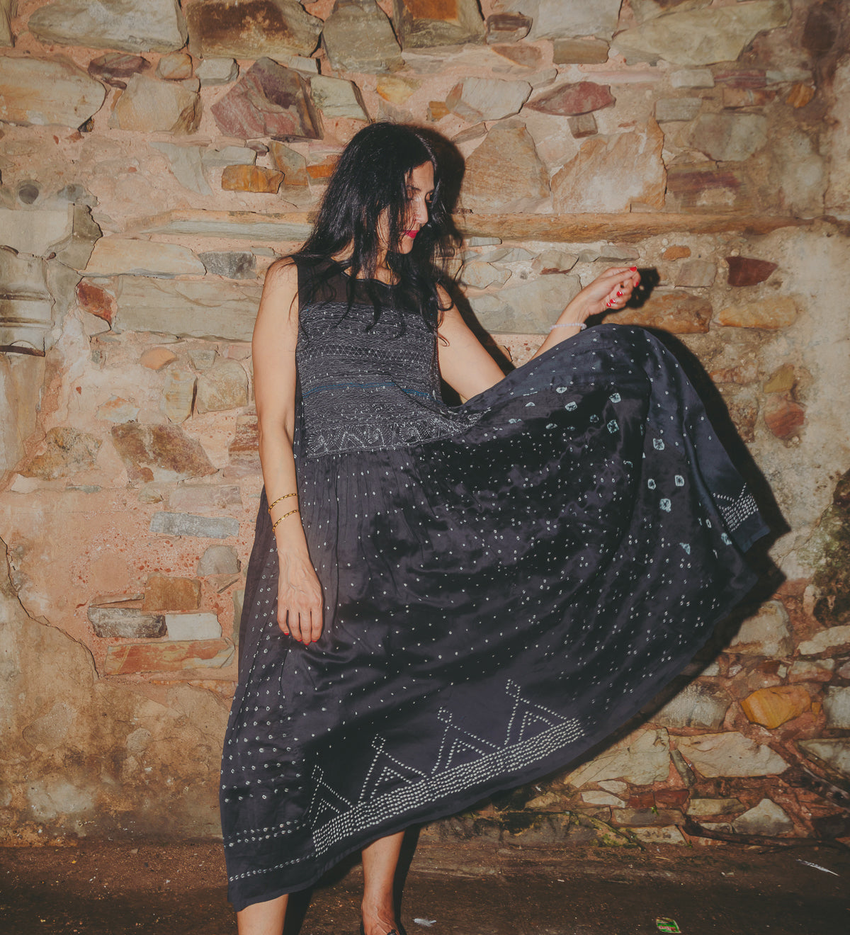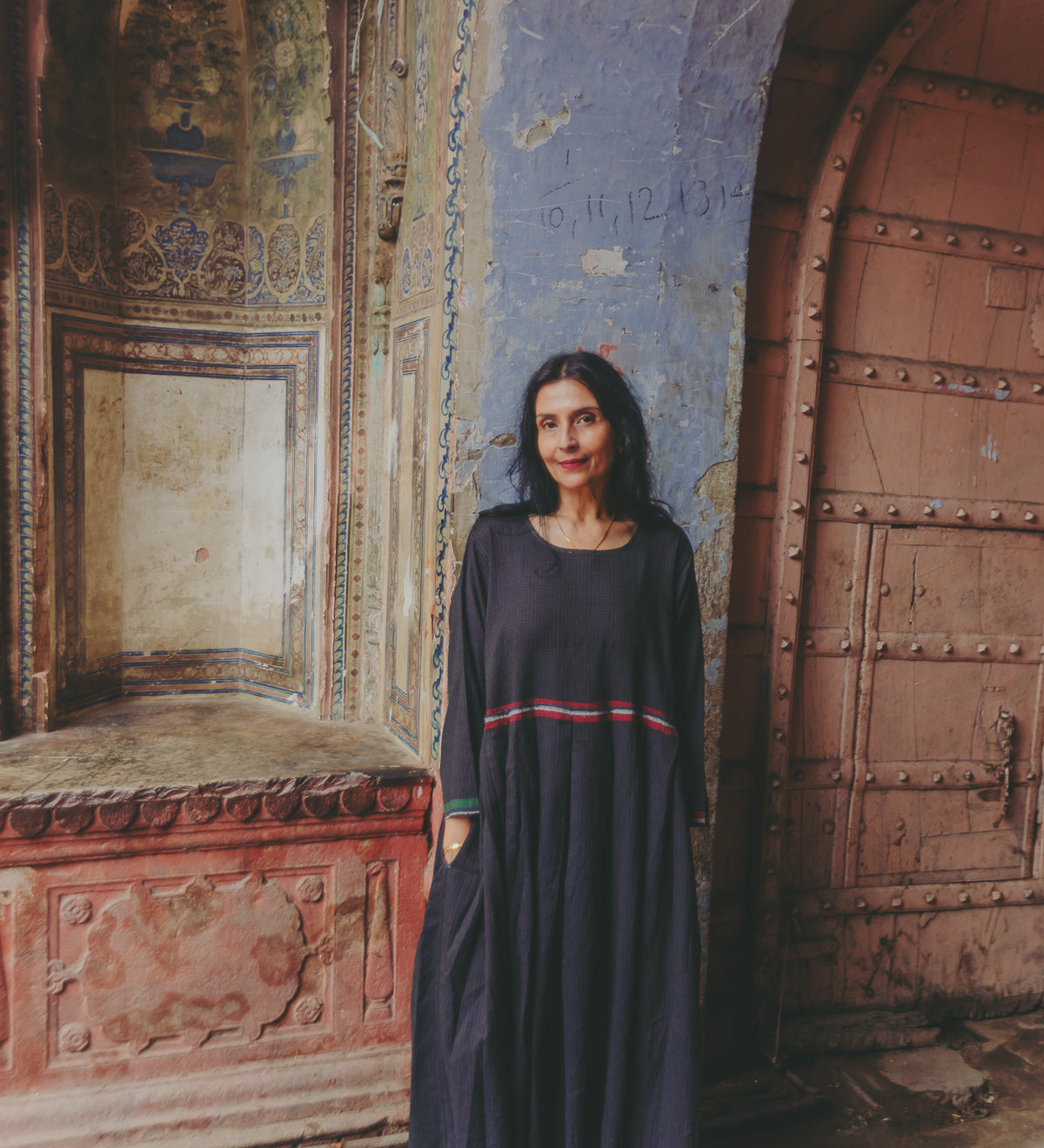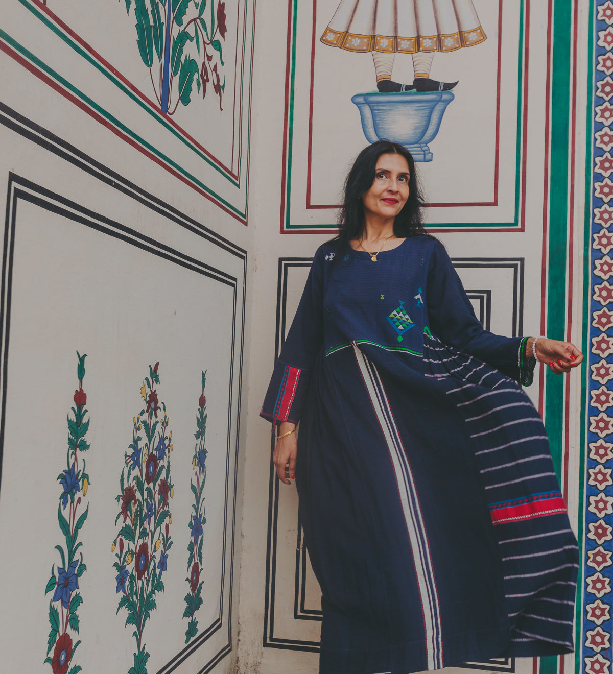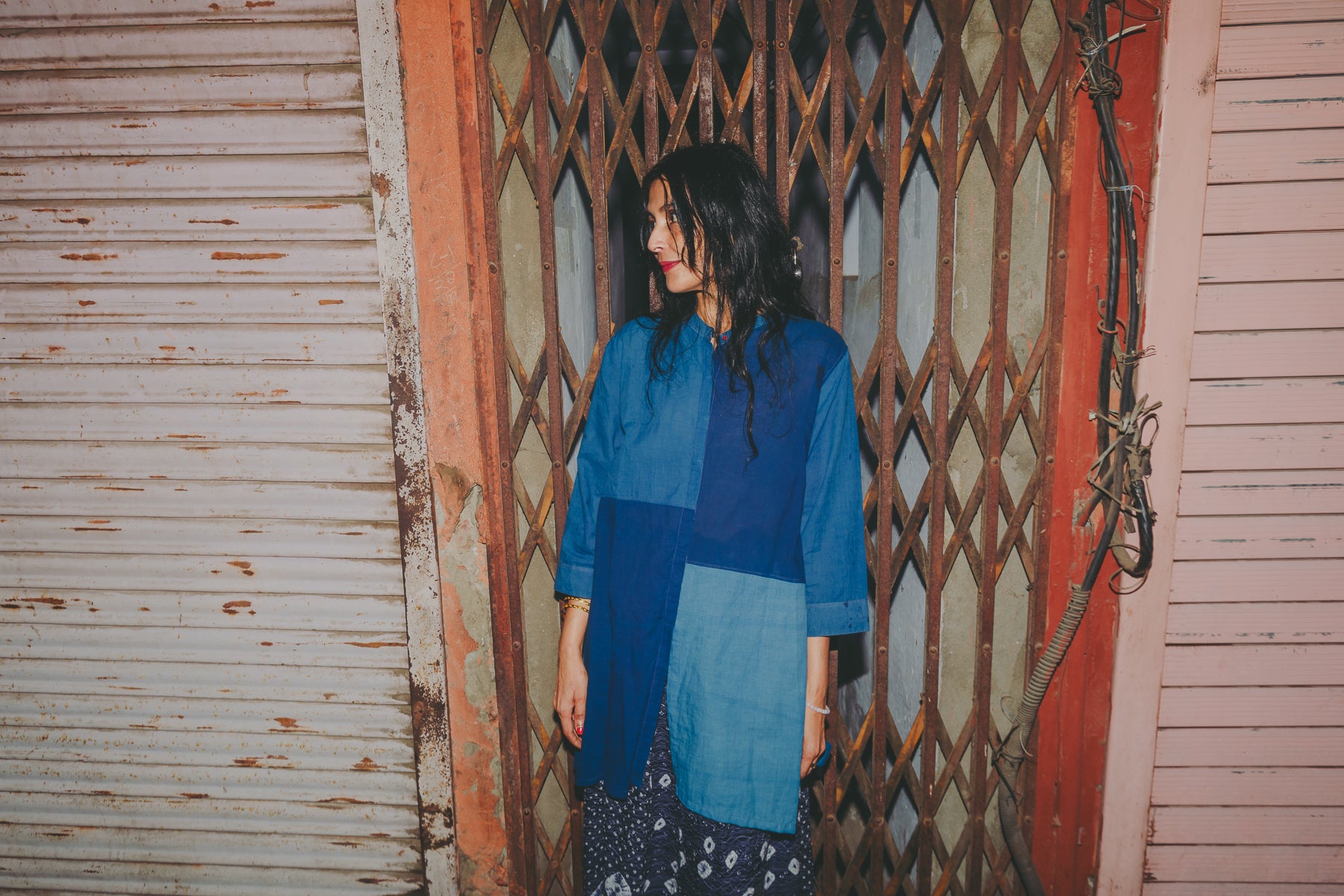 Injiri clothing is inspired by traditional garment designs of India. Working from her studio in Jaipur, Chinar Farooqui has developed a network of hand-loom collectives across India, from Gujarat to West Bengal who work with organic cottons and natural dyes to produce a range of exquisite handmade textiles to achieve textures and patterns that tells a story of the place they originate from – the story is finally told in form of a piece of “injiri”.