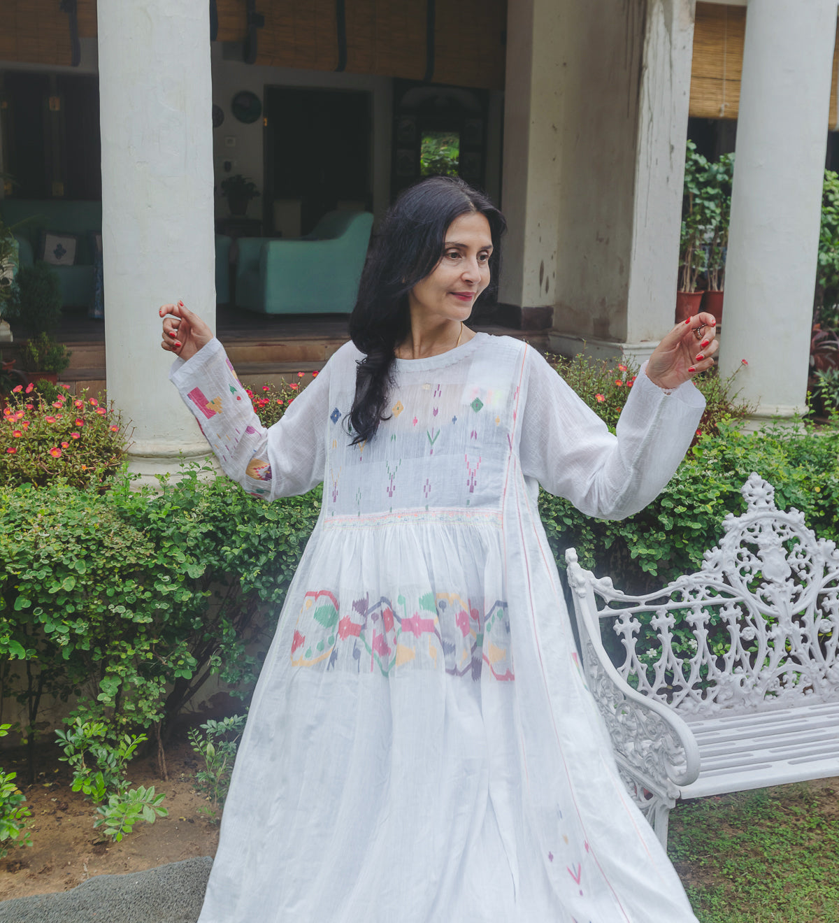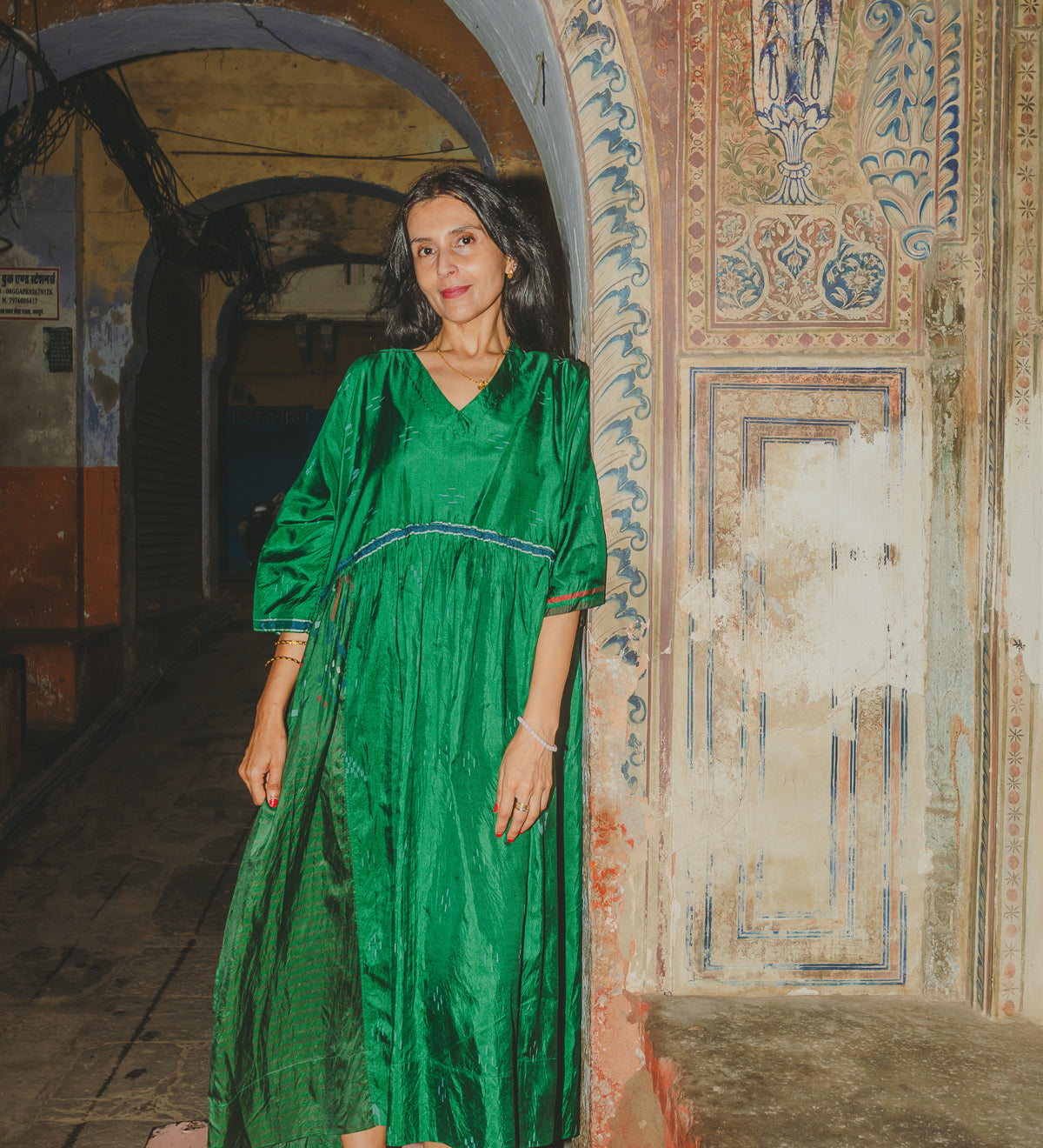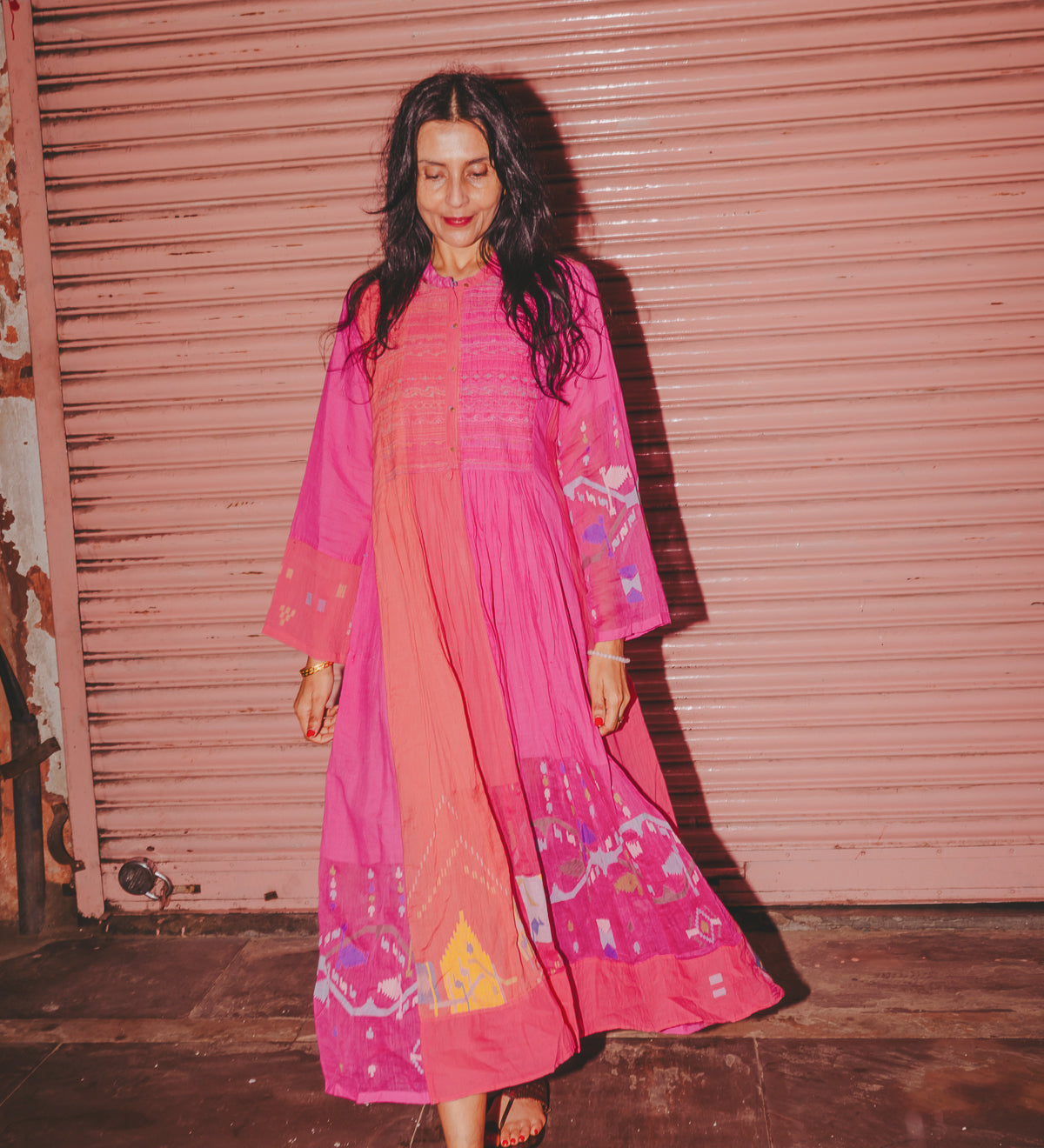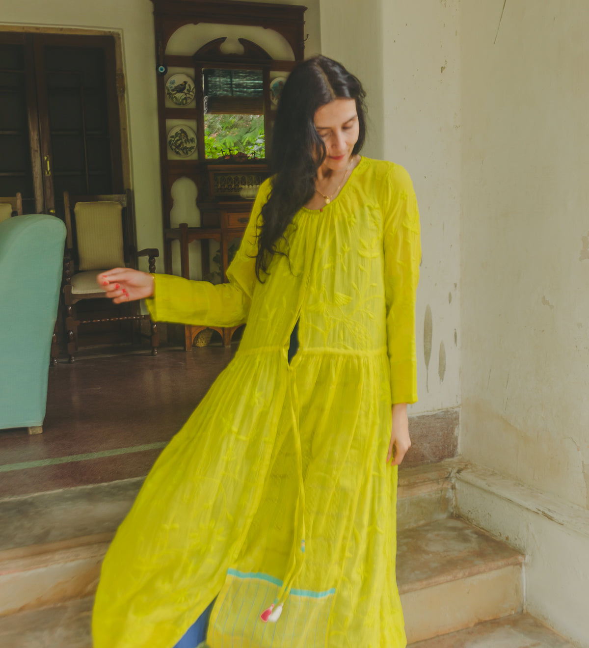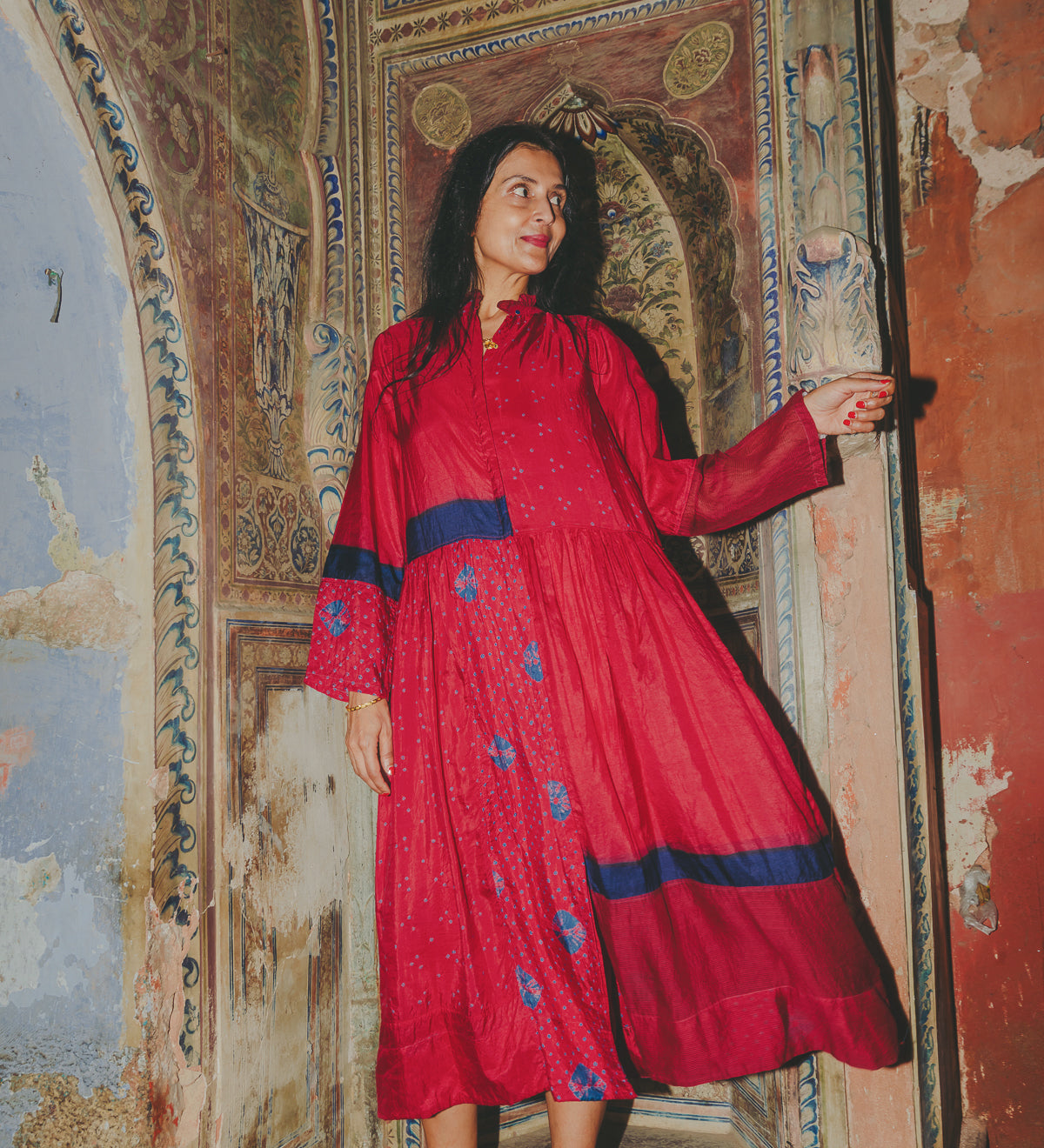 Injiri clothing is inspired by traditional garment designs of India. Working from her studio in Jaipur, Chinar Farooqui has developed a network of hand-loom collectives across India, from Gujarat to West Bengal who work with organic cottons and natural dyes to produce a range of exquisite handmade textiles to achieve textures and patterns that tells a story of the place they originate from – the story is finally told in form of a piece of “injiri”.