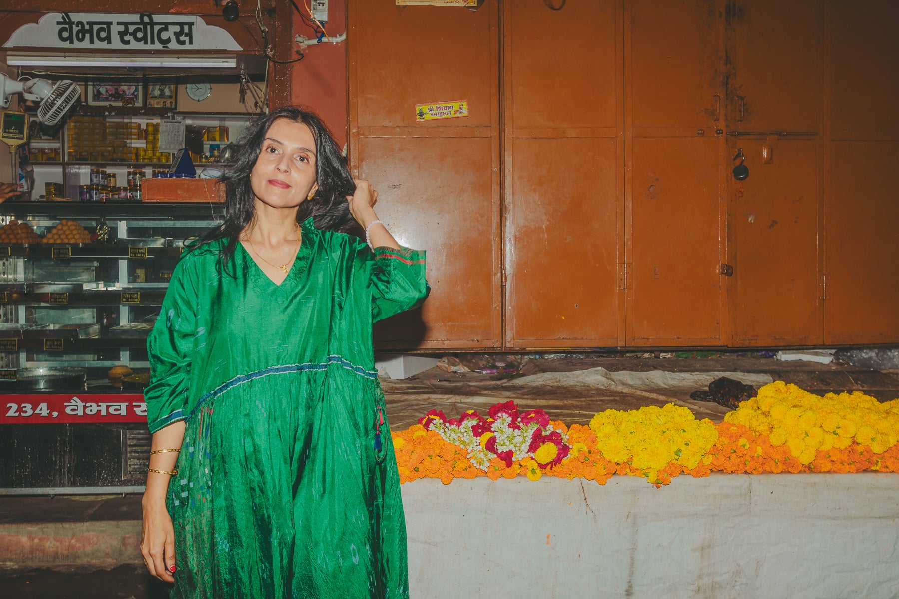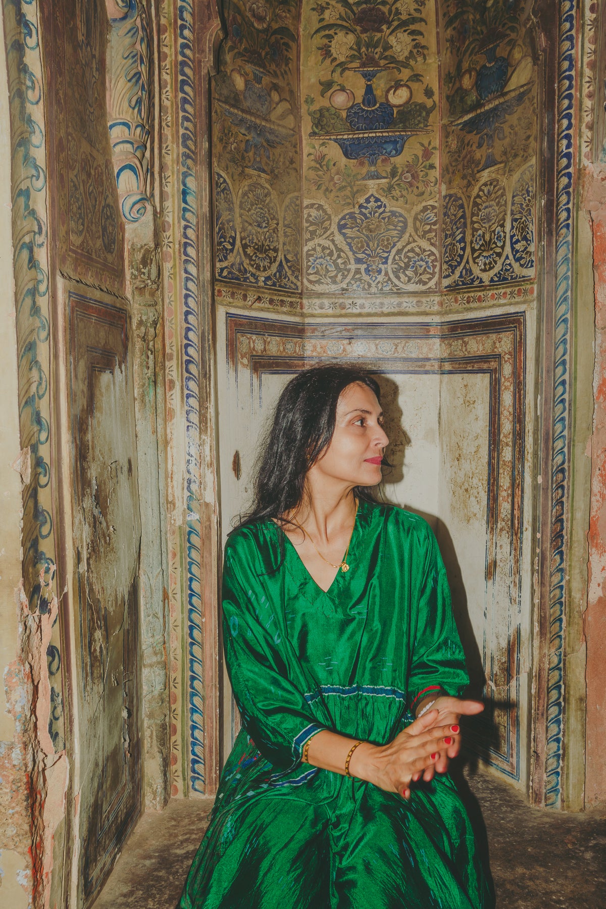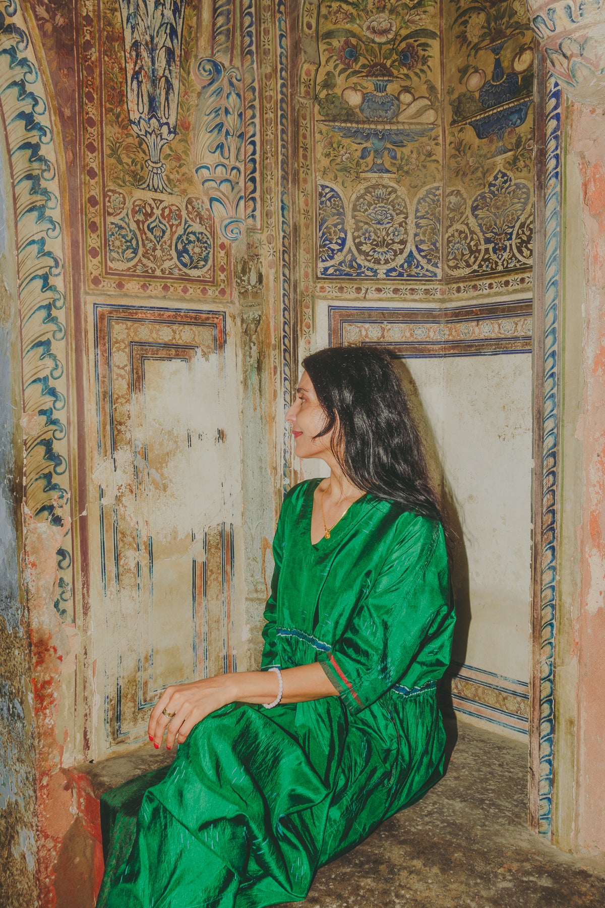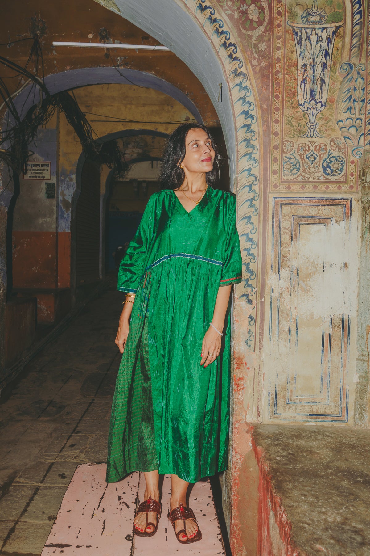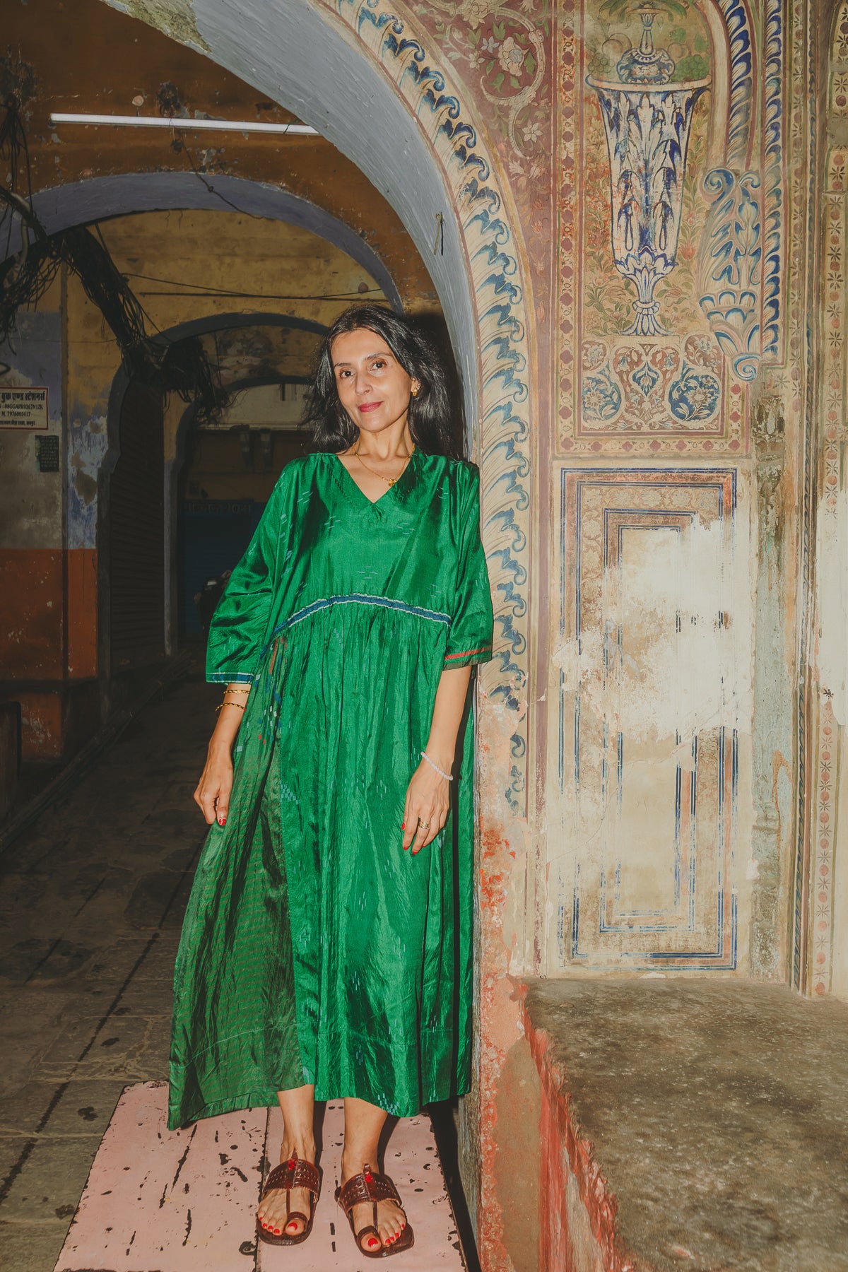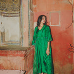 VERA KAFTAN DRESS, GREEN SILK