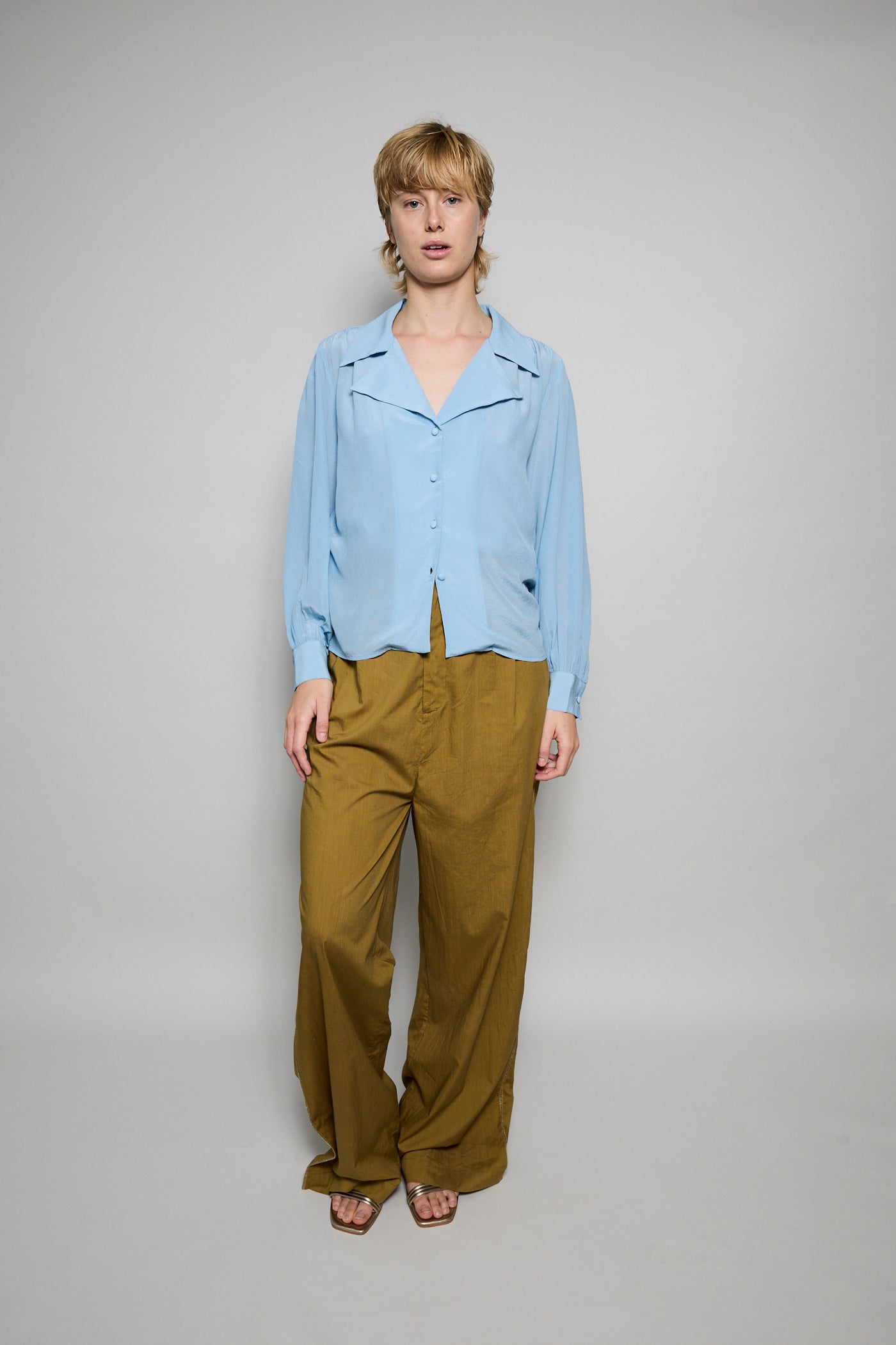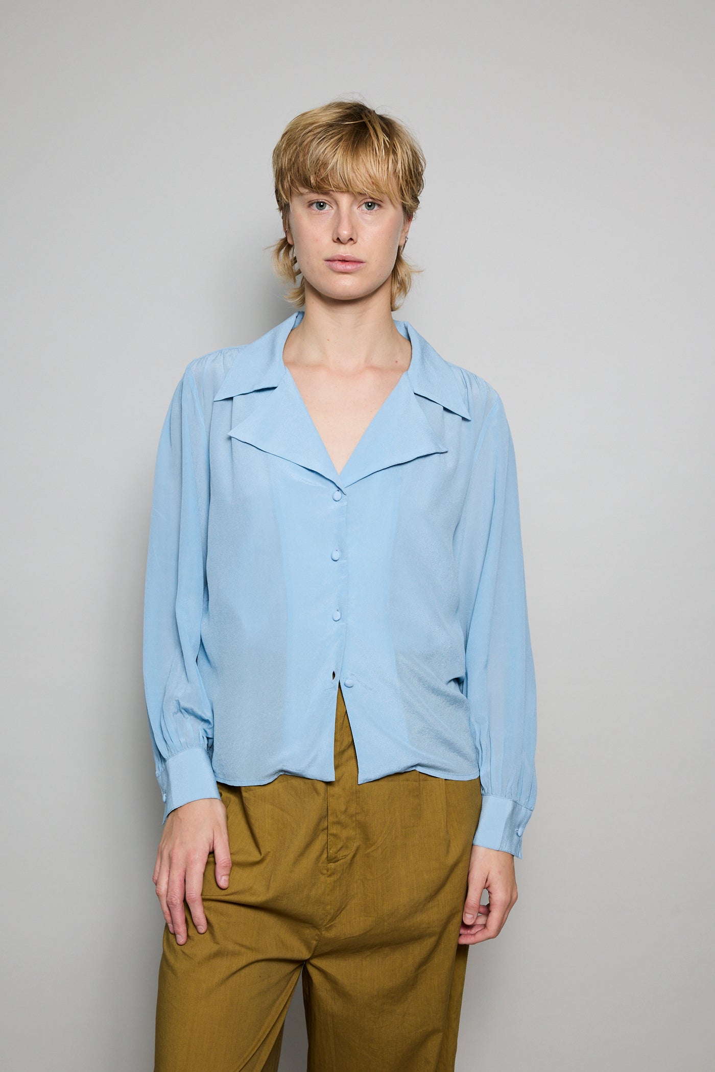 CAMELIA SHIRT, BLUE CREPE DE CHINE SILK